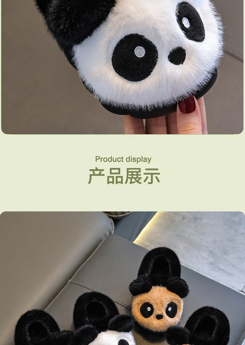 2025 nuevos zapatos de tacones de invierno para niños, niños y niñas, zapatillas de algodón cálidas y peluche panda para padres e hijos