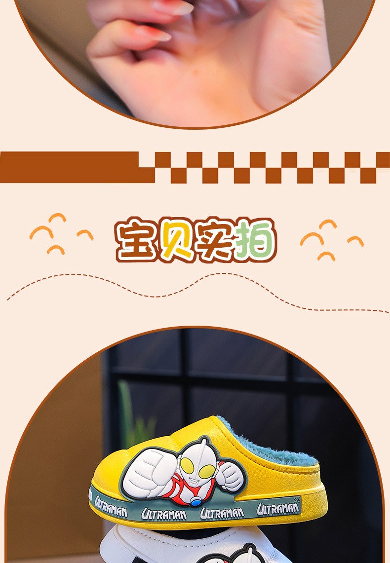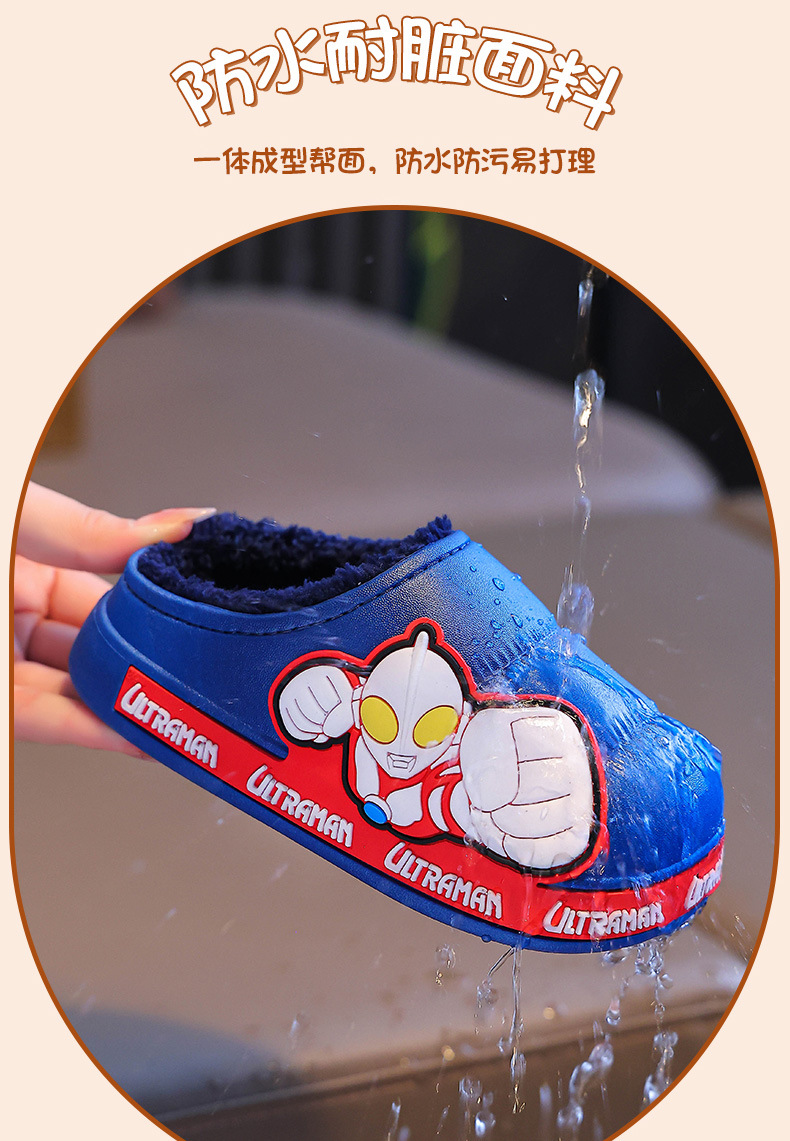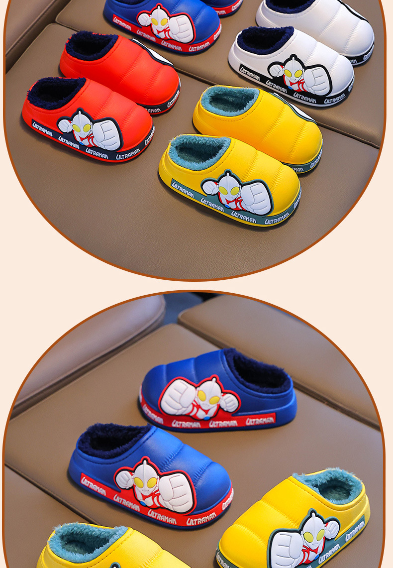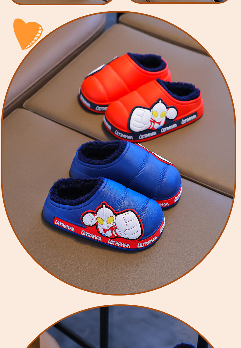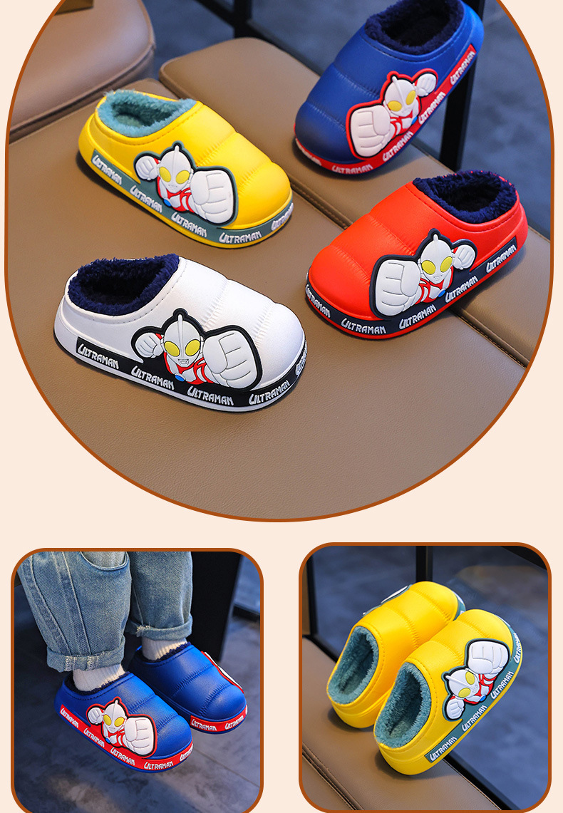 Zapatillas de algodón para niños Ultraman invierno 2024 nuevas bolsas para niños y niñas zapatos de algodón de peluche para niños pequeños