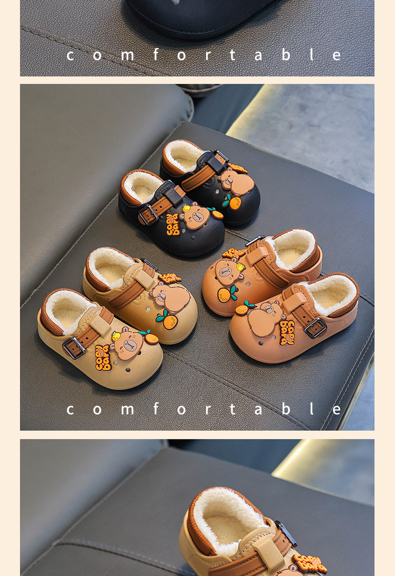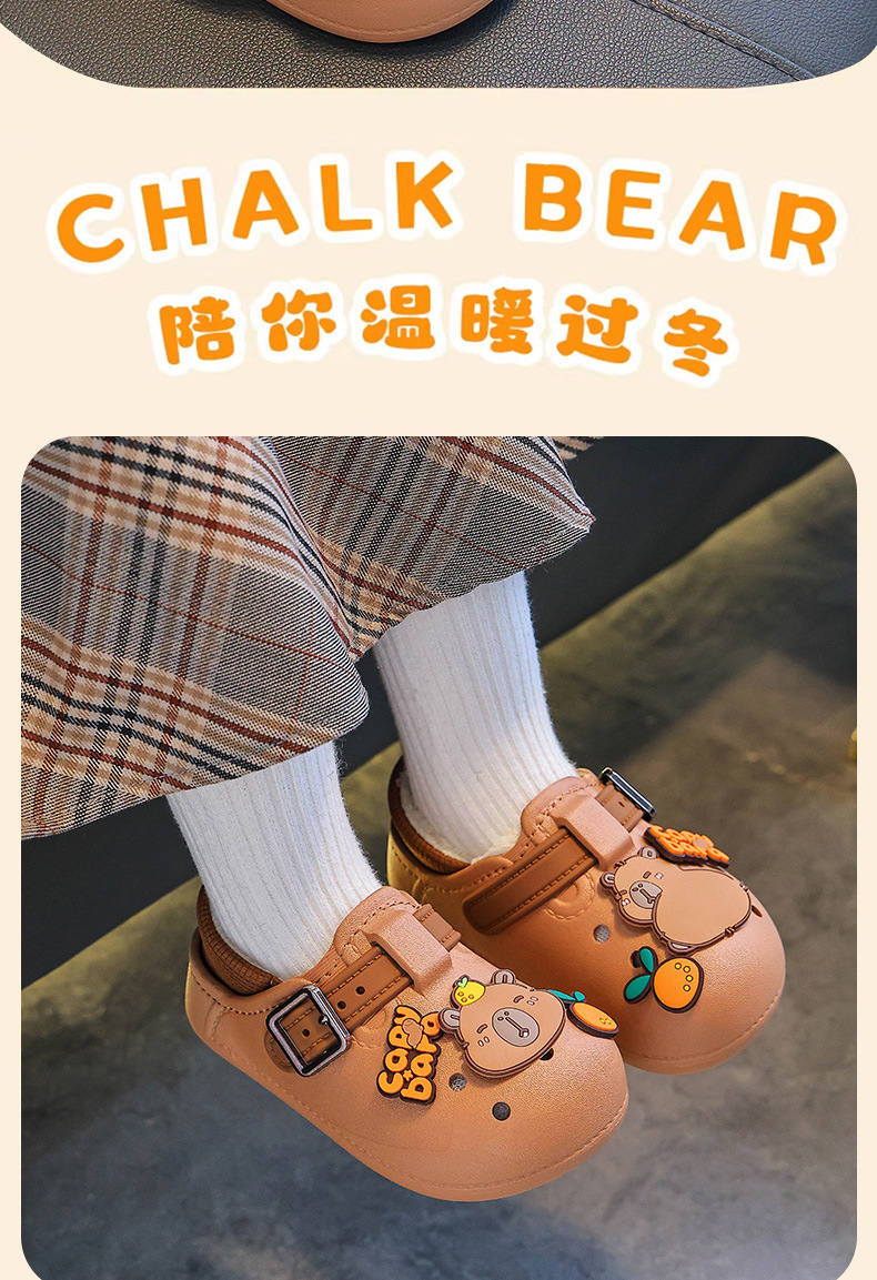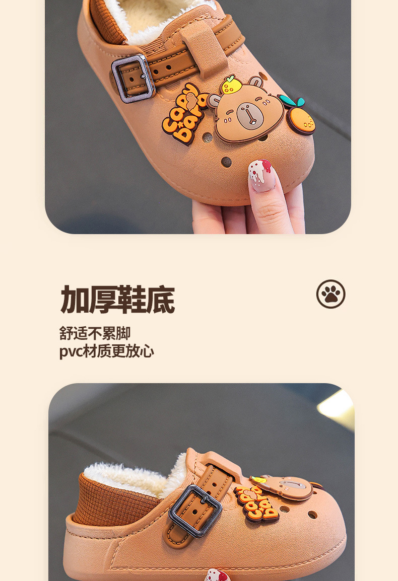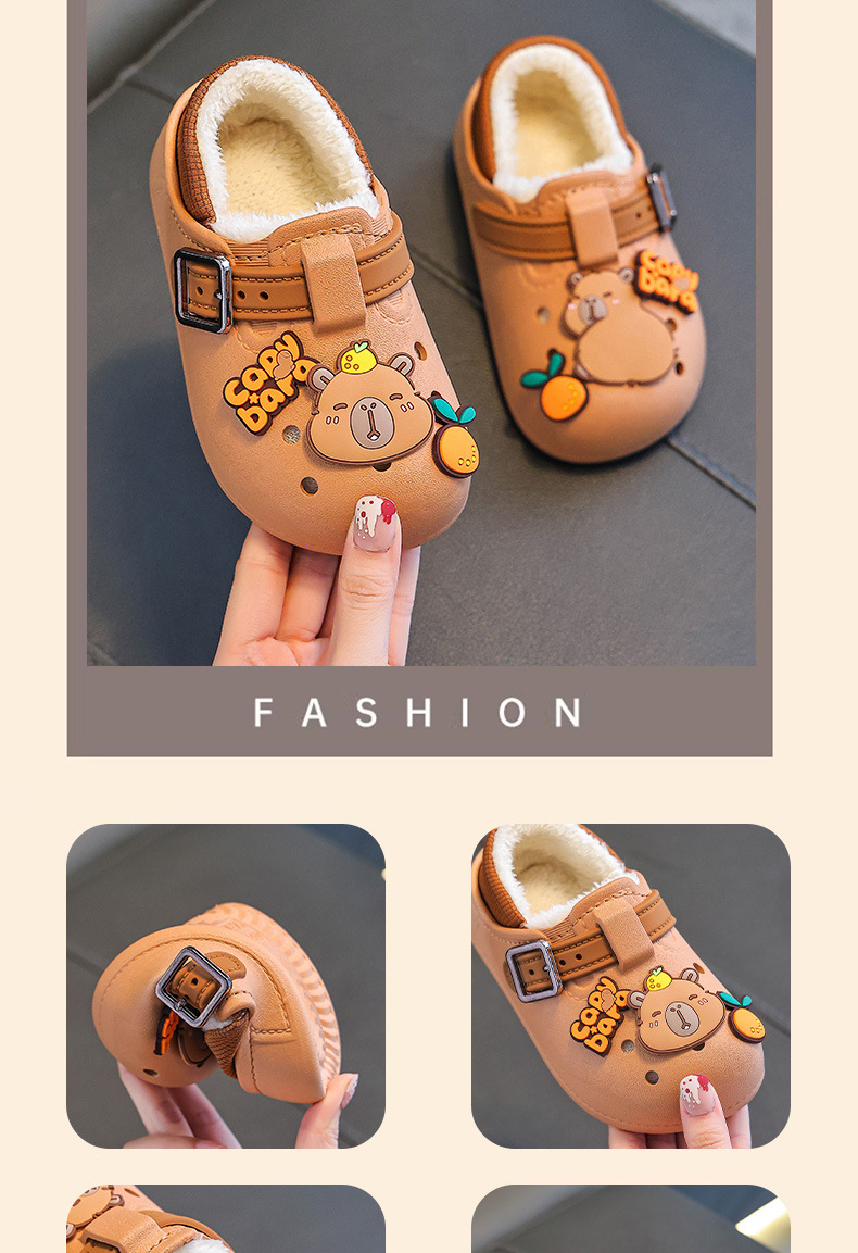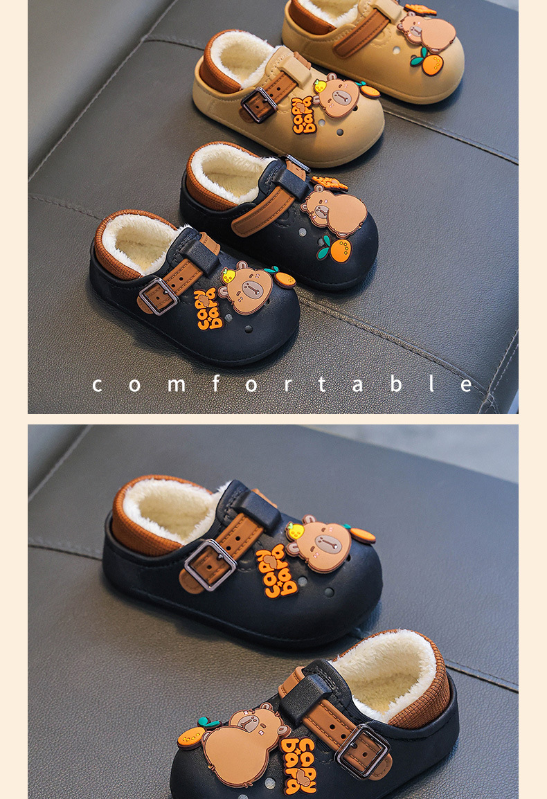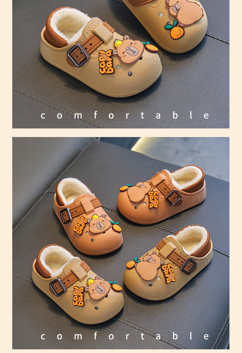 Zapatillas de algodón para niños Capibara, zapatillas de algodón para niños, niñas y niñas, invierno, calentamiento y veludo impermeable para niños mayores, bolsas de tacones para niños en casa.