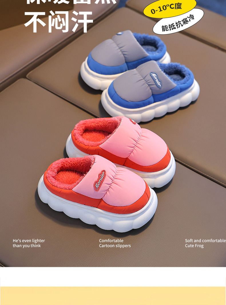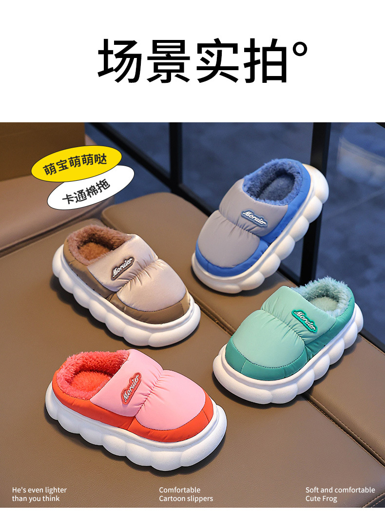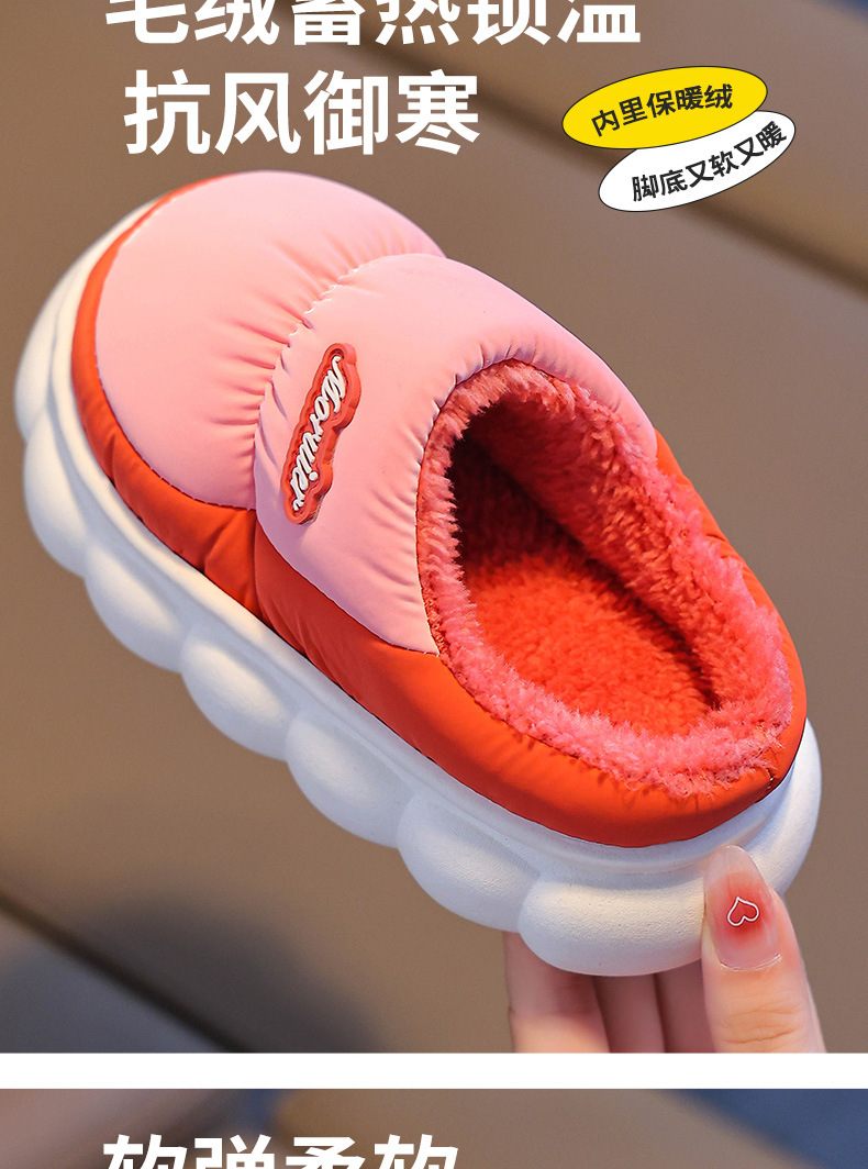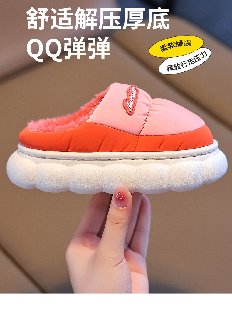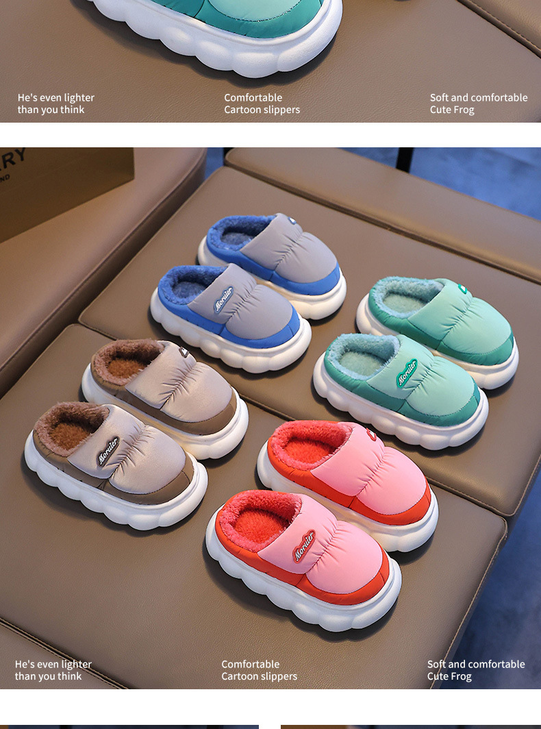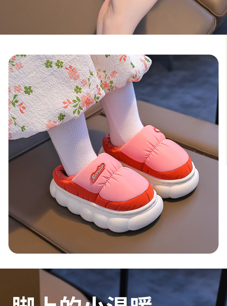Zapatillas de algodón para niños de invierno para niños y niñas, tela de pluma caliente impermeable para niños pequeños, padres e hijos, bebés en casa