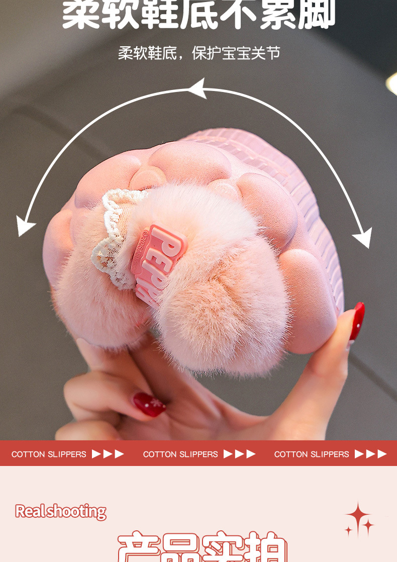 Piggy Page zapatillas de algodón para niños de invierno niñas cálidas más pelusa en el hogar bebés elásticos zapatos de algodón