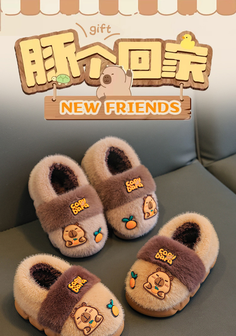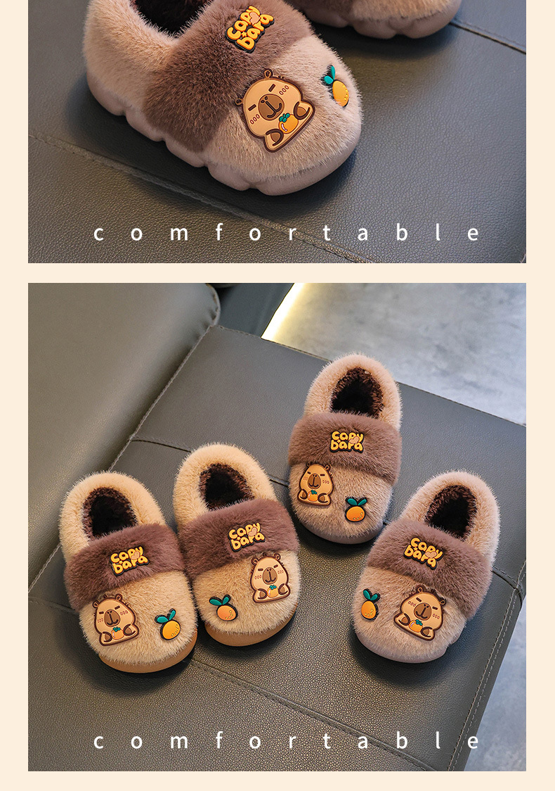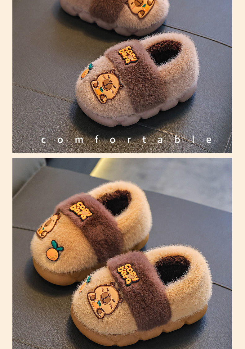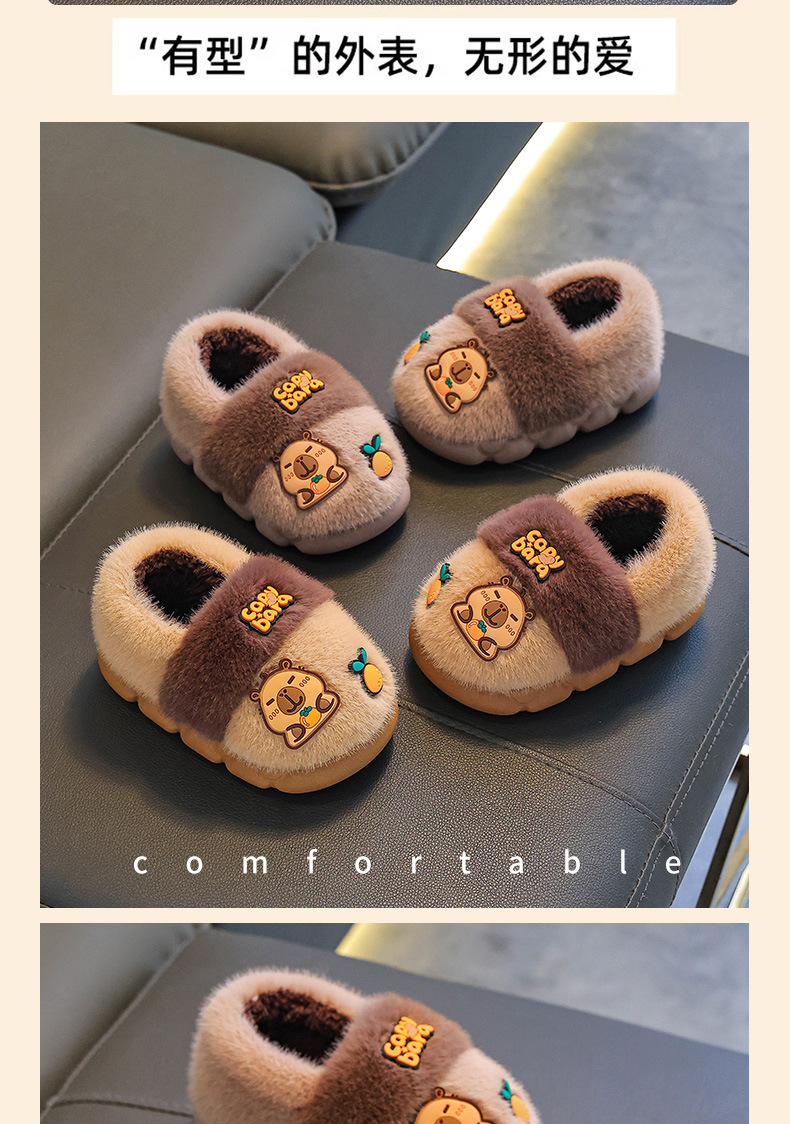 Zapatillas de algodón de invierno para niños Capibara, zapatillas de algodón para niños y niñas calientes y pelusa para padres e hijos, bolsas de niños mayores y zapatos de algodón gruesos.