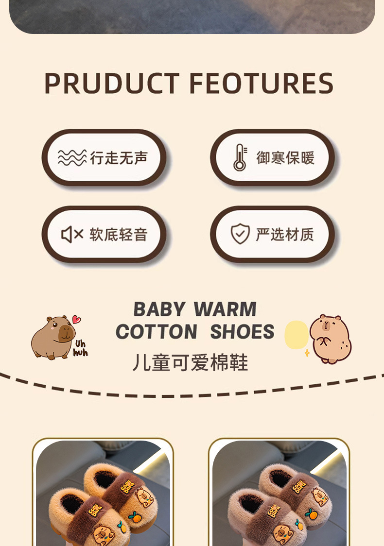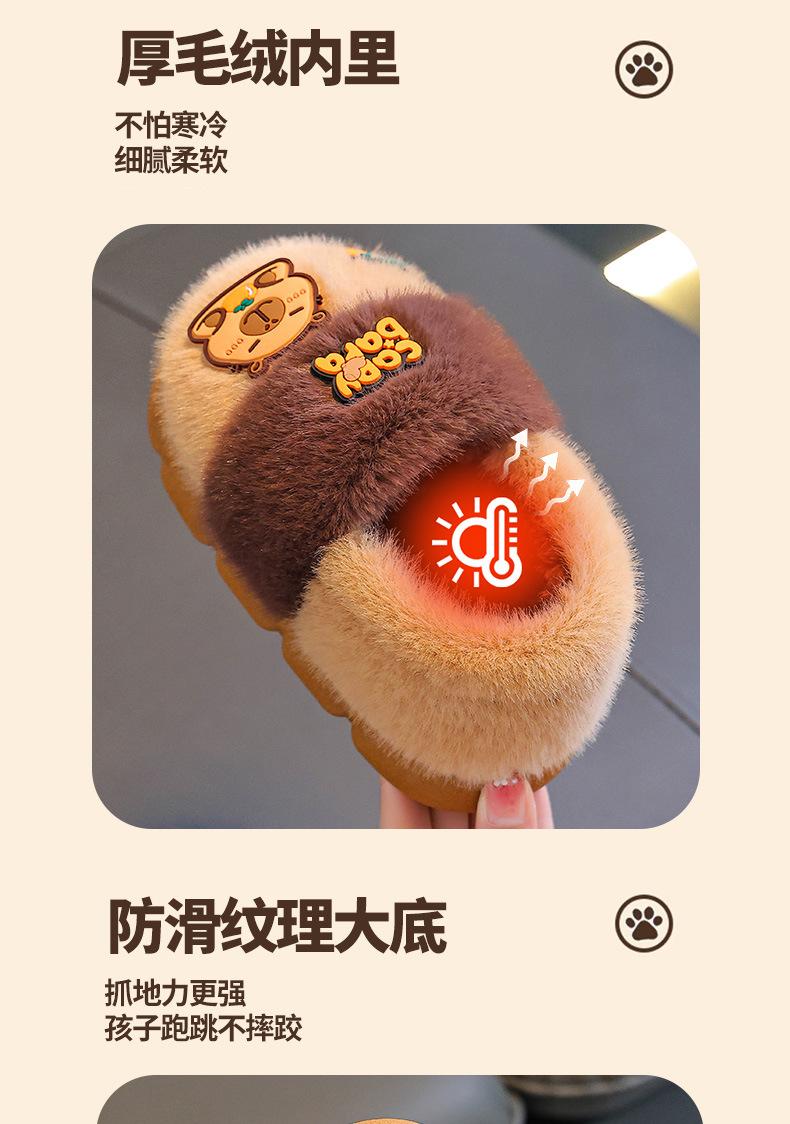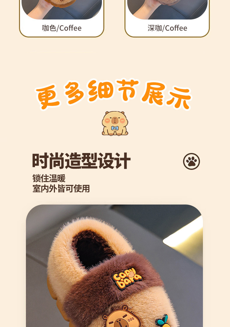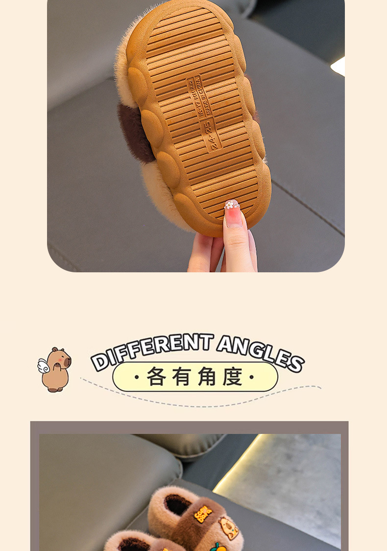 Zapatillas de algodón de invierno para niños Capibara, zapatillas de algodón para niños y niñas calientes y pelusa para padres e hijos, bolsas de niños mayores y zapatos de algodón gruesos.