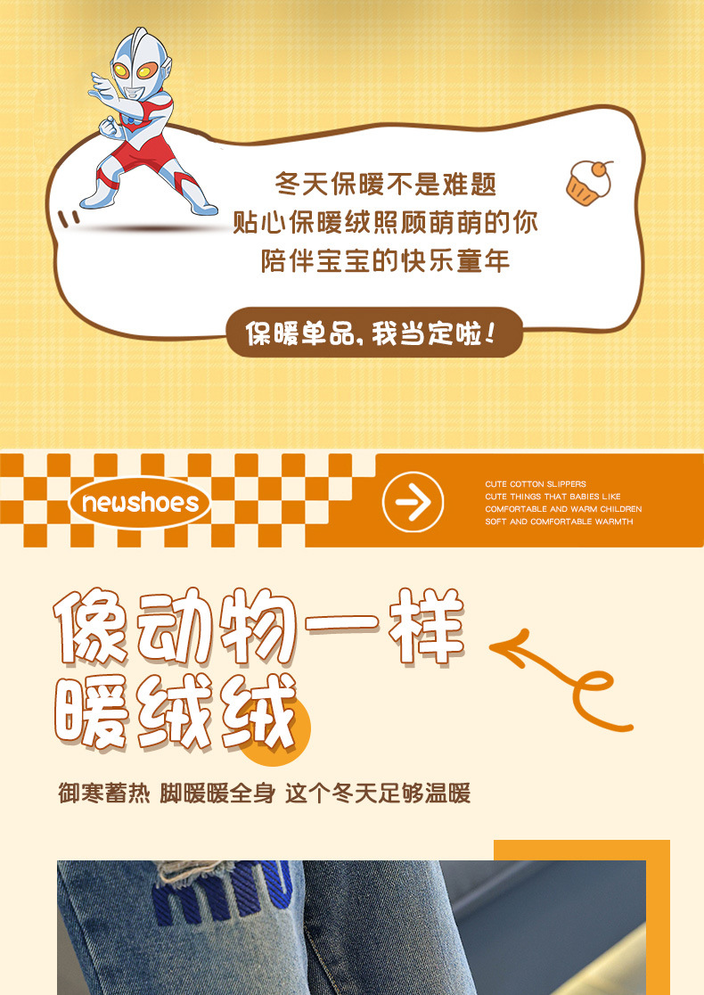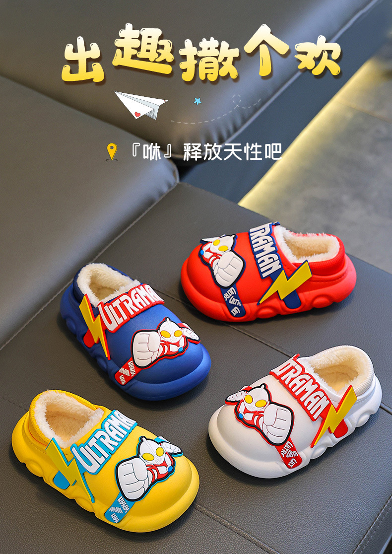 Ultraman bolsas de invierno para niños zapatos de algodón cálidos y impermeables, niños, niños, zapatillas de algodón para bebés