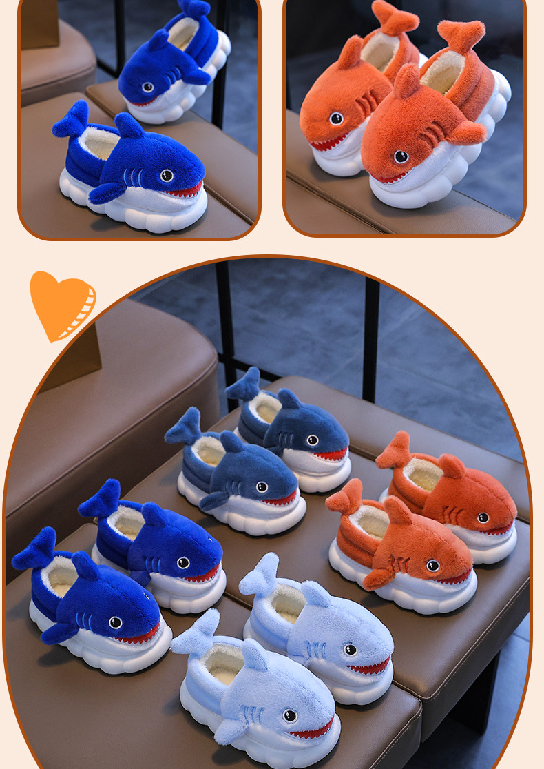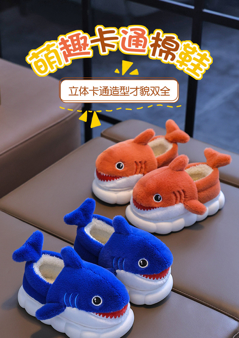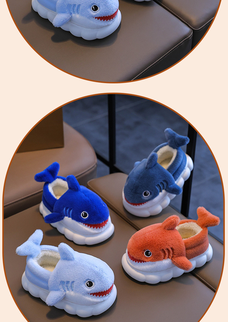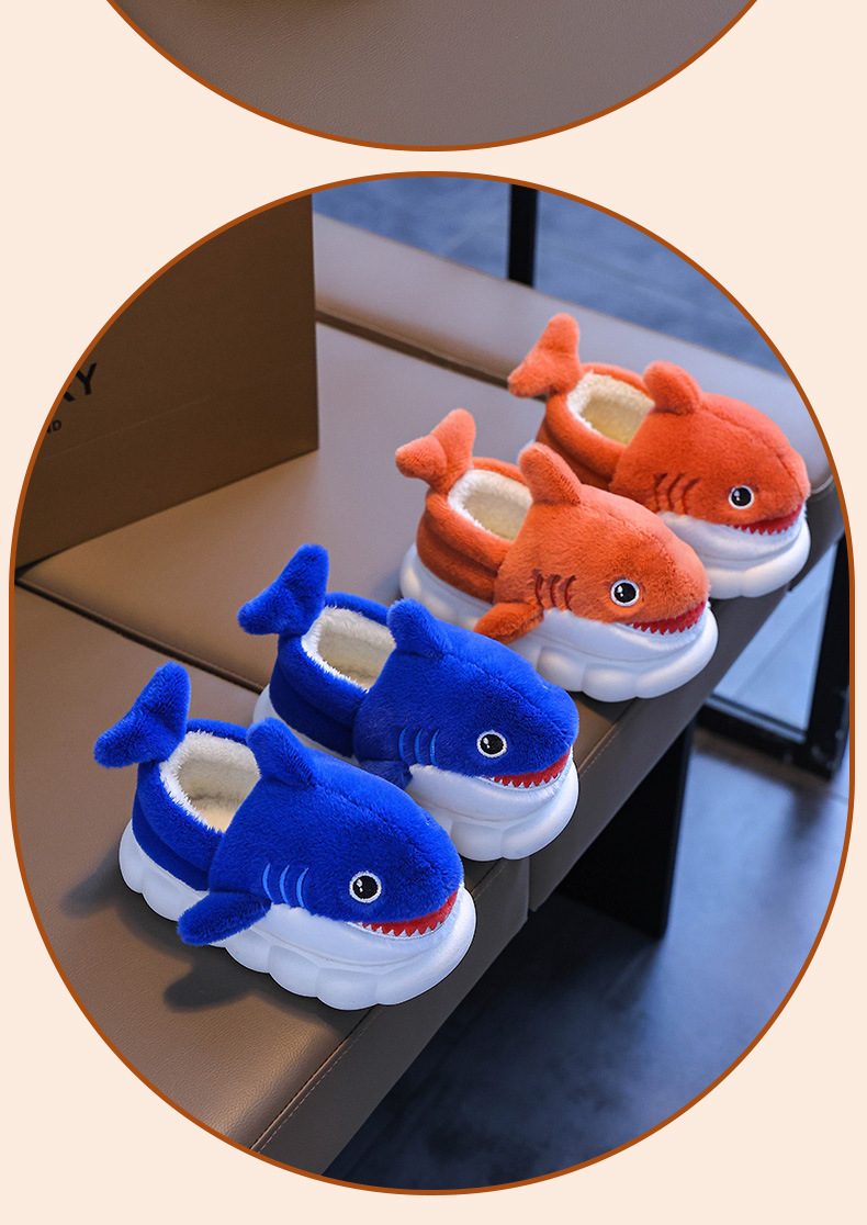 Bolsa de invierno para niños zapatos de tacones de algodón tiburón niños padres-hijos hogares cálidos peludos niños pequeños y medianos bebés zapatillas de algodón