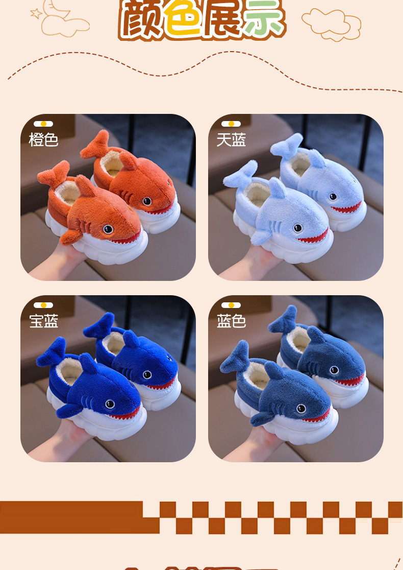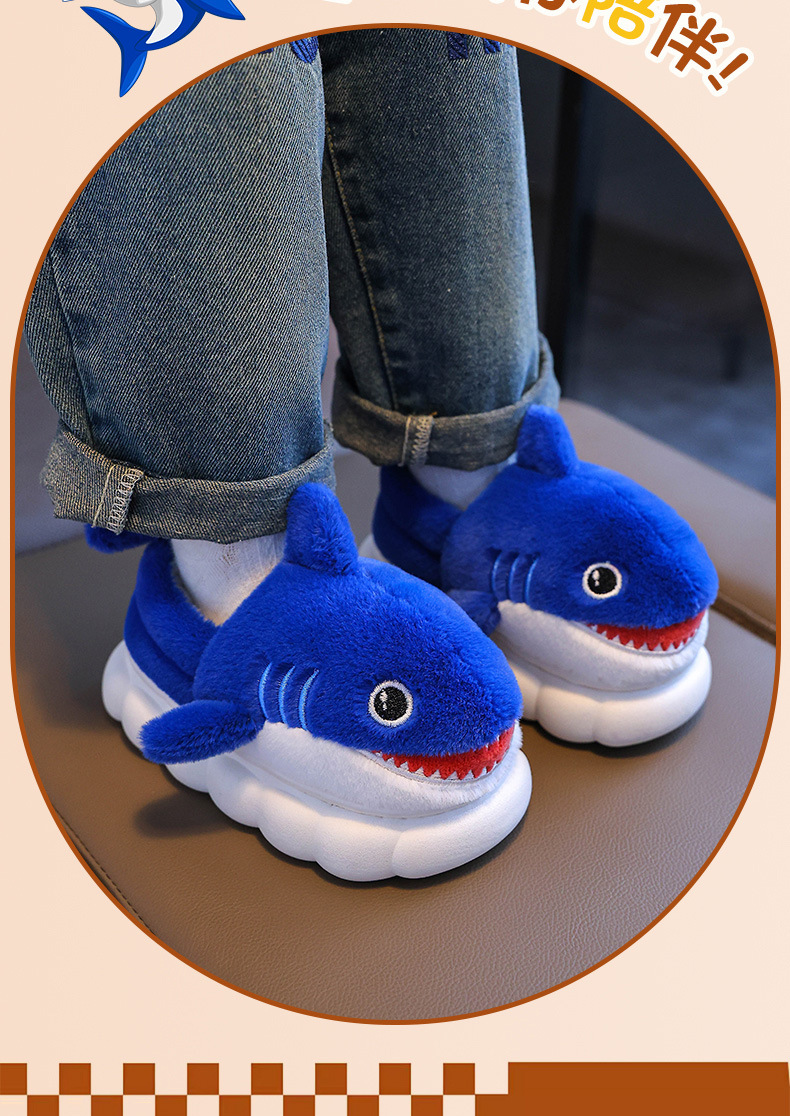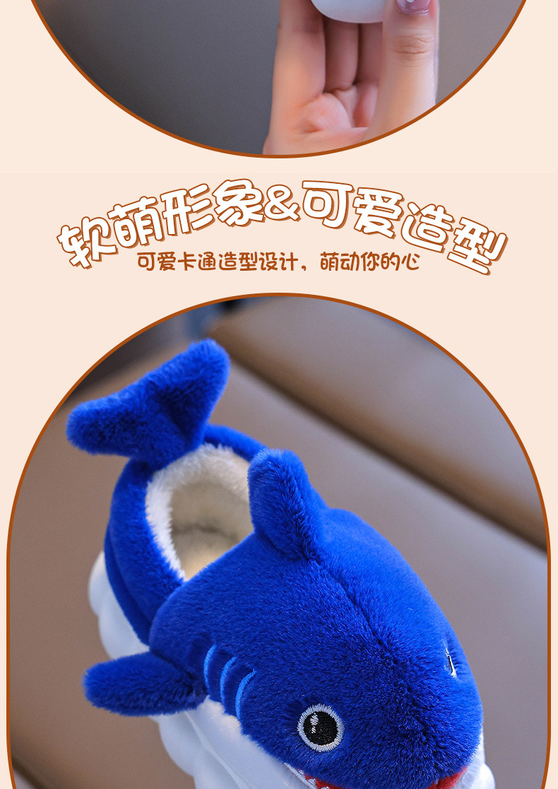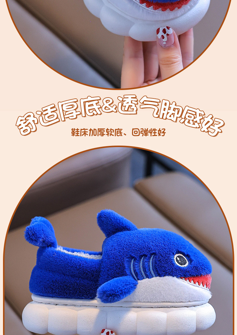 Bolsa de invierno para niños zapatos de tacones de algodón tiburón niños padres-hijos hogares cálidos peludos niños pequeños y medianos bebés zapatillas de algodón