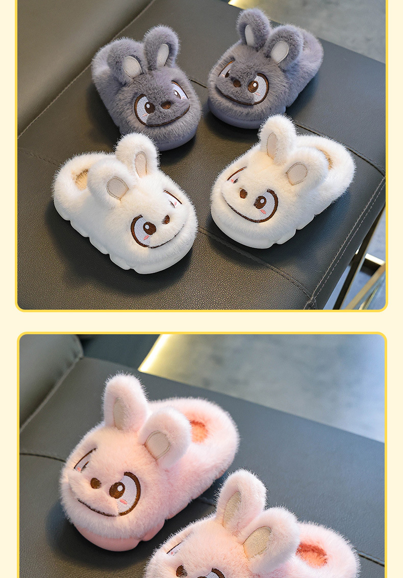 Zapatillas de algodón para niños de invierno para niños y niñas, calentamiento de lana para niños y niñas, conejos lindos para padres e hijos, zapatos de algodón para niños pequeños y medianos