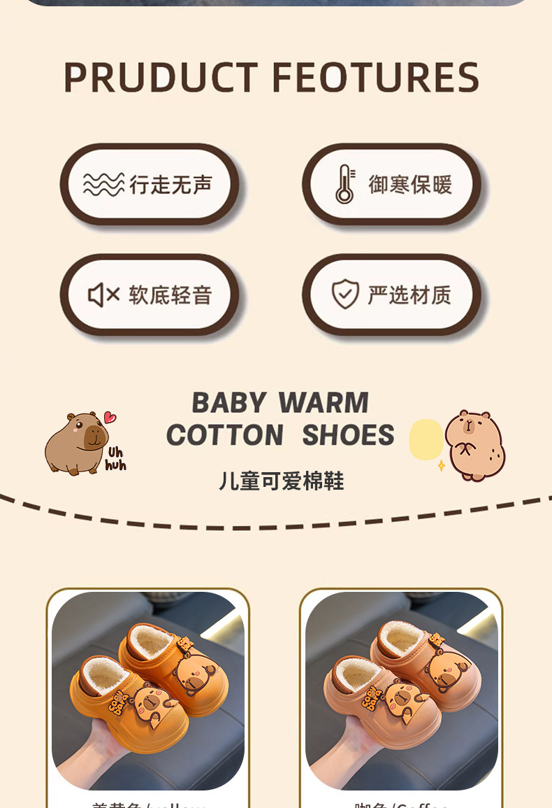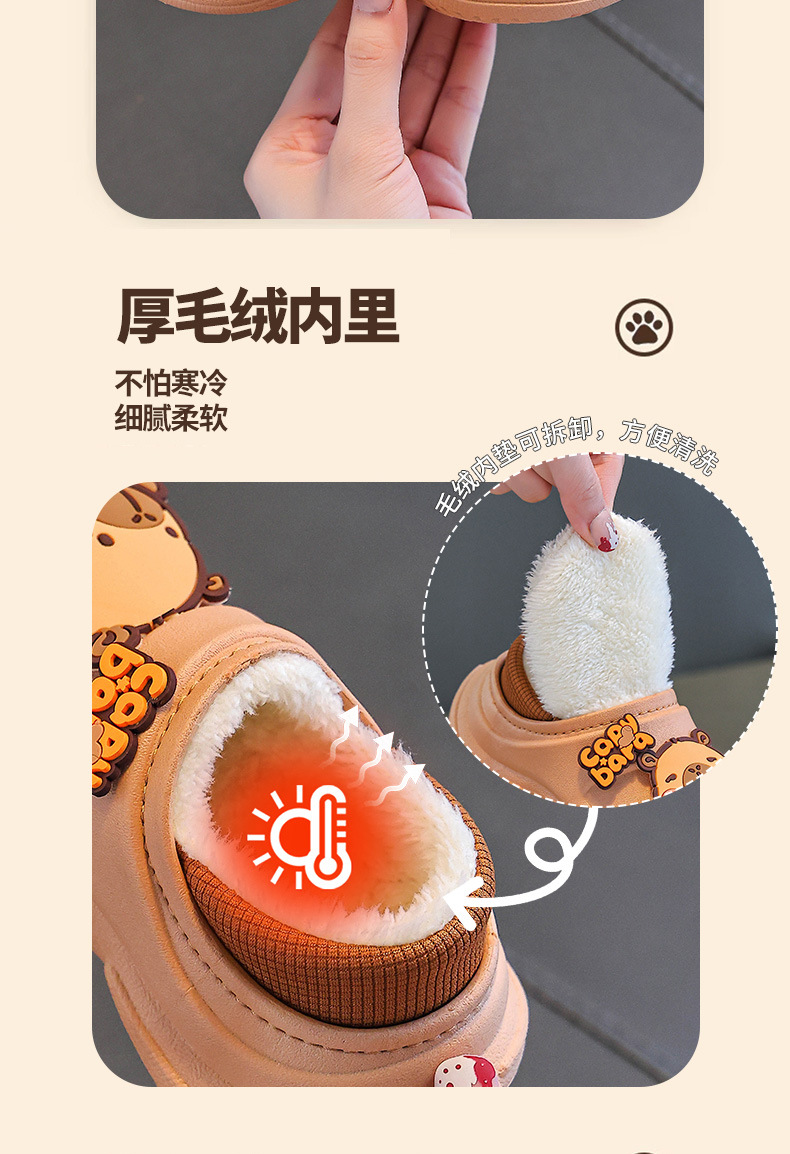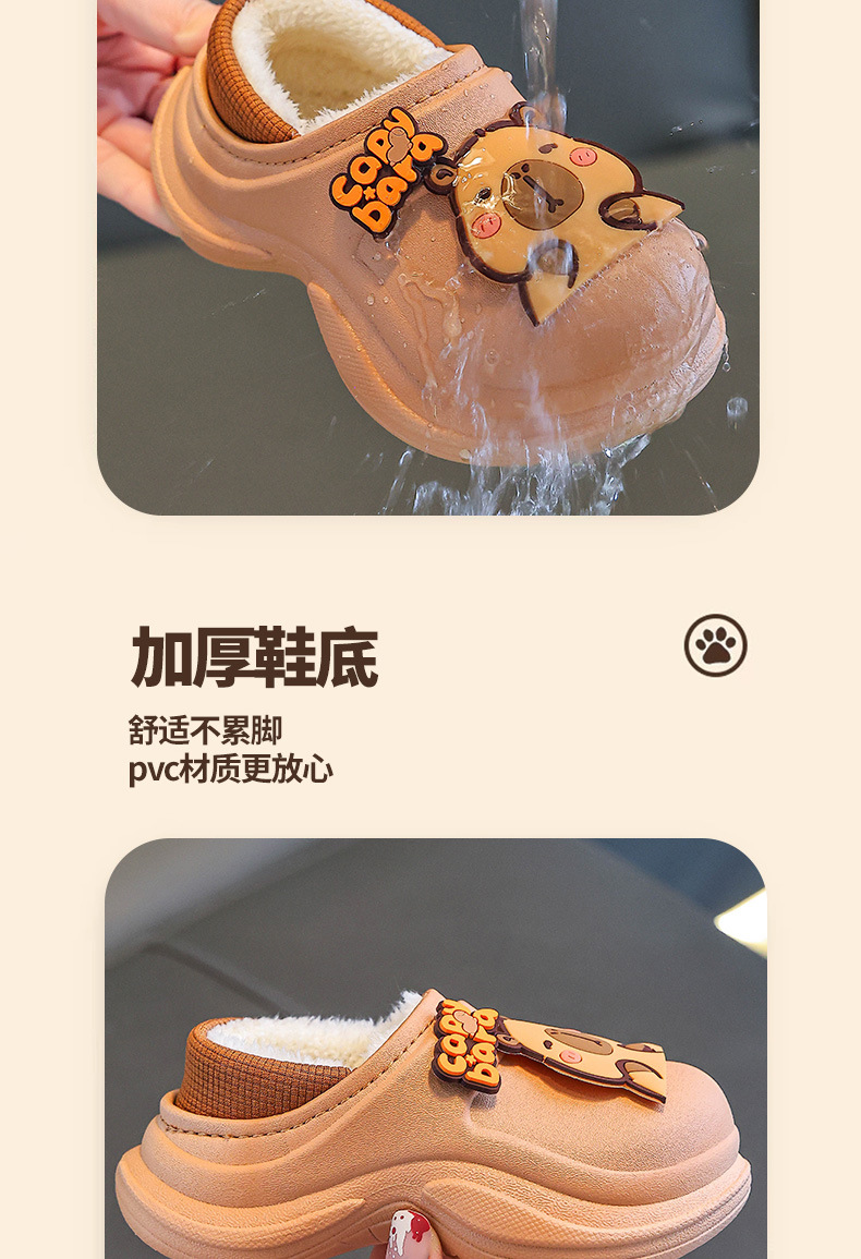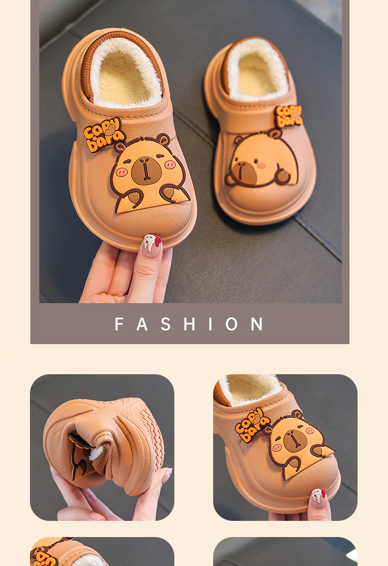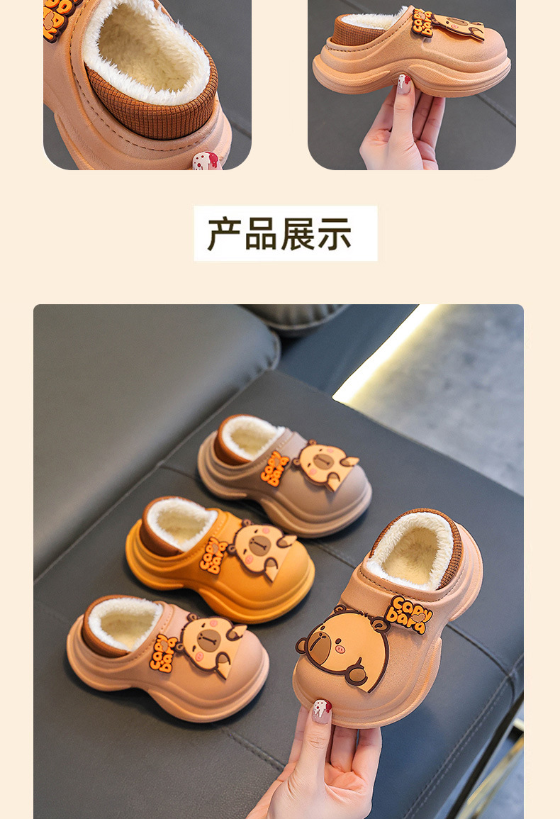 Zapatillas de algodón para niños Capibara, zapatillas de algodón de invierno para niños y niñas, cálidas y impermeables para padres e hijos, bolsas para niños mayores, zapatos de algodón