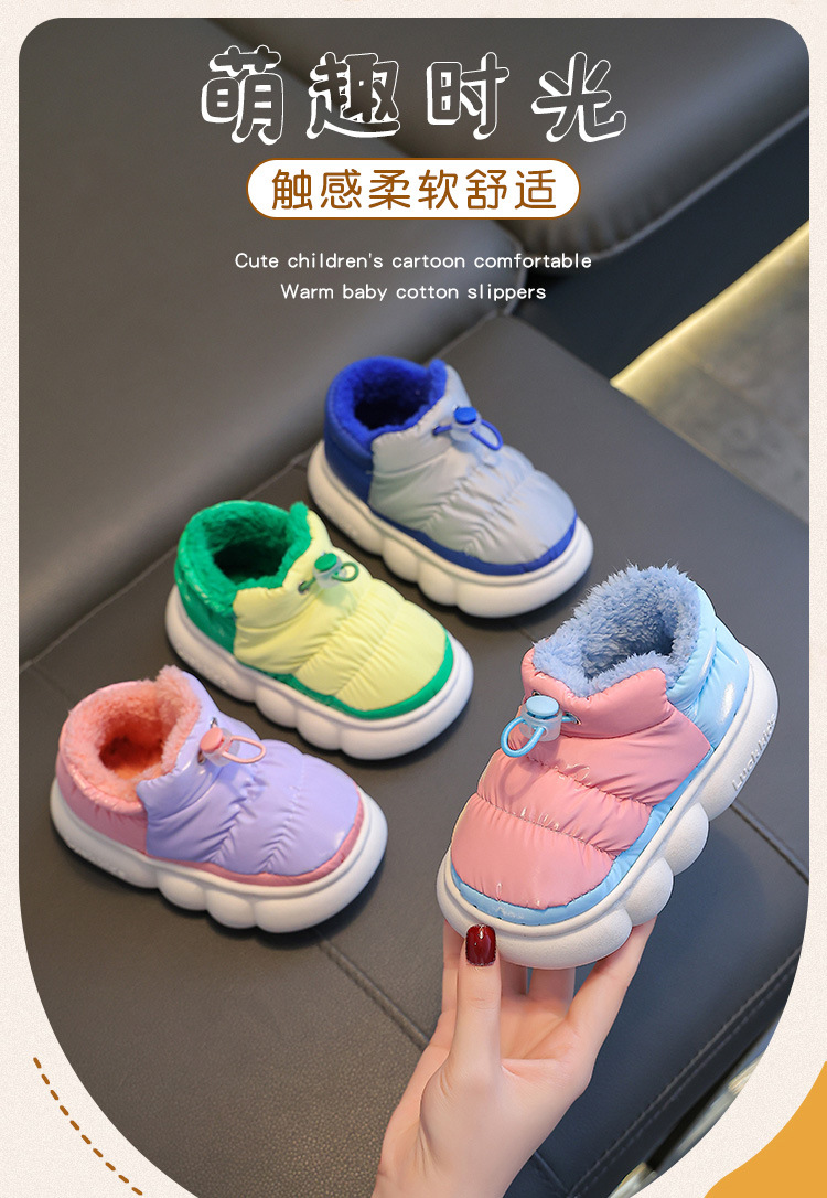 Zapatillas de algodón para niños de invierno para niños y niñas bolsa de padres e hijos talón abajo tela impermeable cálido forro polar para niños zapatos de algodón para bebés