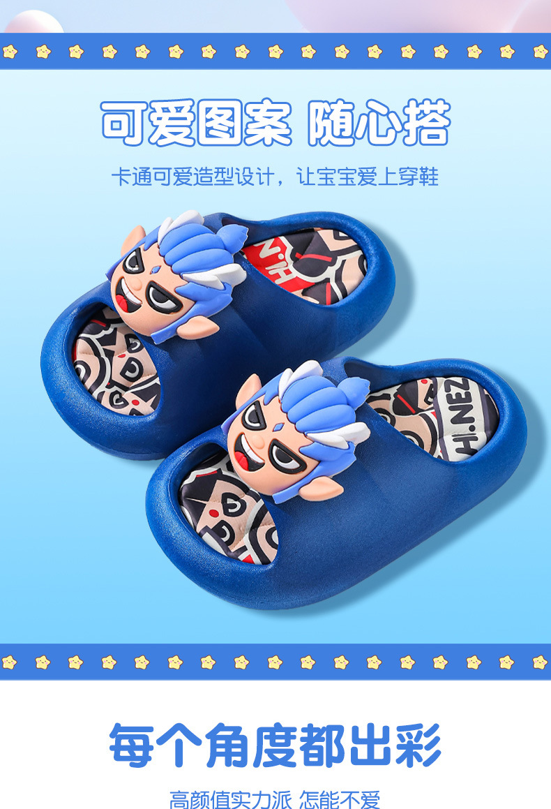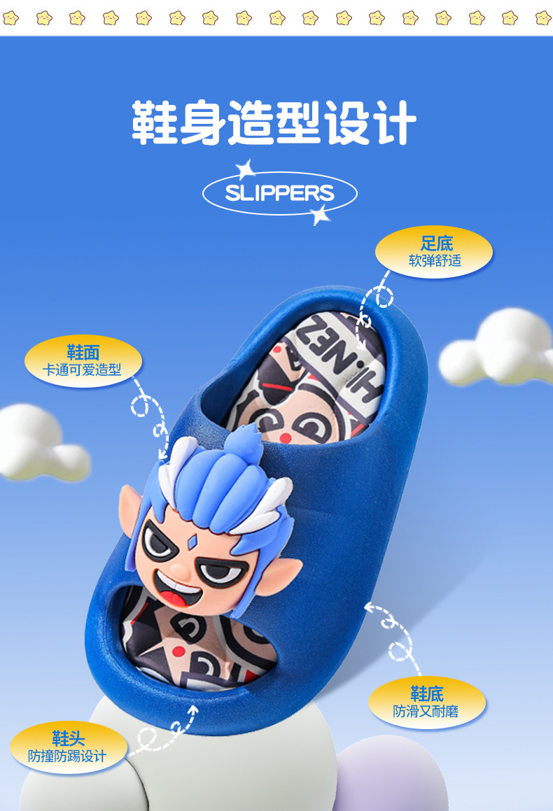 Ao Bing Summer Sandalias y pantuflas para niños Niños y niñas Fondo suave antideslizante Nezha Baño interior Padres e hijos Chef Beach Drag