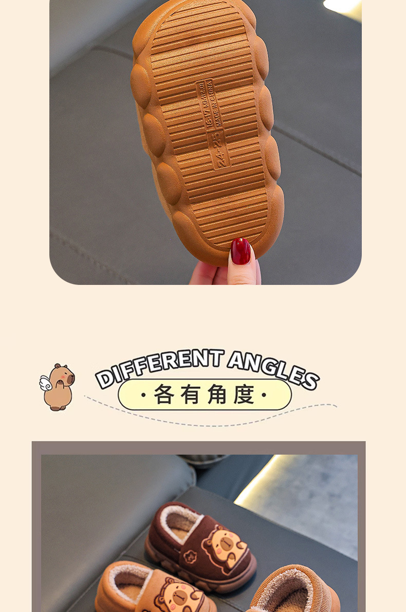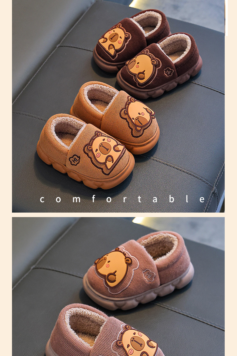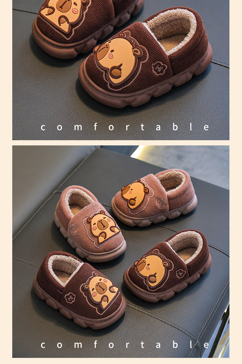 Capibara invierno zapatillas de algodón para niños, calentamiento y pelusa de fondo grueso, zapatos de algodón para niños de tamaño medio y grande.