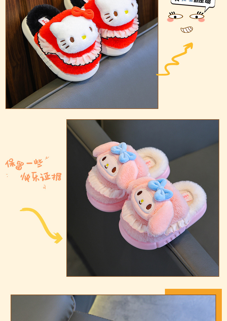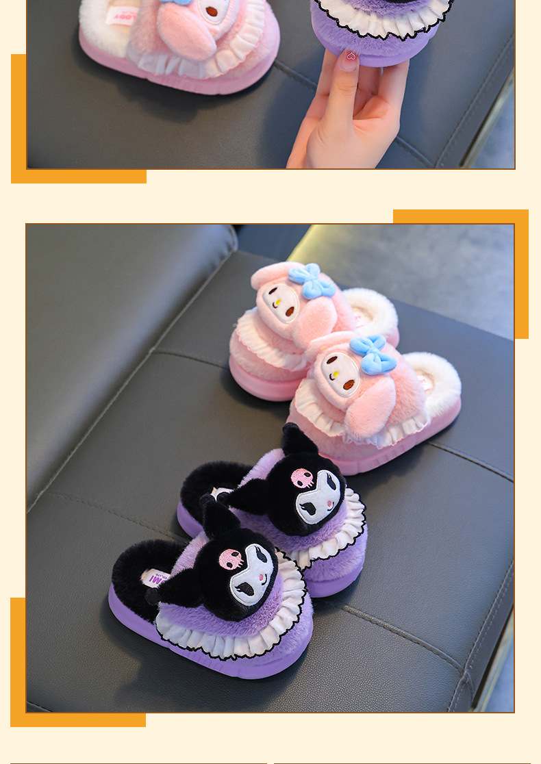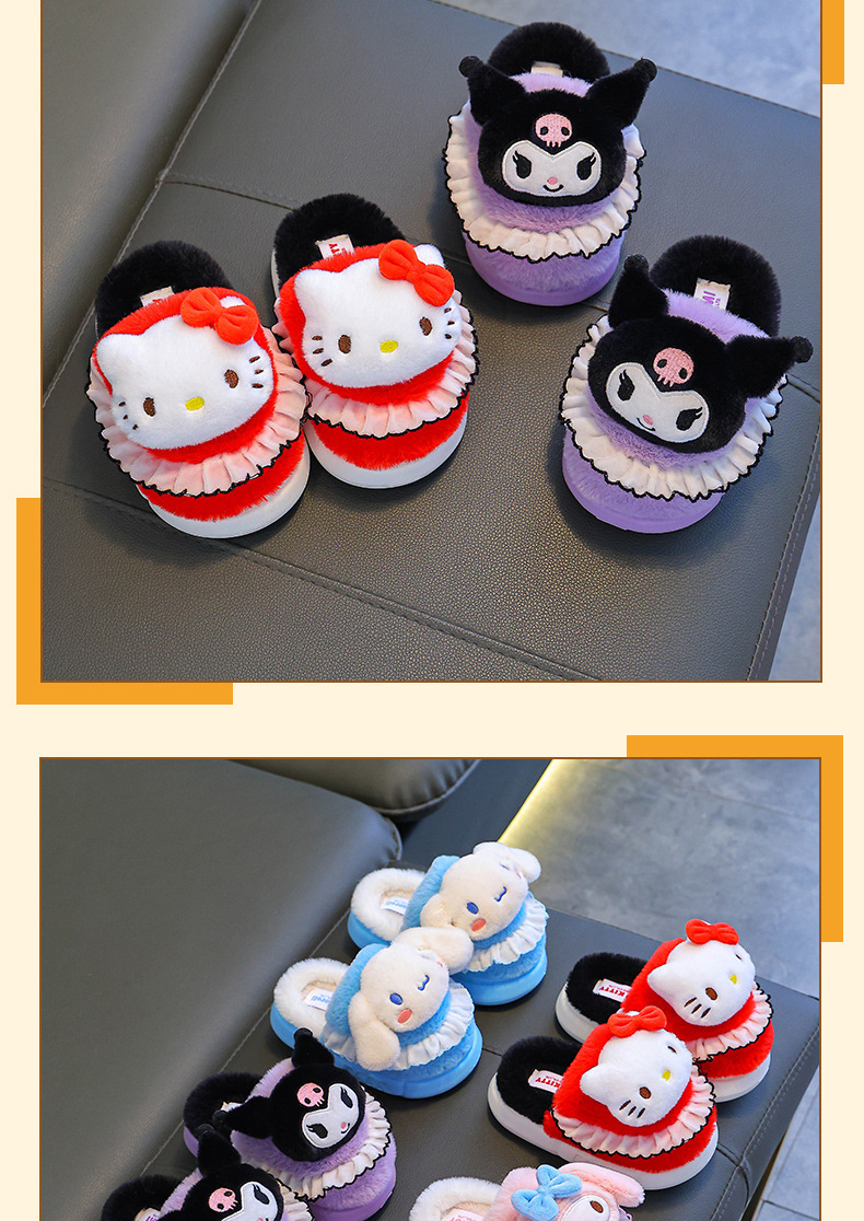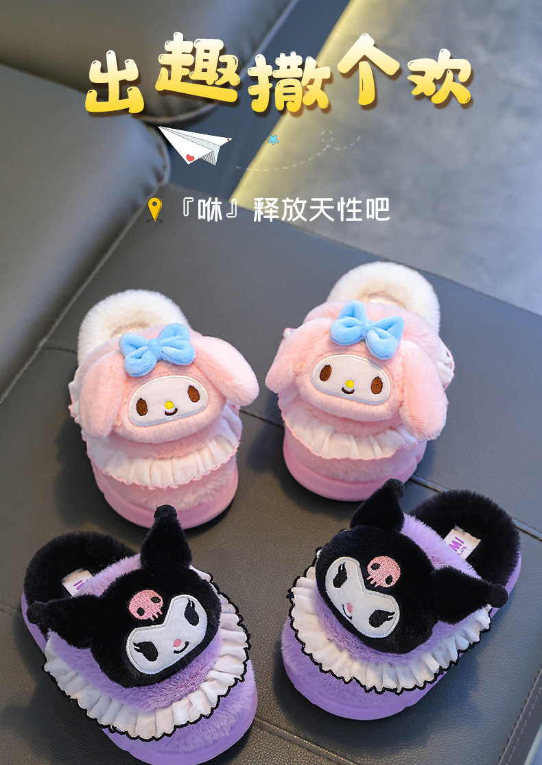 Sanrio Winter Zapatillas de algodón para niños Calidez para niñas más lana de terciopelo para niños en casa Bolso de bebé antideslizante con zapatos de algodón