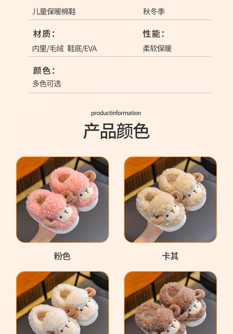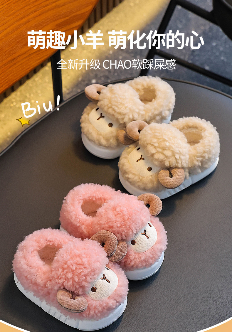 Otoño y invierno zapatillas de algodón para niños y niñas, calentamiento de terciopelo antideslizante, sensación de pisar la mierda, bolsas de bebés, zapatos de algodón