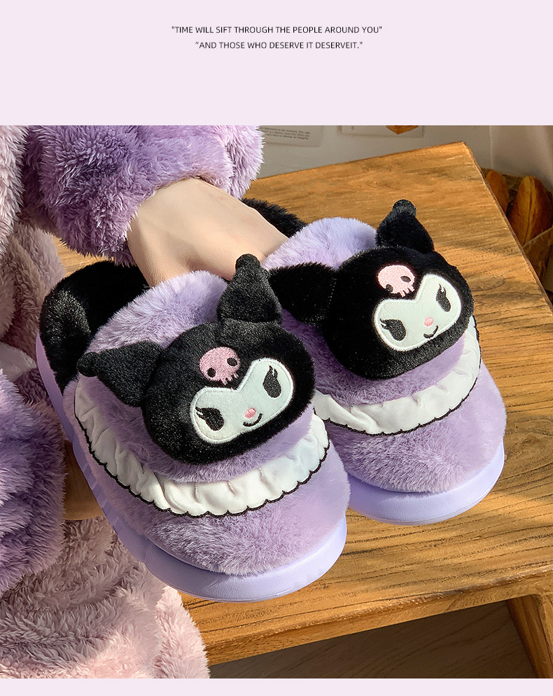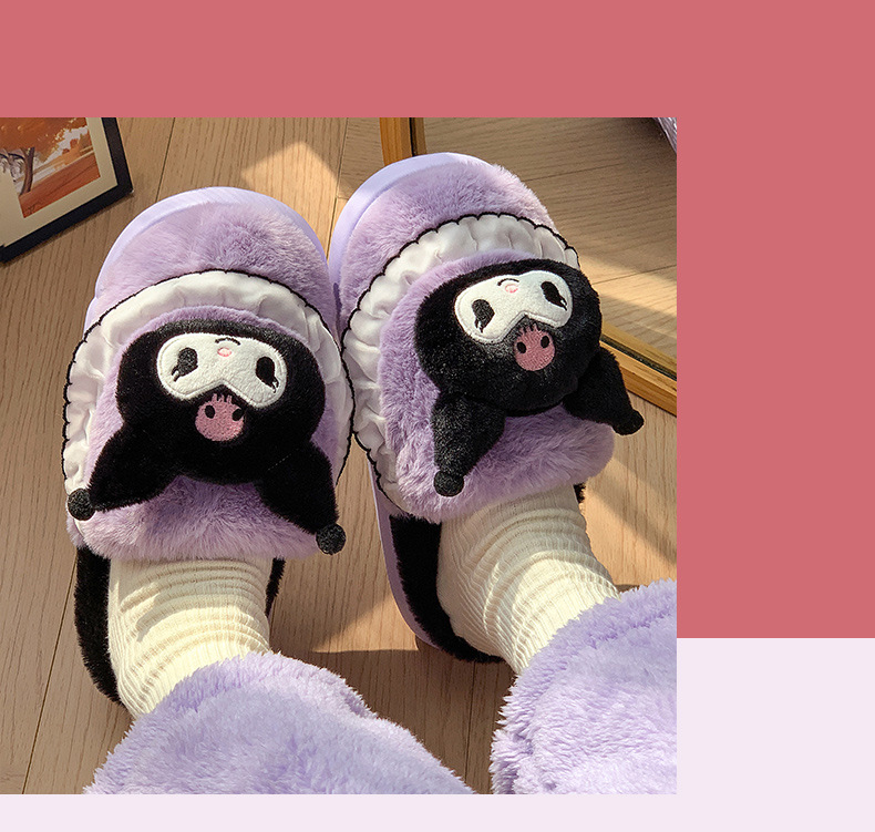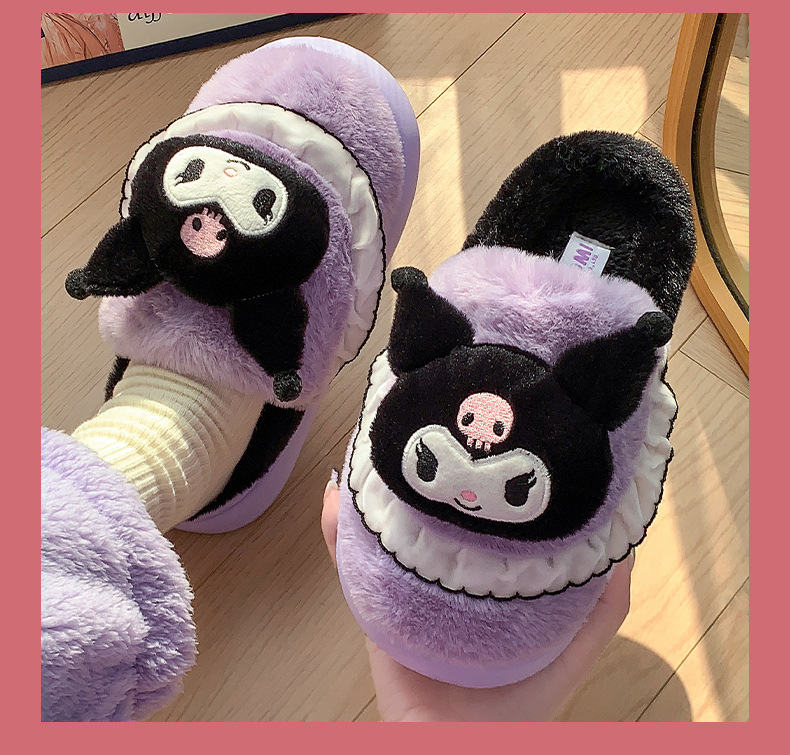 Zapatillas de algodón Kulomi para mujeres otoño y invierno nuevas zapatillas caseras cálidas y de lana princesa Sanliogou