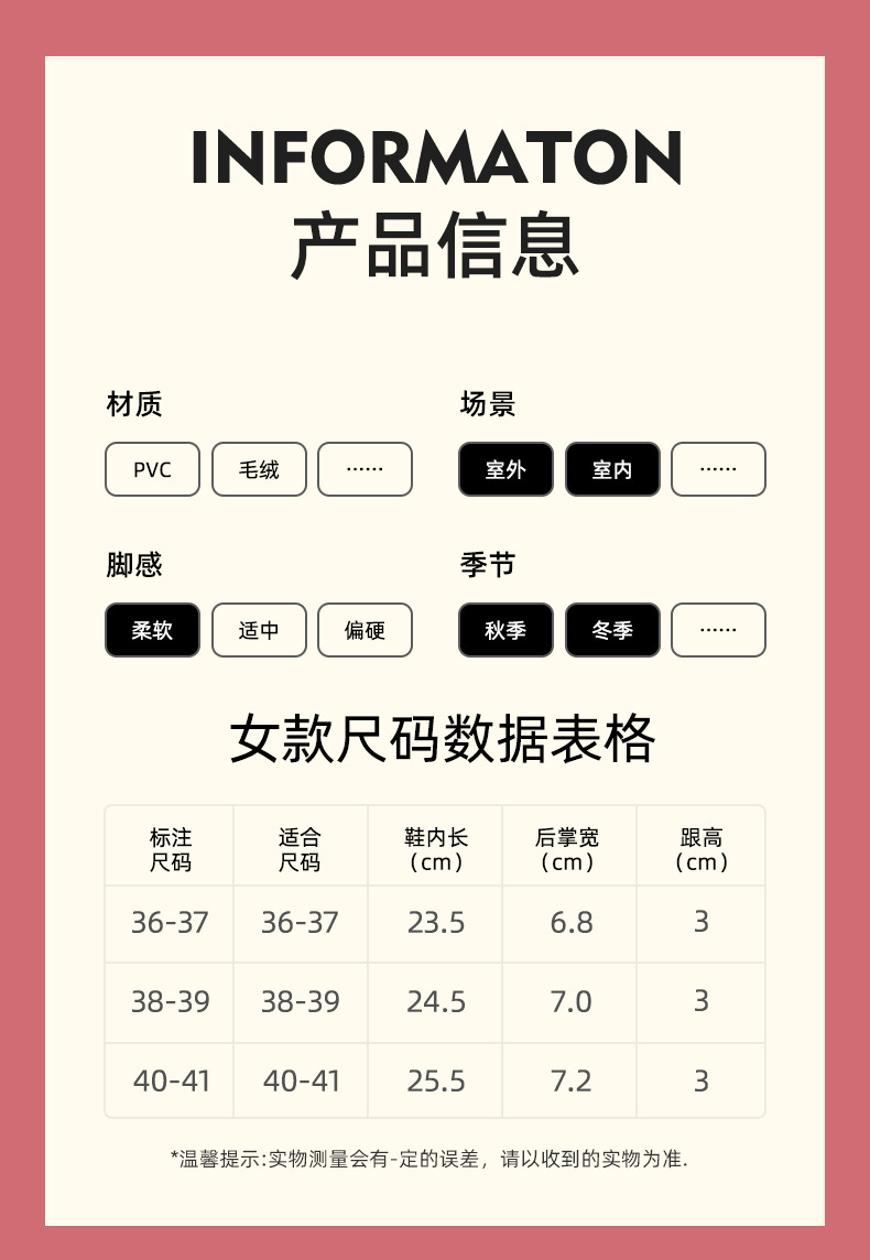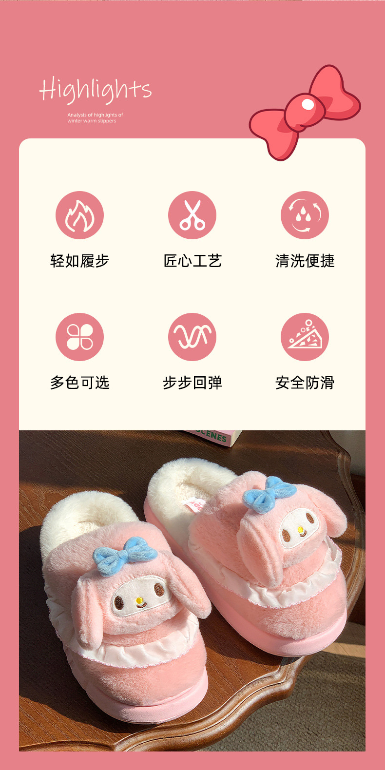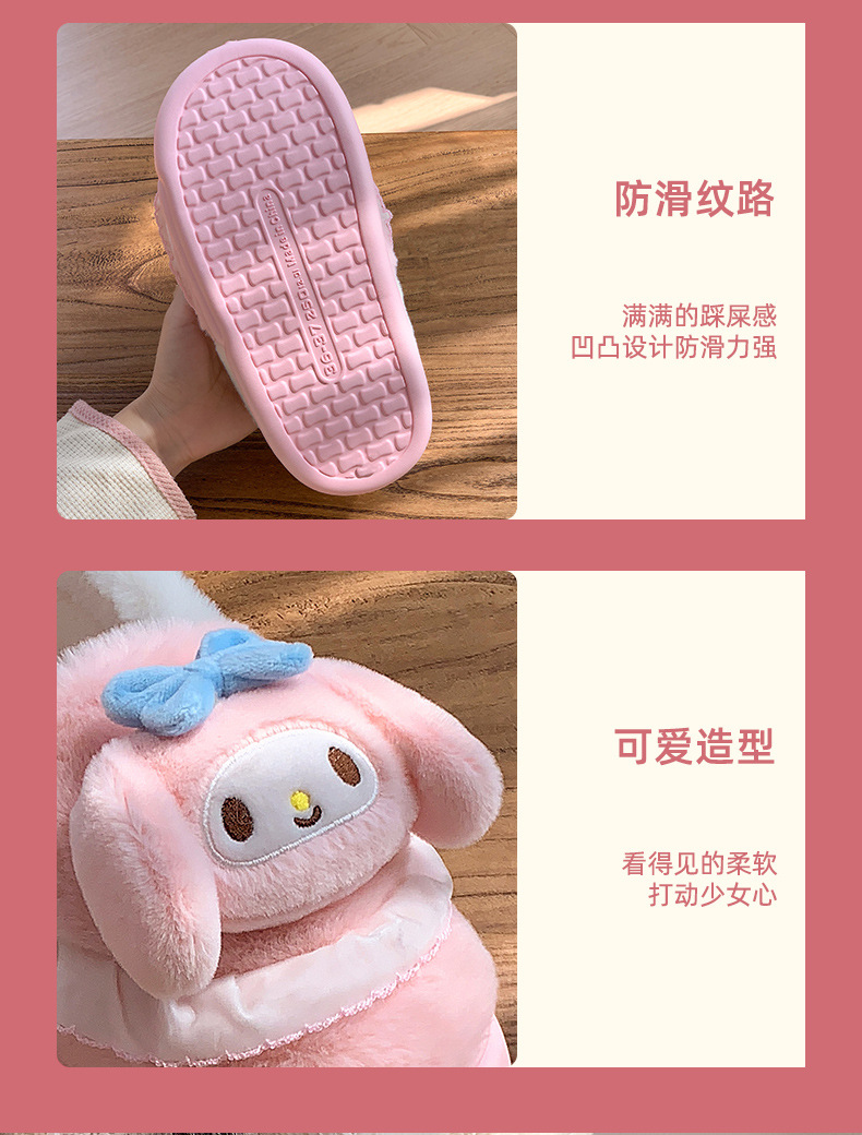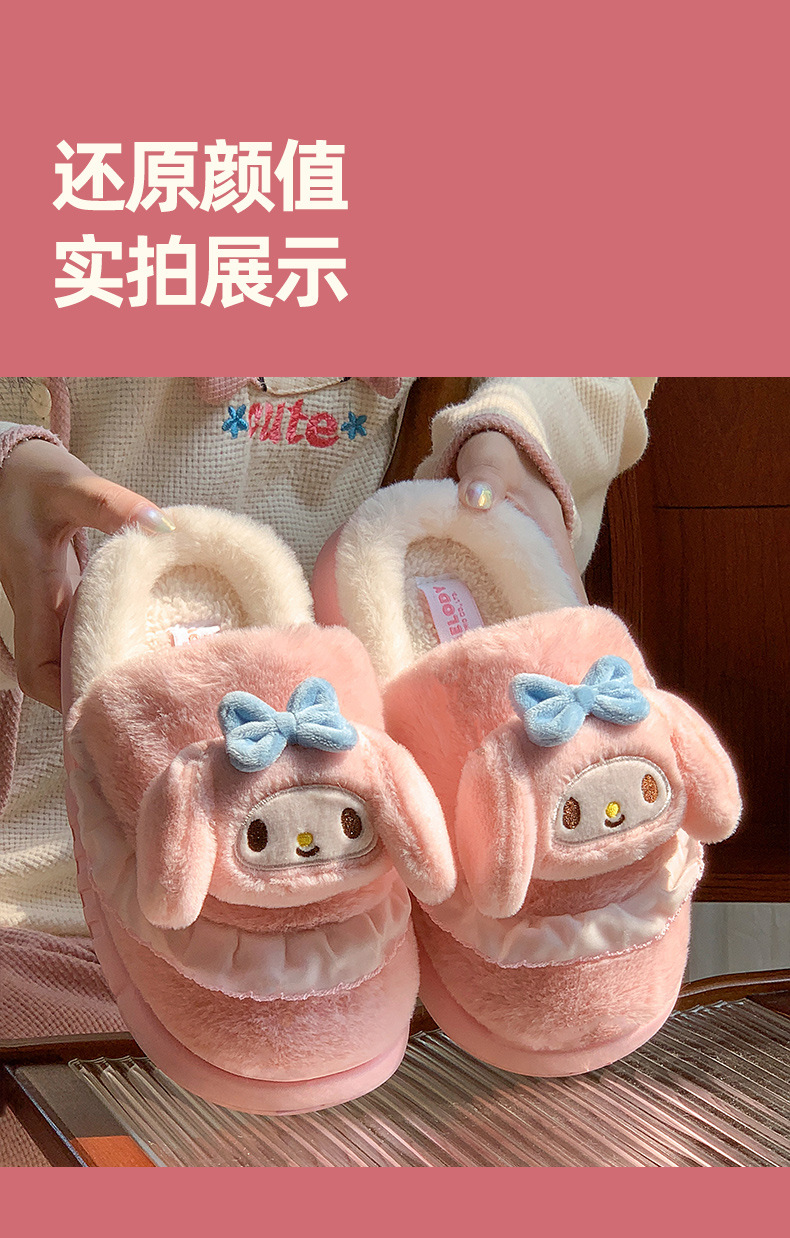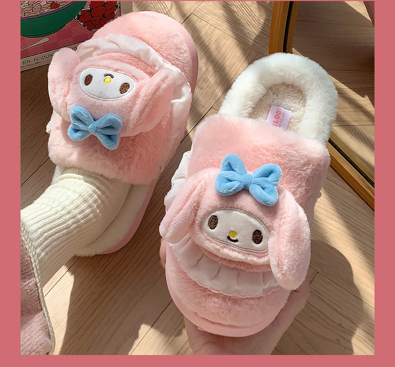 | Color | Zapatillas Colomi púrpura, zapatillas Melody rosa, zapatillas de perro de orejas azules, zapatillas de Kitty rojas, Colomi púrpura (talón de bolsa), Melody rosa (talón de bolsa), perro de orejas azules (talón de bolsa), Kitty roja (talón de bolsa) |