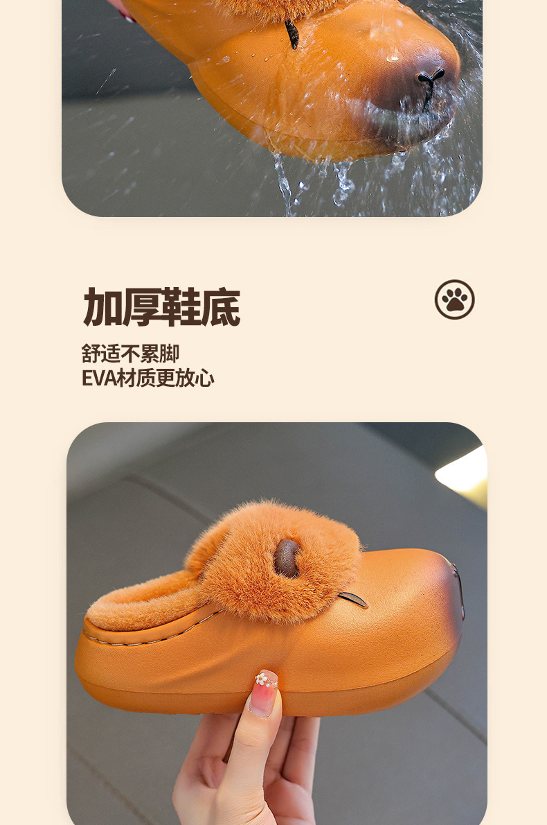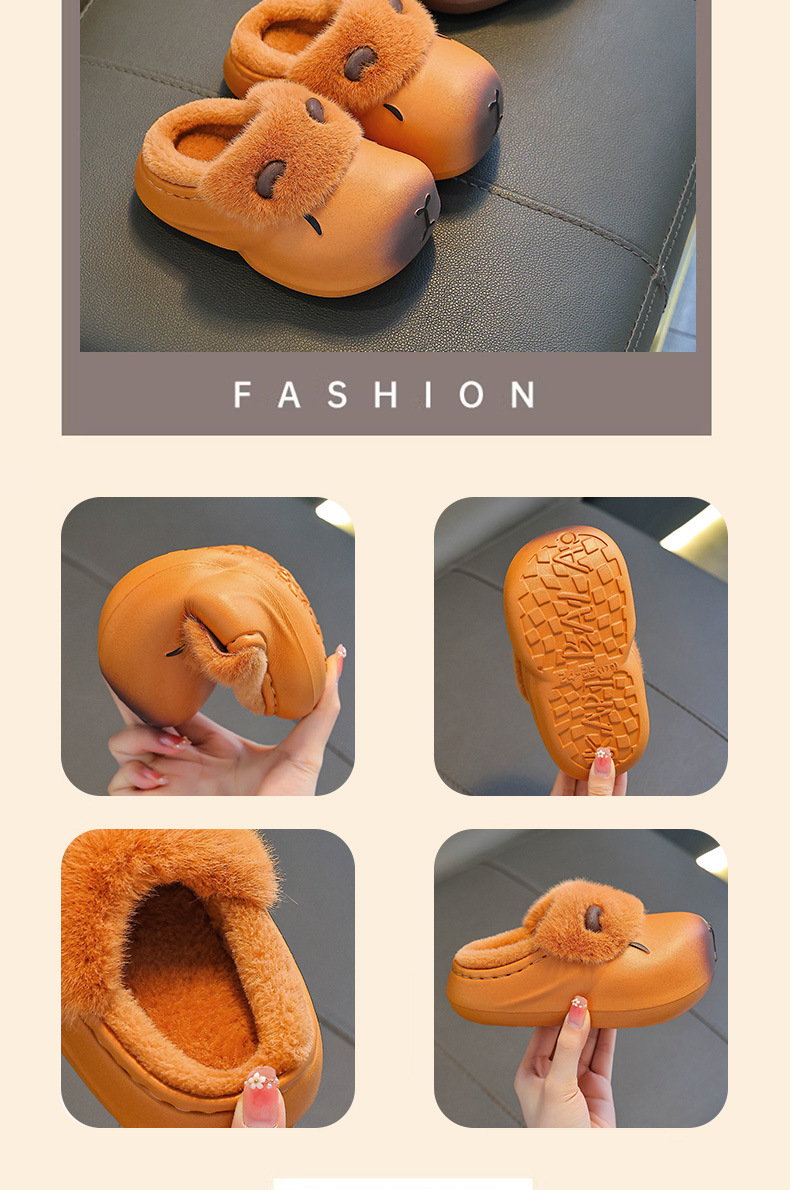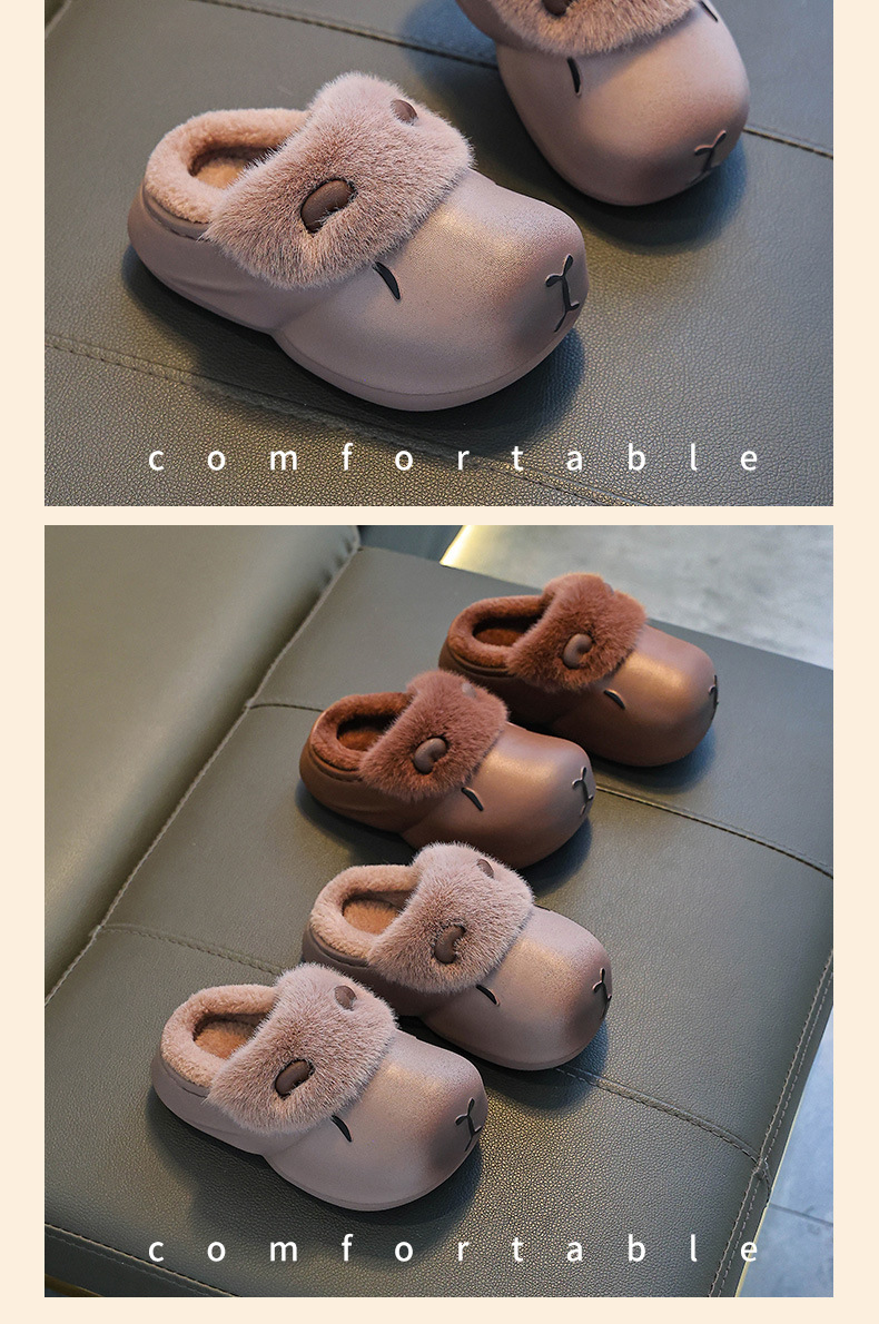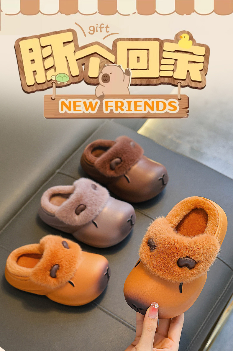 Zapatillas de algodón de invierno para niños Capibara, zapatillas de algodón para niños y niñas, zapatillas de algodón cálidas y impermeables para padres e hijos, bolsas de tacones para niños