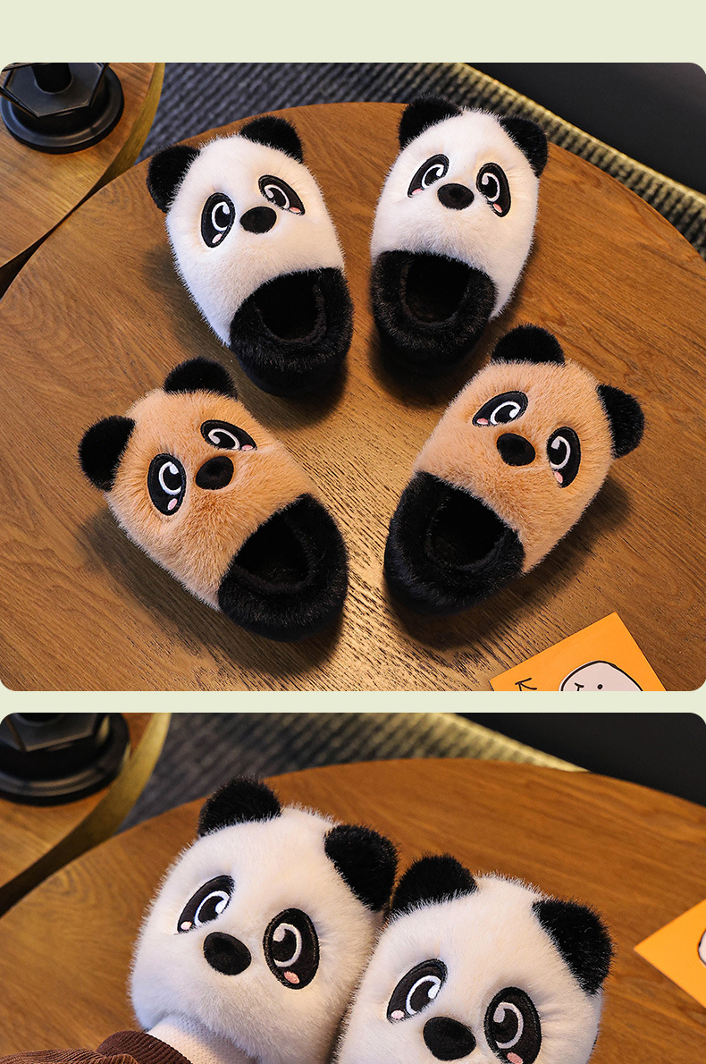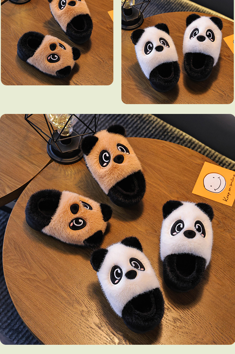 Otoño y invierno zapatillas de algodón para niños y niñas, calentamiento y peluche panda, bolsas caseras con tacones de algodón para niños pequeños y medianos