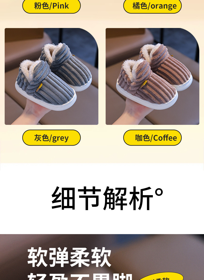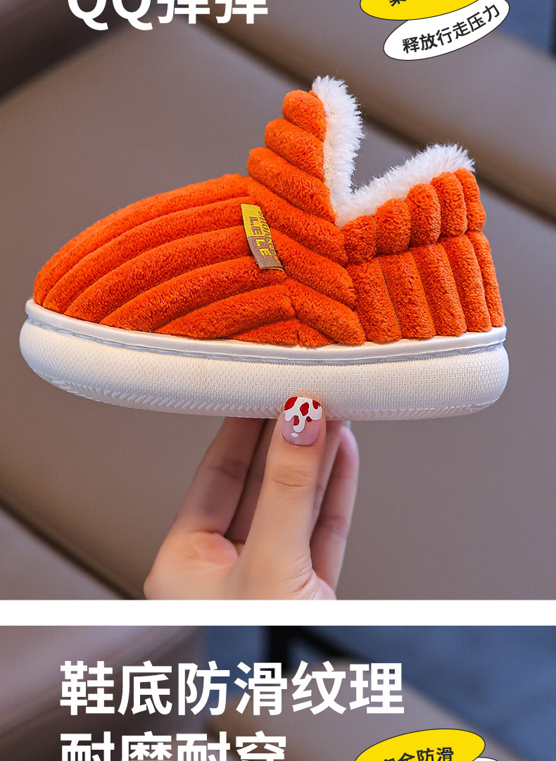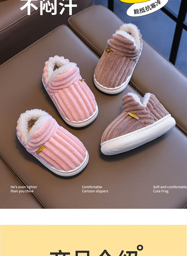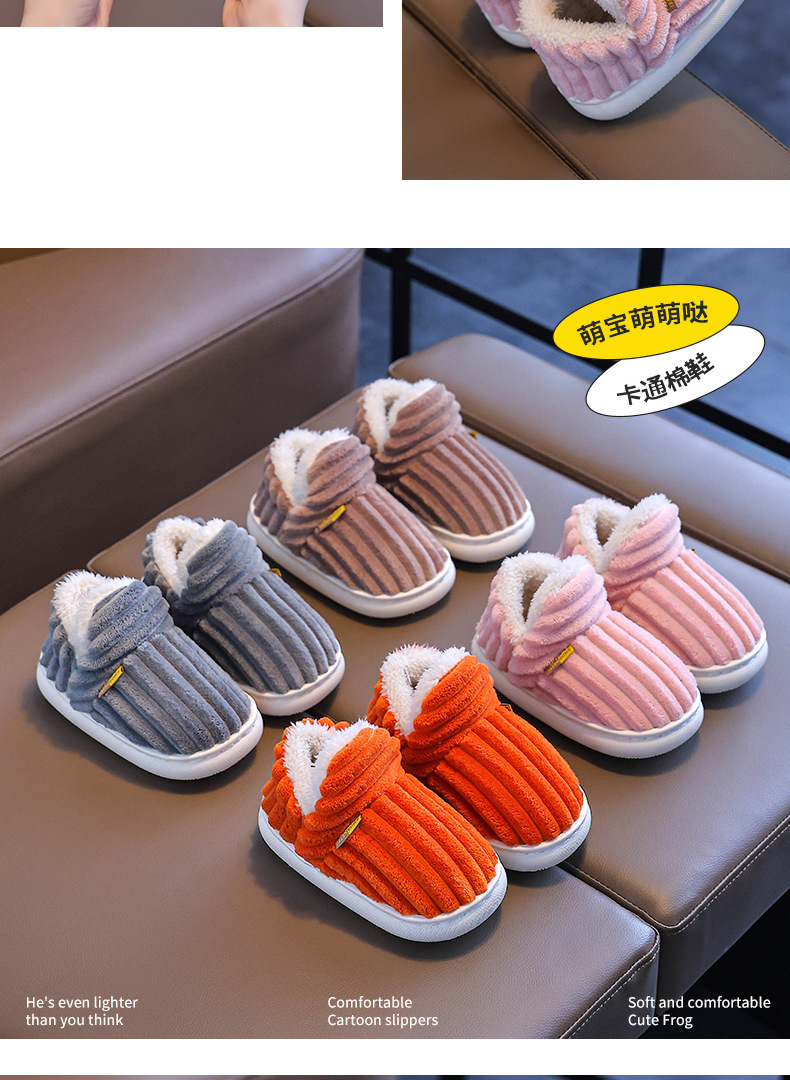 Zapatillas de algodón para niños en invierno para niños y niñas en el interior bolsas de pelo cálidas tacones de niños y medianos zapatos de algodón antideslizantes