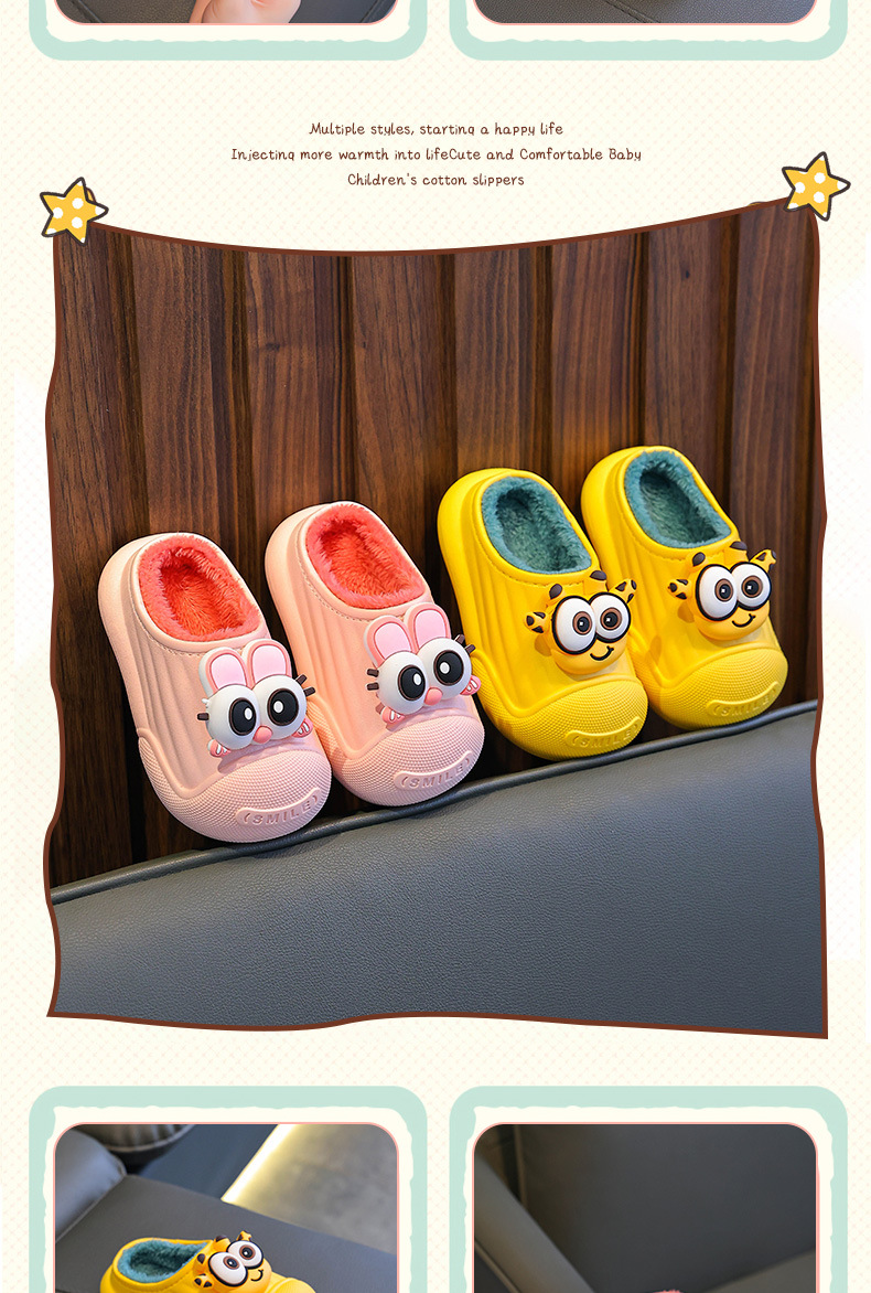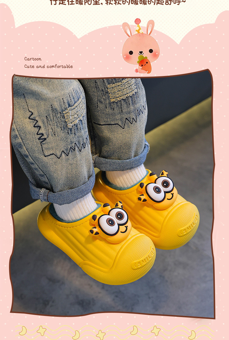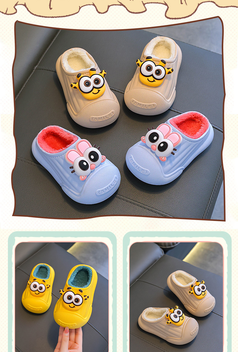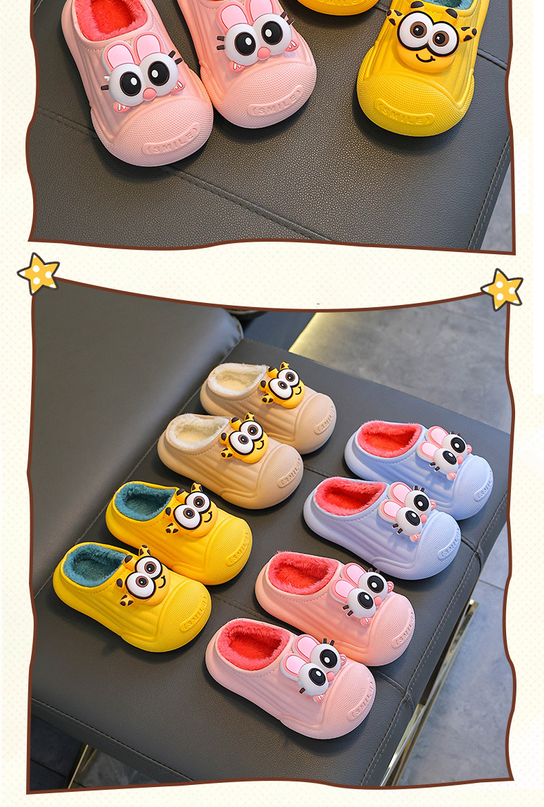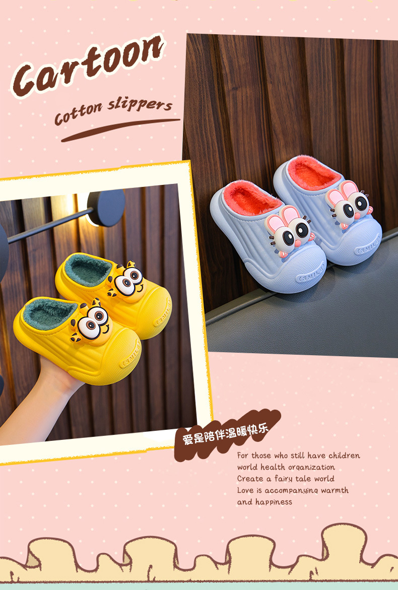 Zapatillas de algodón para niños de invierno para niños y niñas calientes y peludos antideslizantes, cubierta de algodón impermeable, bolsas para bebés, zapatillas de algodón
