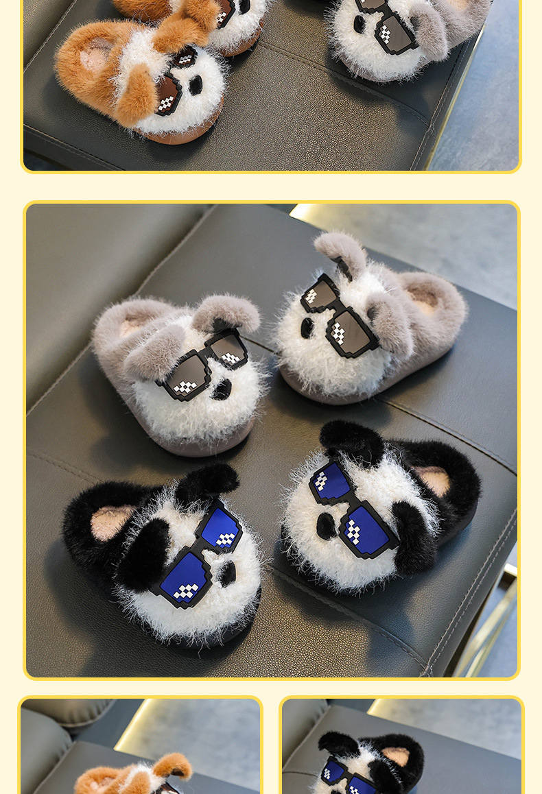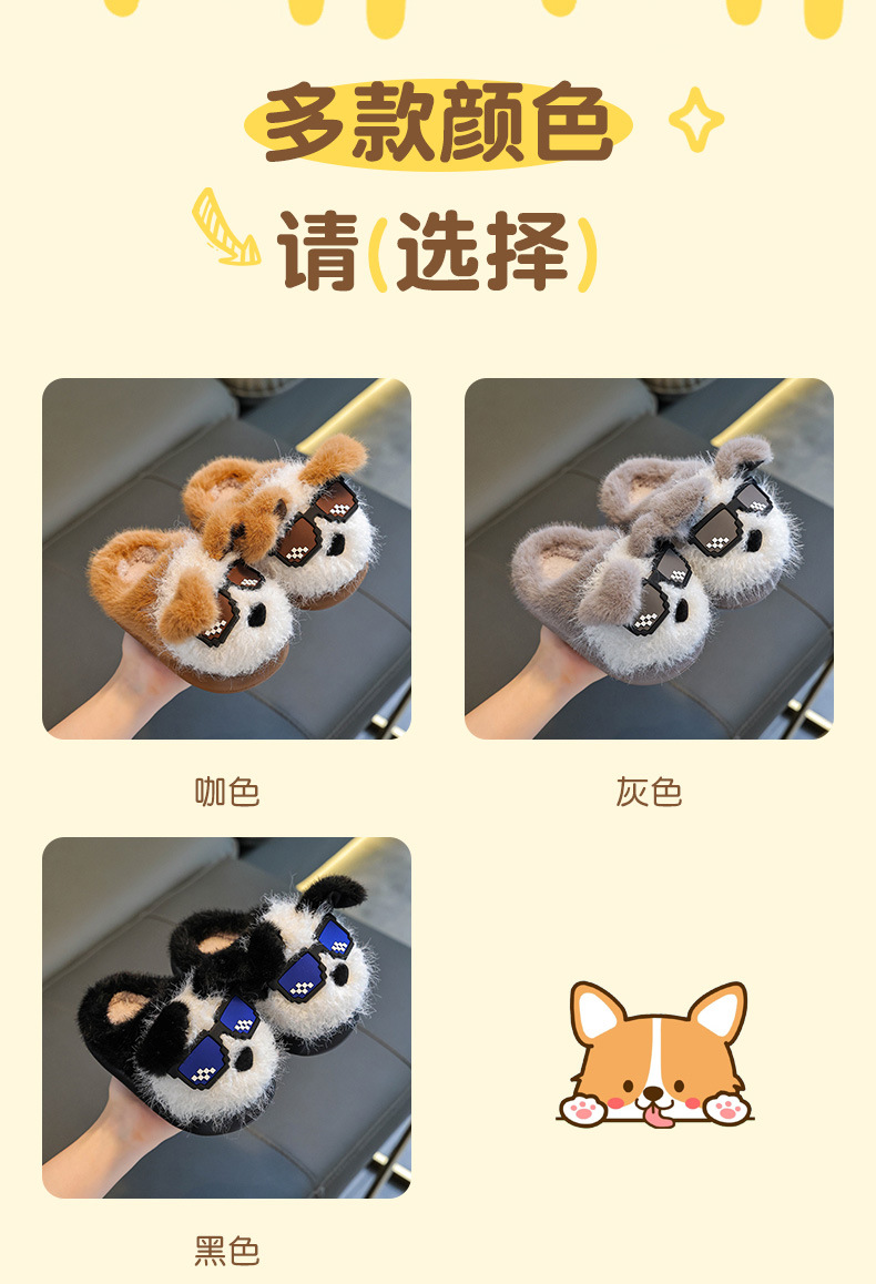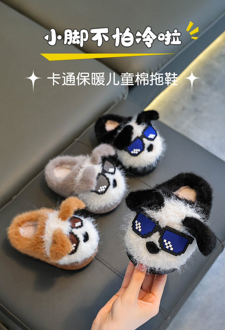 Otoño y invierno zapatillas de algodón para niños y niñas calientes y pelusa para padres e hijos, zapatos de algodón antideslizantes para cachorros