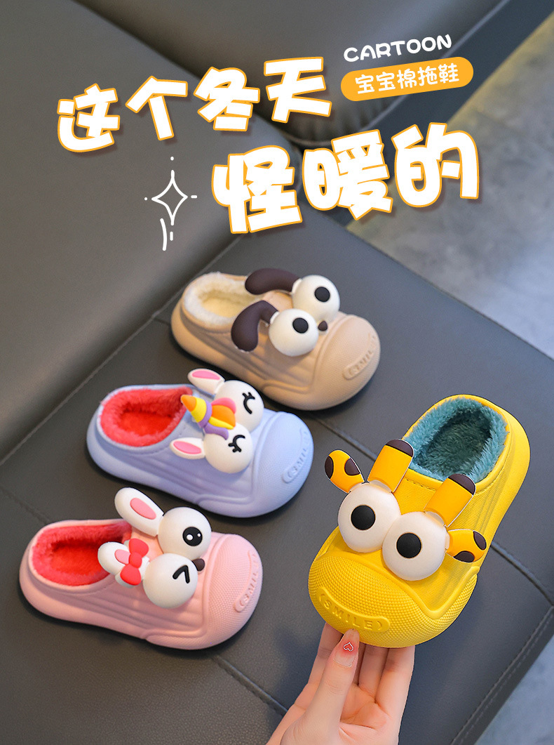 2024 nuevos zapatillas de algodón de invierno para niños, niñas y niños lindos impermeables, antideslizantes y cálidos, cubierta de algodón de peluche, zapatillas de algodón de bebé