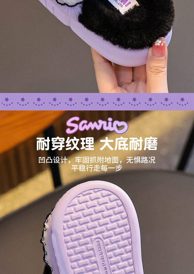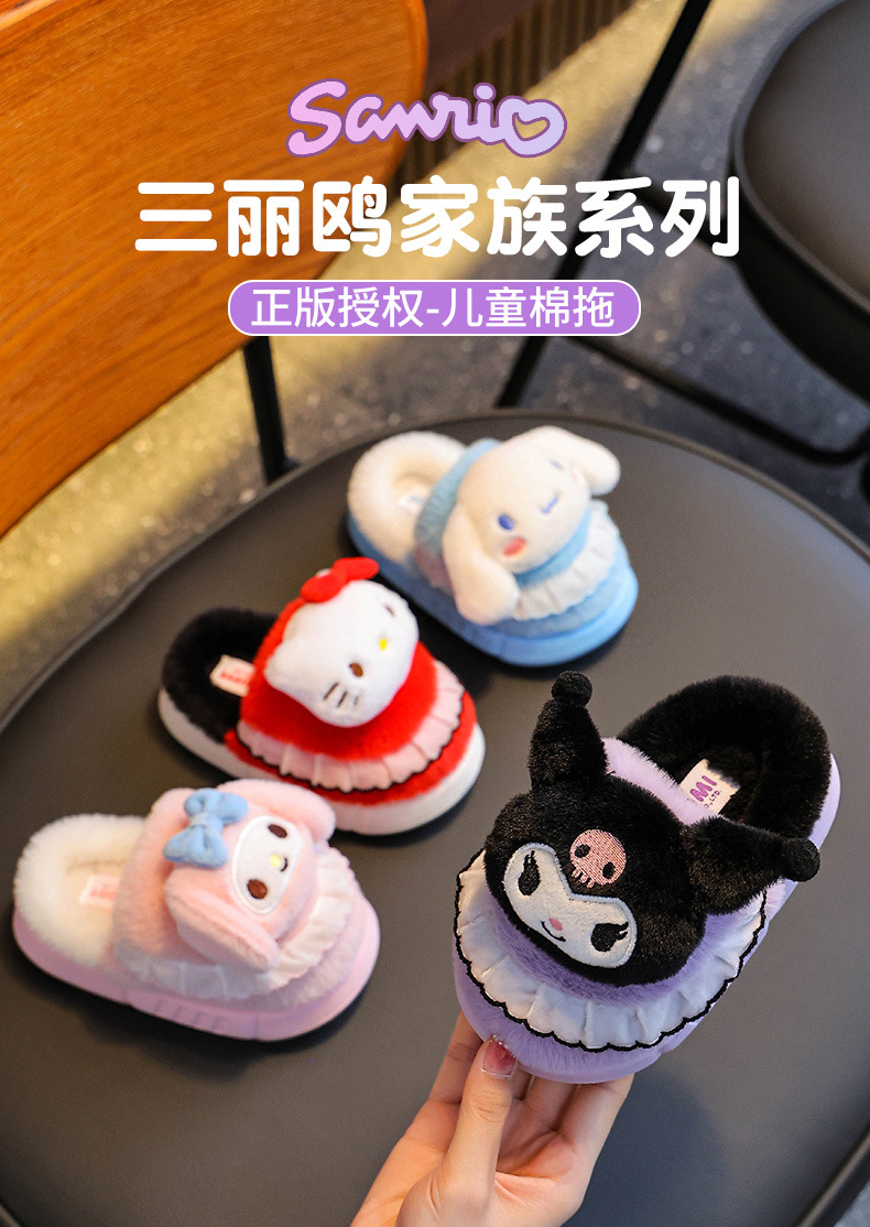 Sanrio auténtico invierno zapatillas de algodón para niños, niñas cálidas bolsas de terciopelo con tacos de goma, zapatillas de algodón para bebés
