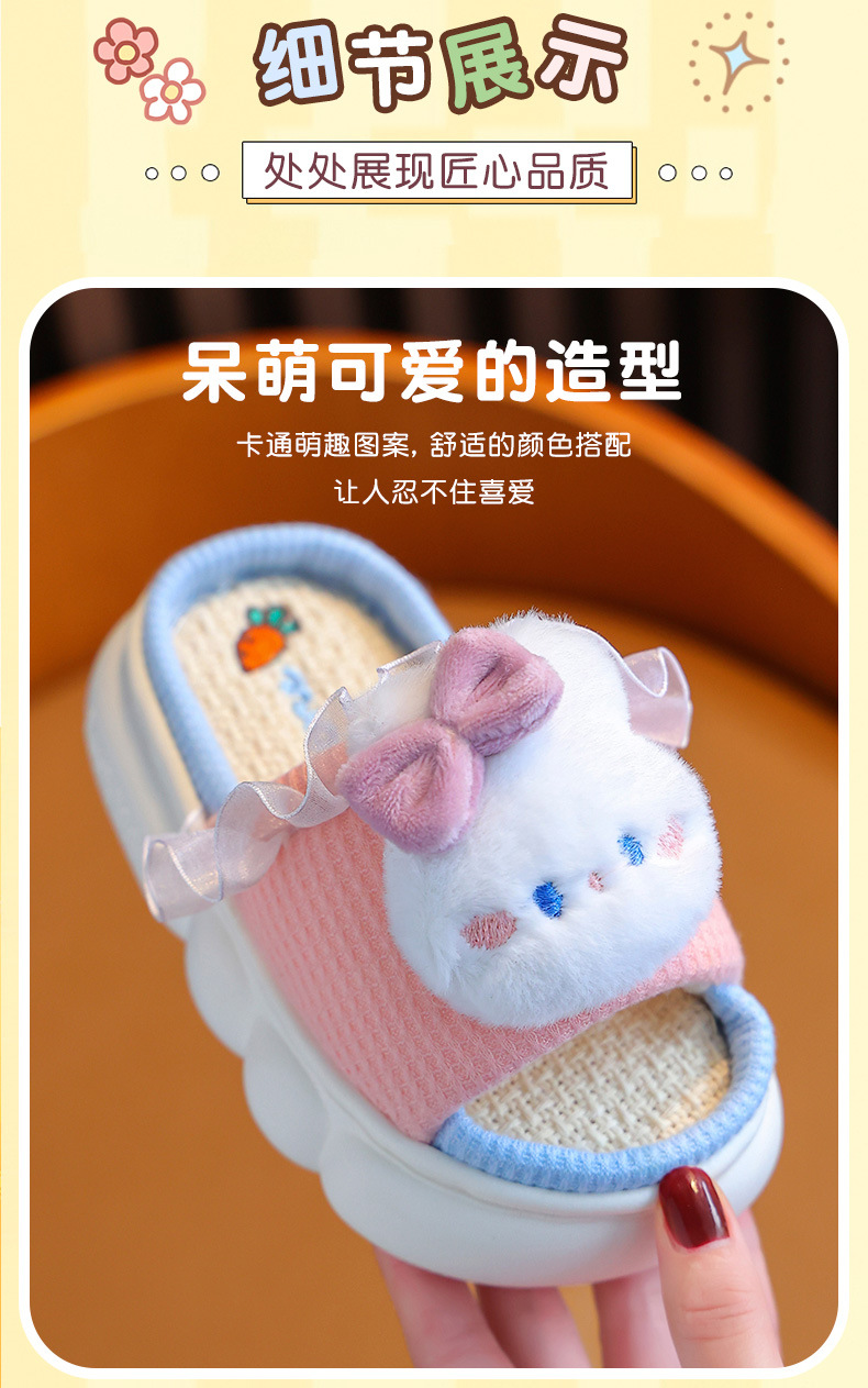Primavera y otoño Zapatillas de lino para niños Four Seasons interior transpirable niñas padre-hijo mediano y grande Niños Bebé Zapatillas de lino de algodón