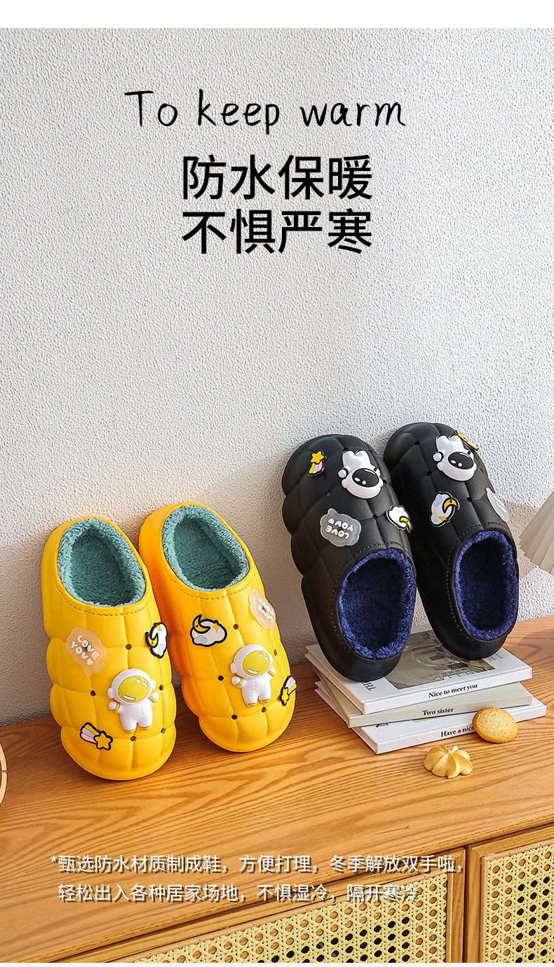Zapatillas de algodón de invierno para mujer pareja casa impermeable antideslizante bolsa talón mierda sensación forro polar cálido confinamiento zapatillas de algodón para hombres