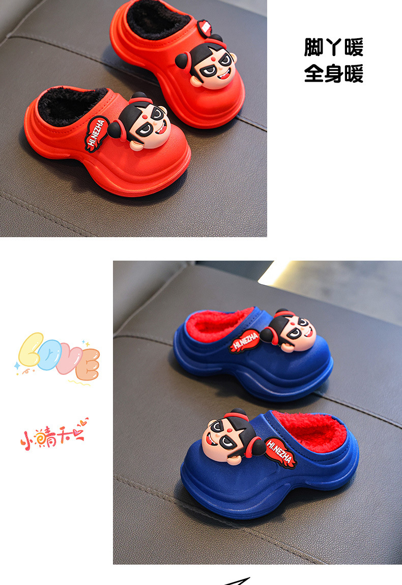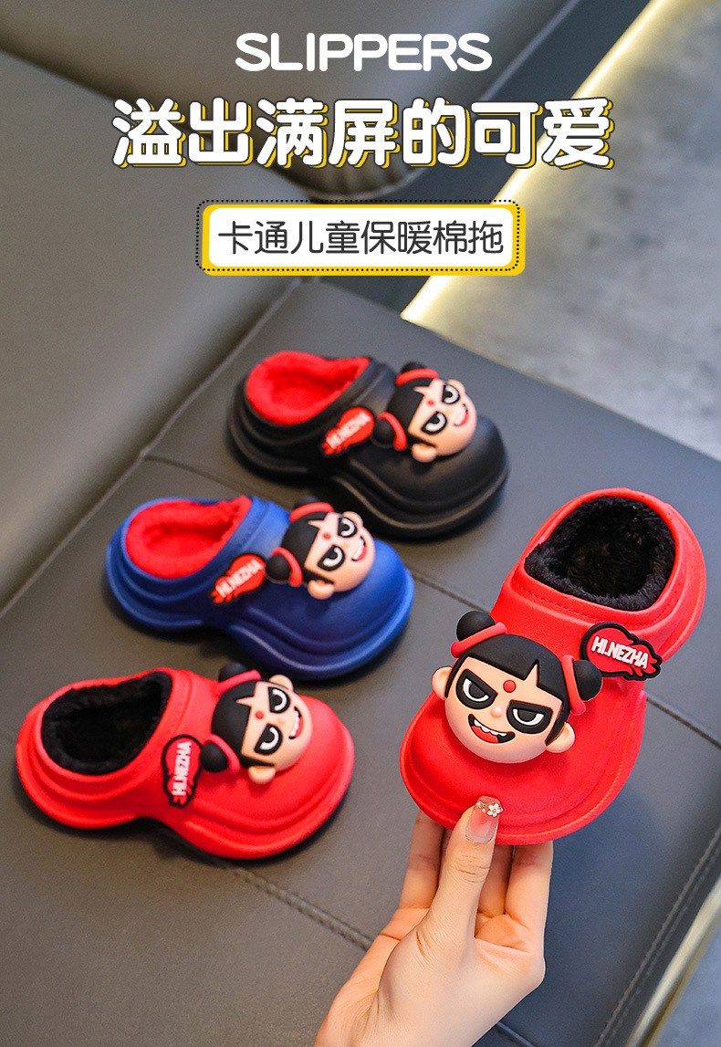 Nezha zapatillas de algodón de invierno para niños, niñas y niños, calentamiento de algodón impermeable, bolsas de niños, zapatos de talón de algodón