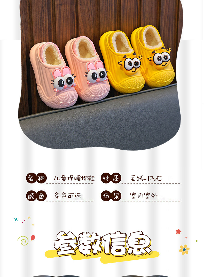 Bolsas de invierno para niños, zapatos de algodón para niños y niñas, zapatillas de algodón cálidas, impermeables y antideslizantes para niños pequeños, lindas zapatillas de algodón caseras para niños pequeños