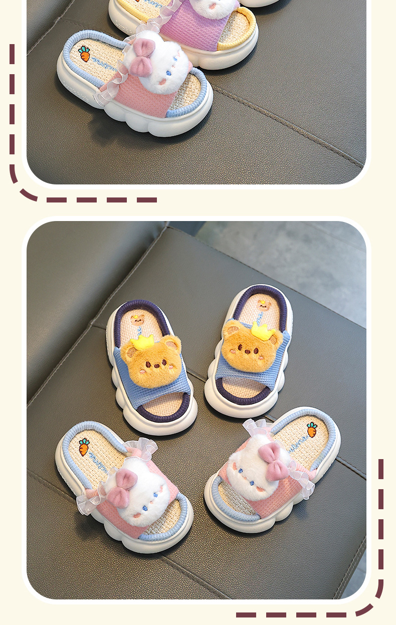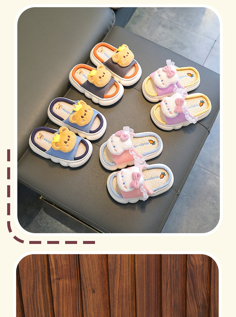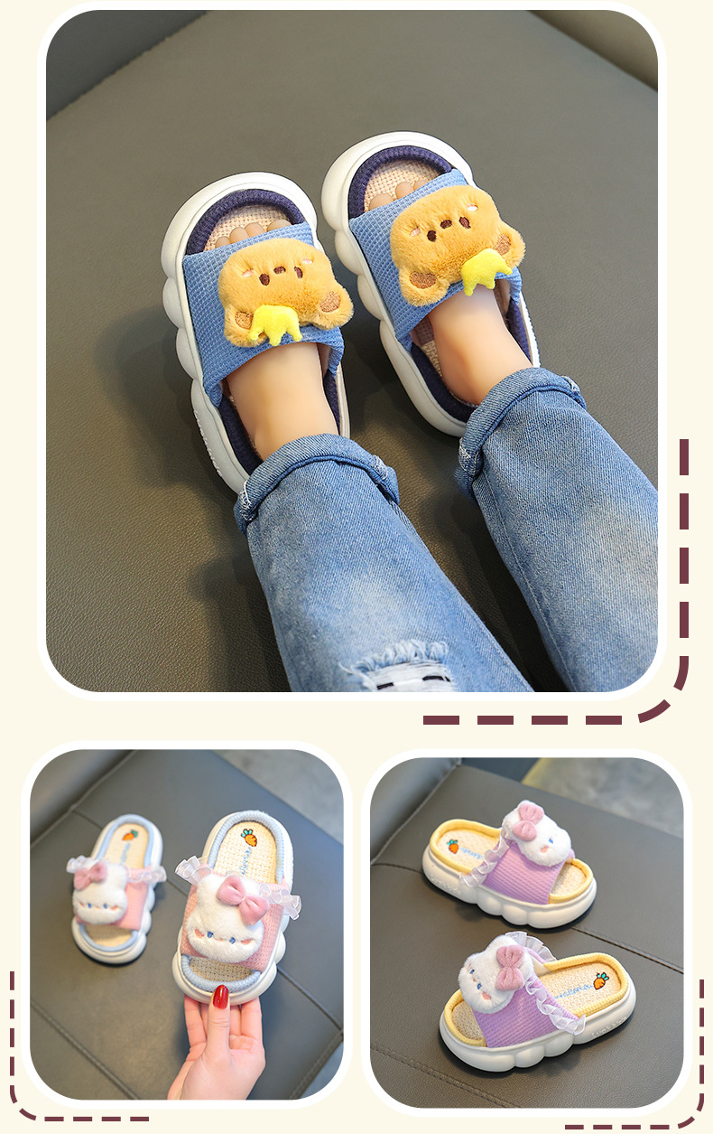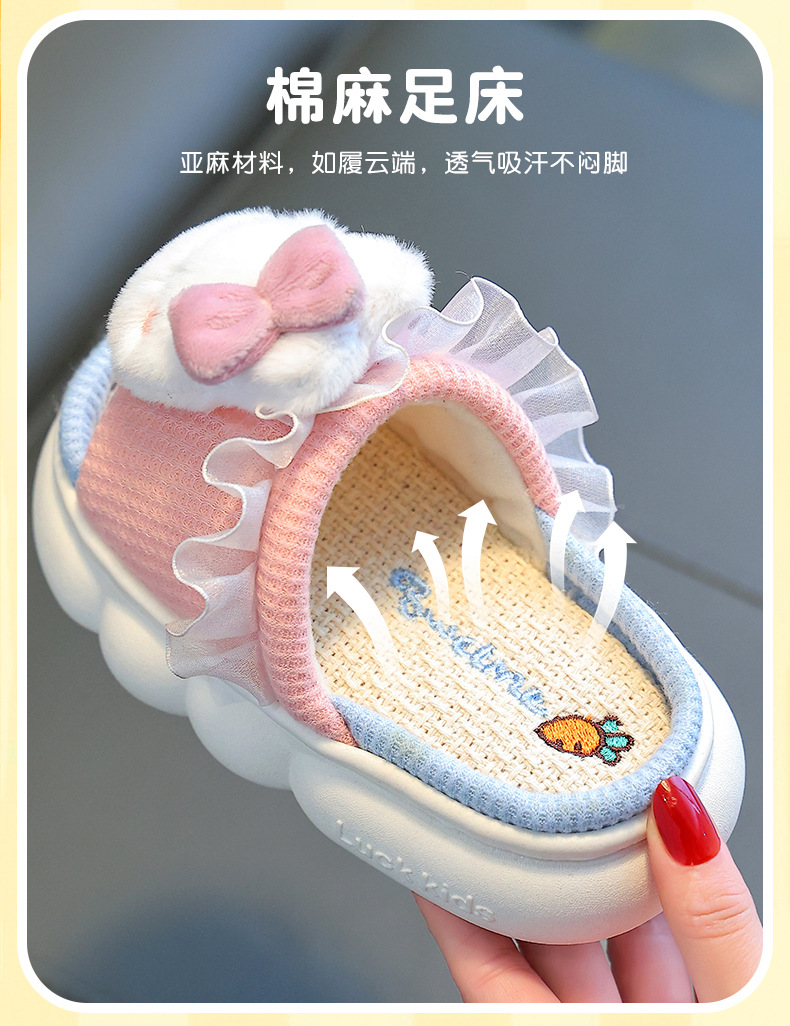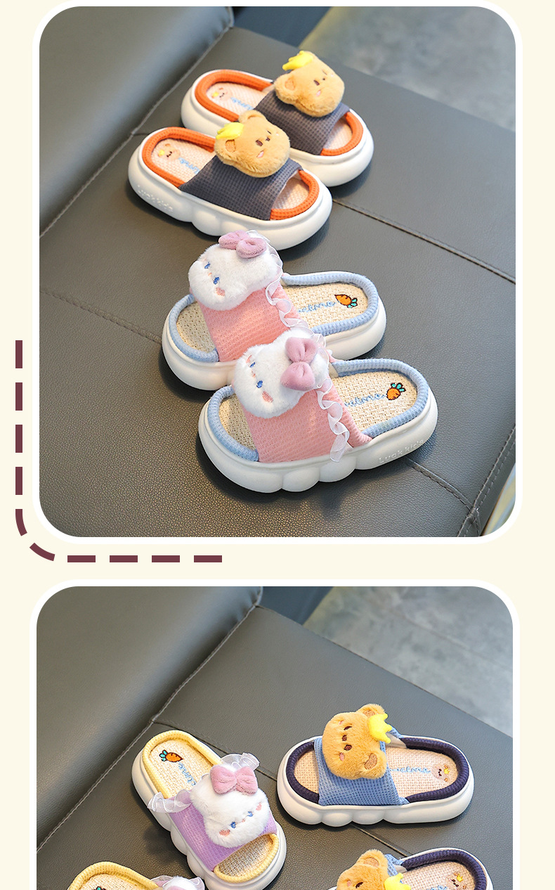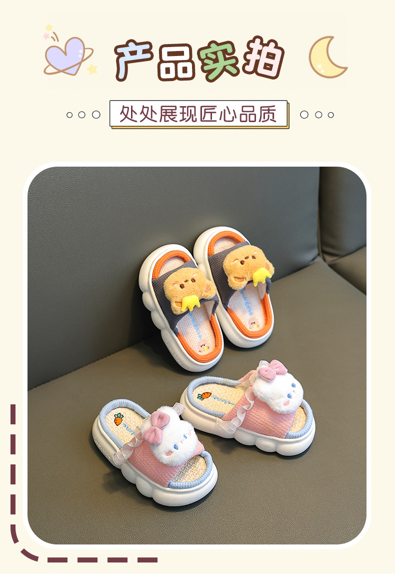 Zapatillas de lino para niños de cuatro estaciones de primavera y otoño interior antideslizante de fondo grueso transpirable padre-hijo casa bebé piso de algodón y lino zapatillas
