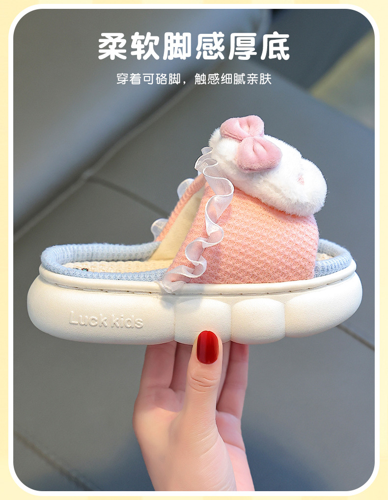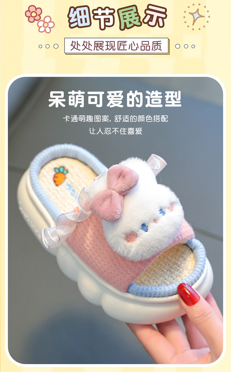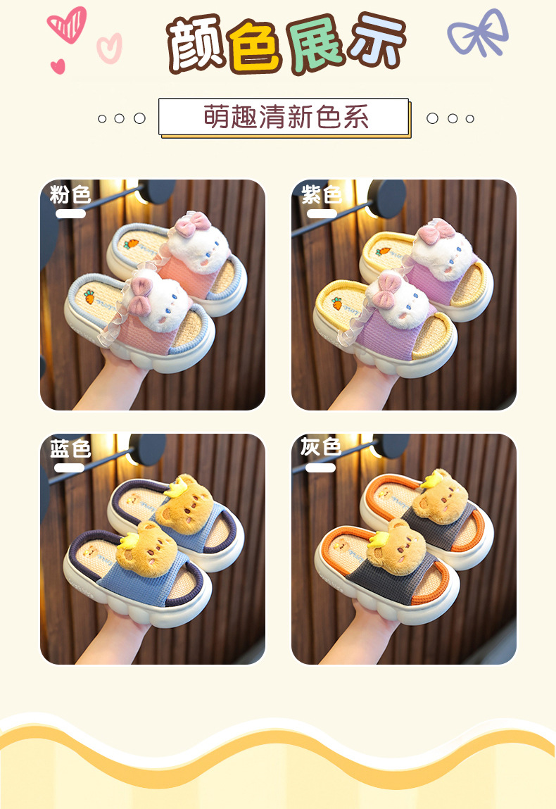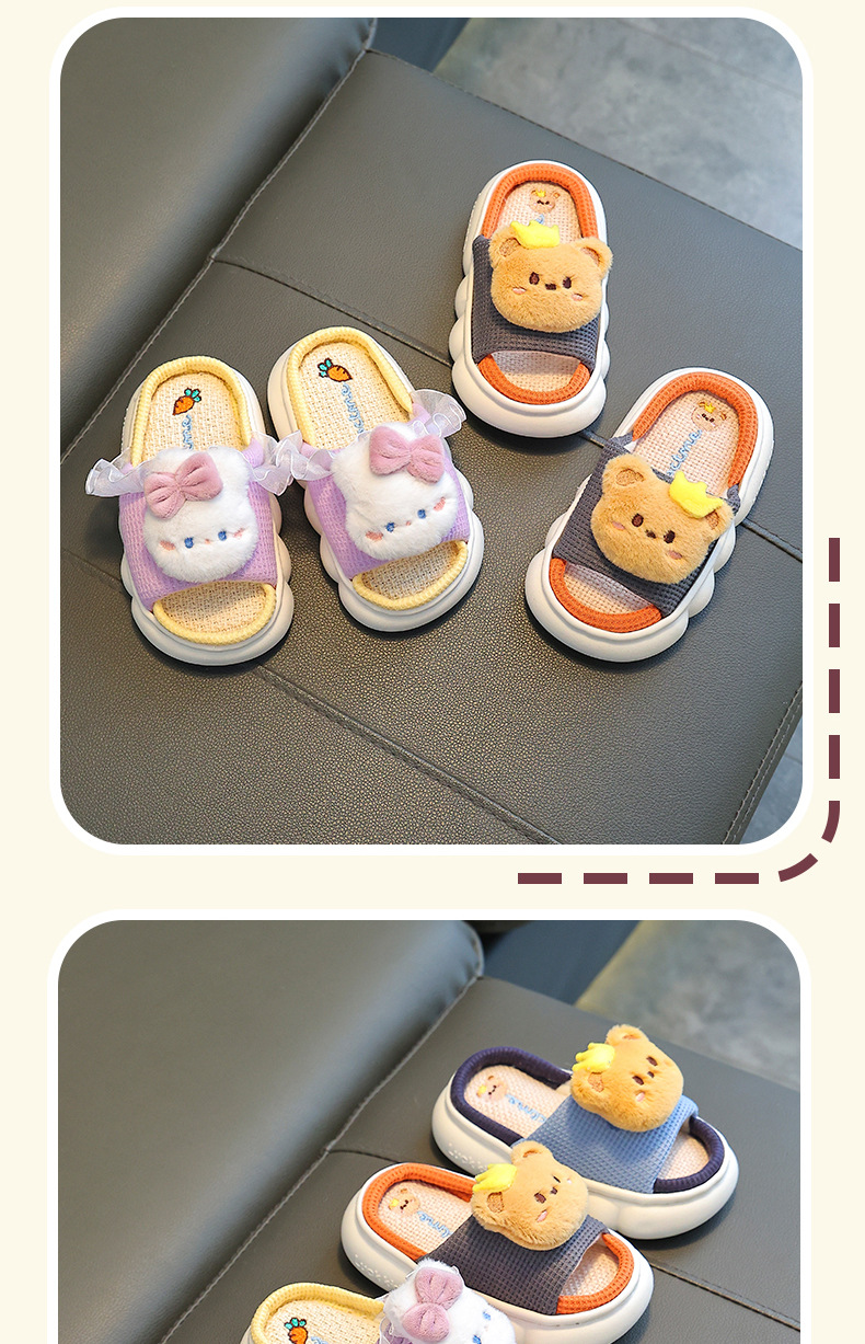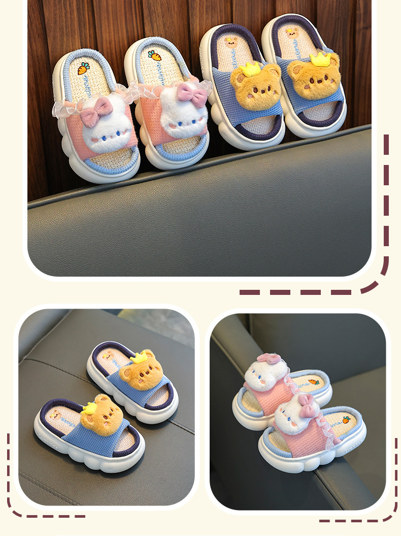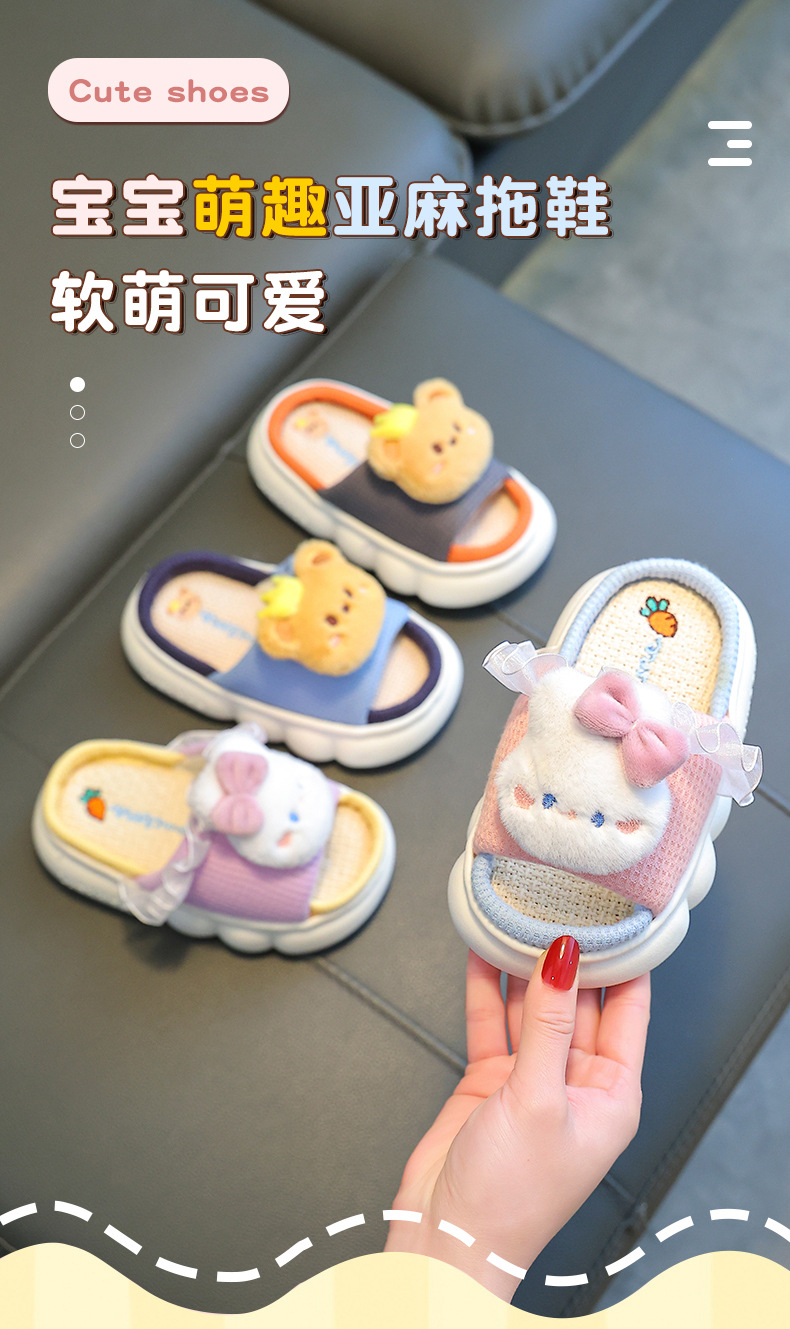 Zapatillas de lino para niños de cuatro estaciones de primavera y otoño interior antideslizante de fondo grueso transpirable padre-hijo casa bebé piso de algodón y lino zapatillas