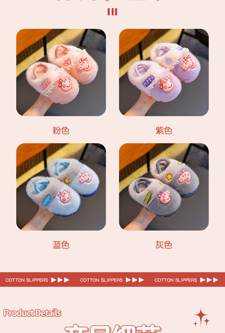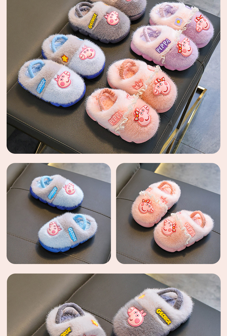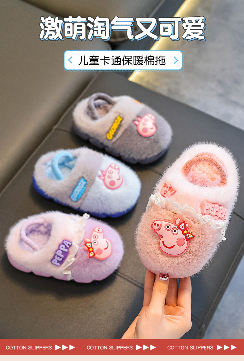Piggy Page invierno zapatillas de algodón para niños, niños y niñas, calentamiento con cinta elástica de lana, bolsas de tacones de algodón para bebés