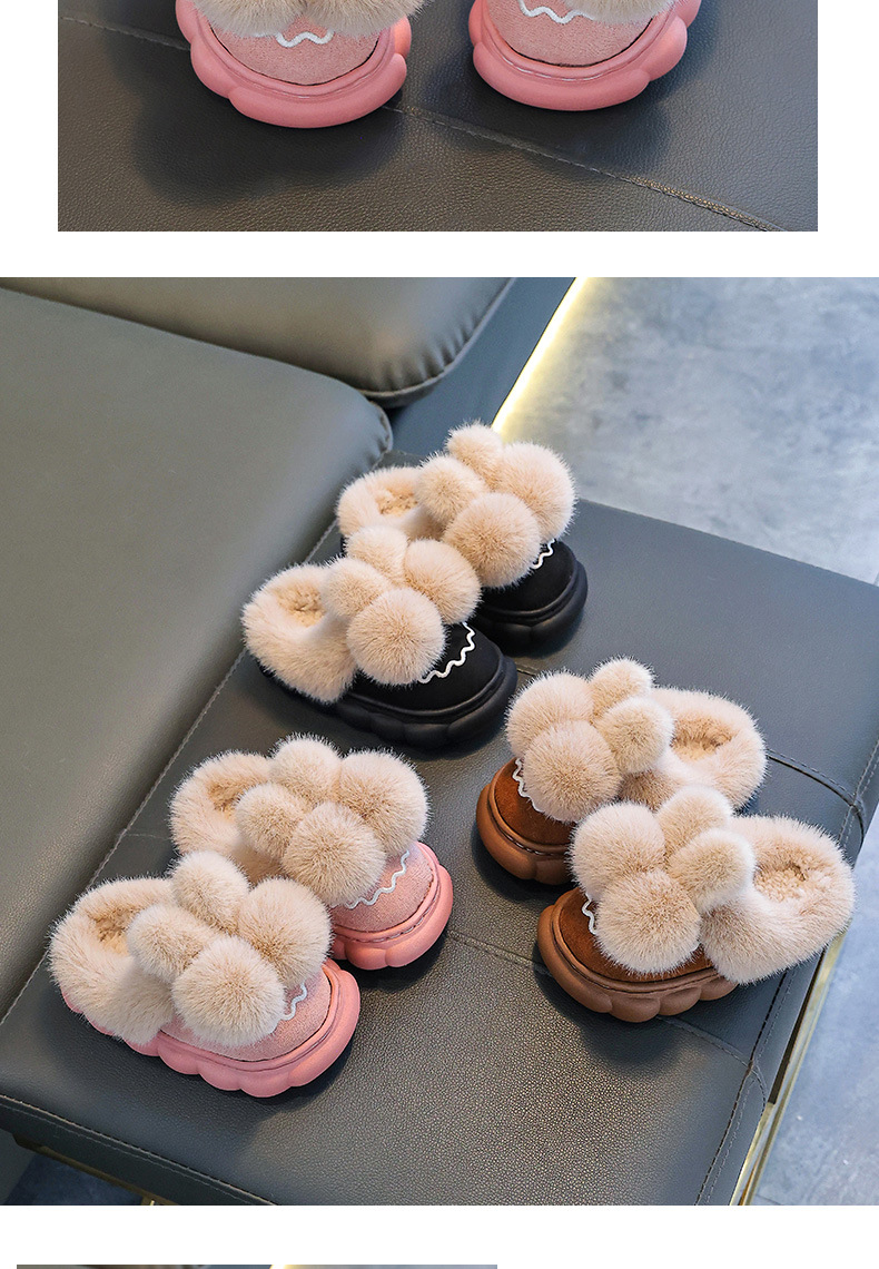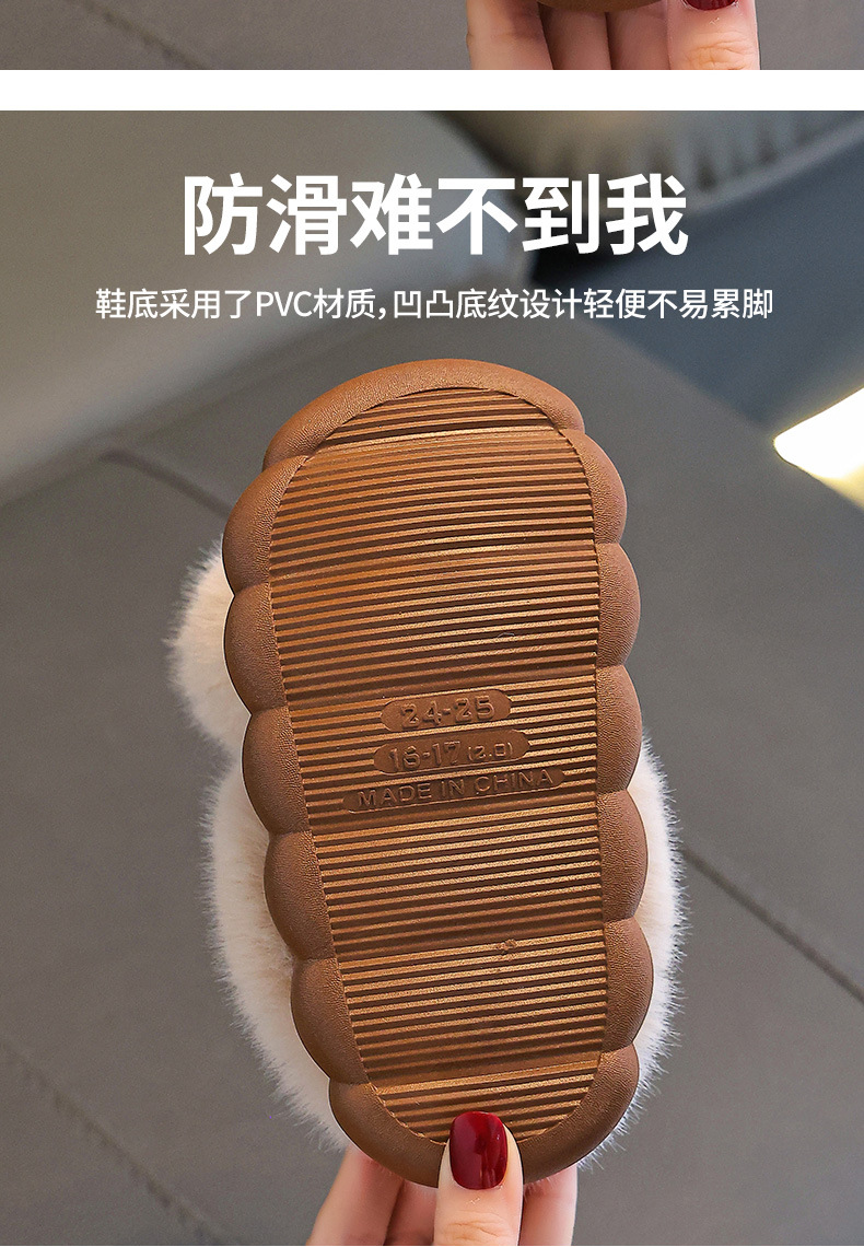 Zapatillas de algodón para niños de invierno, niños y niñas, zapatillas de algodón cálidas de pelusa de fondo grueso para padres e hijos en el hogar, bolsas de niños grandes, zapatillas de algodón