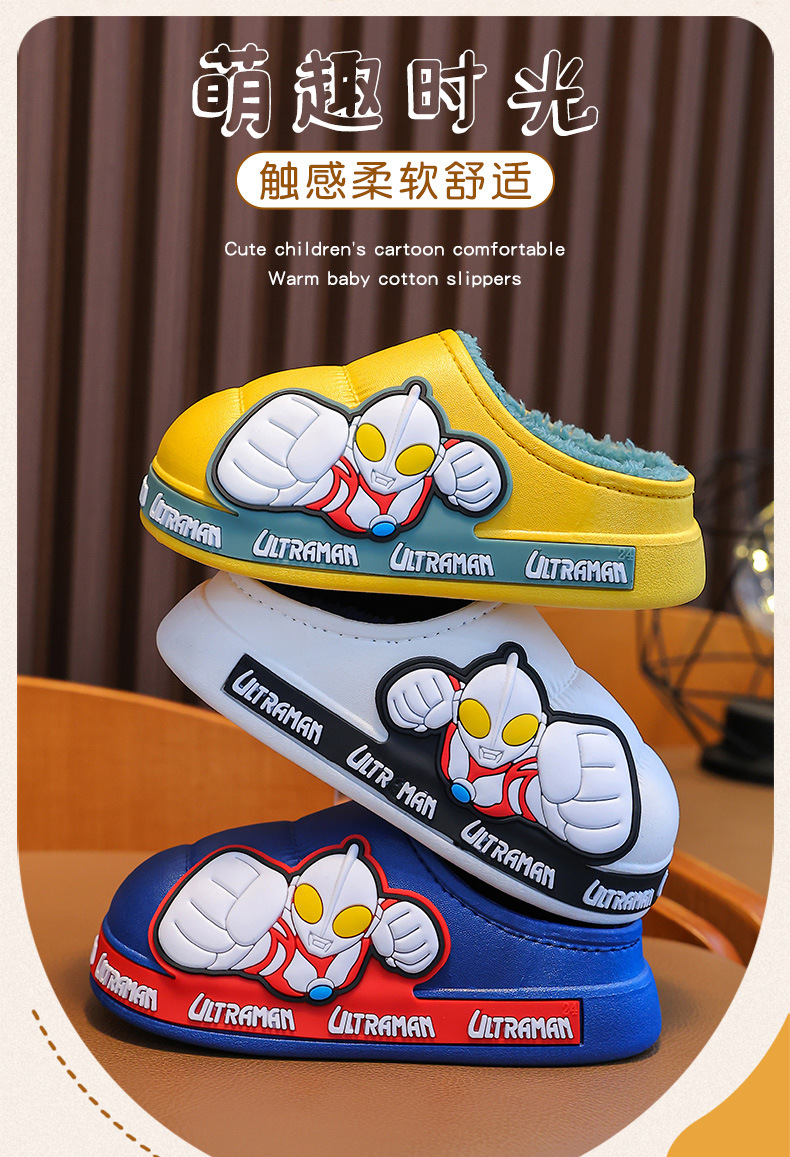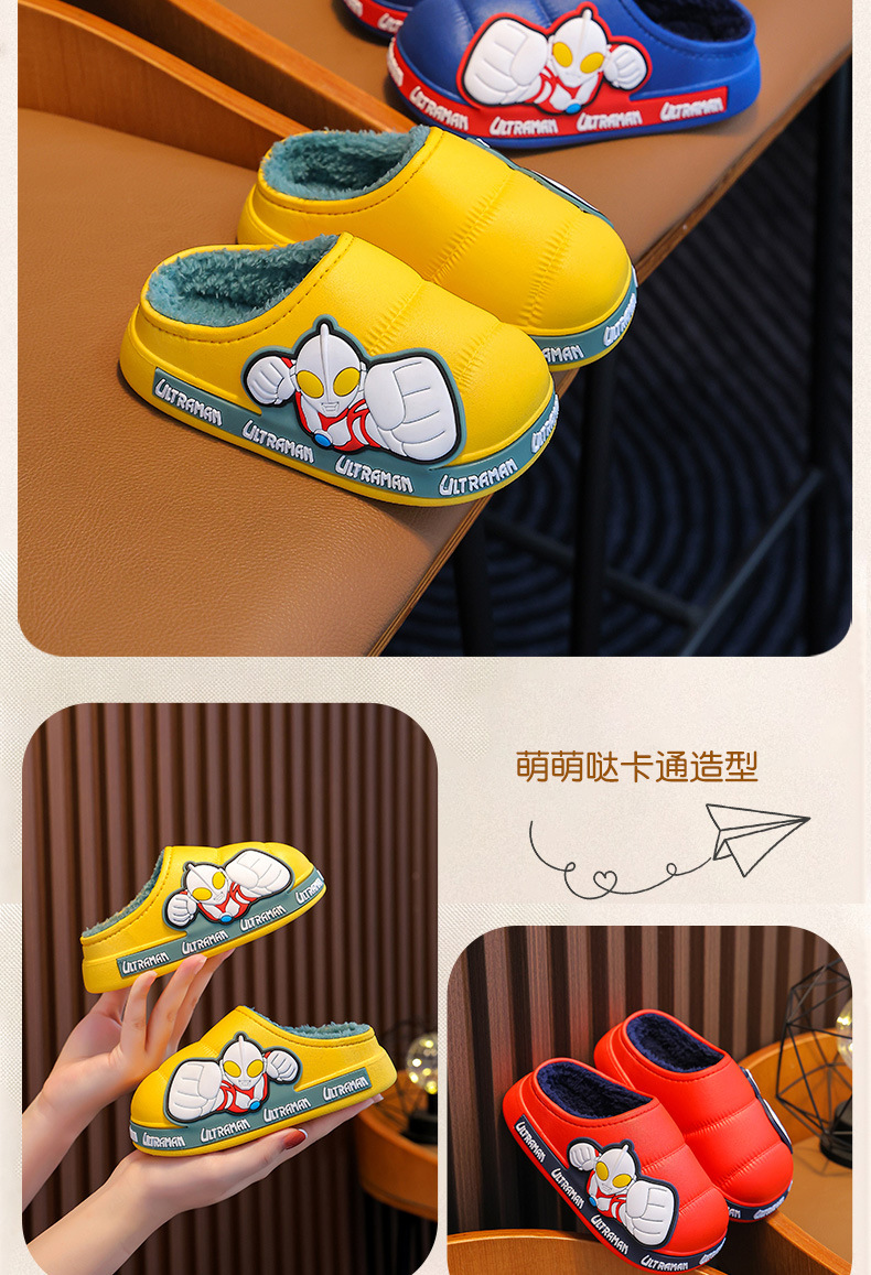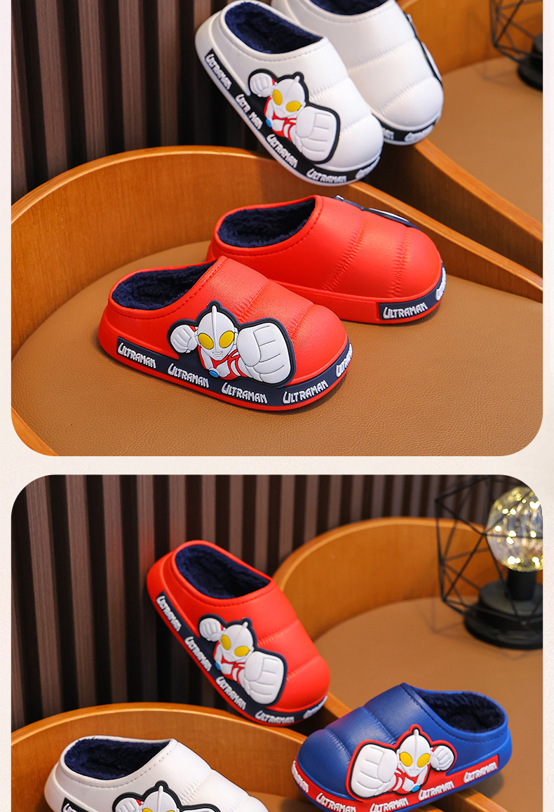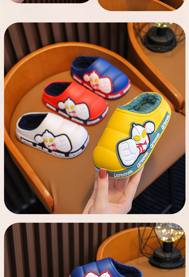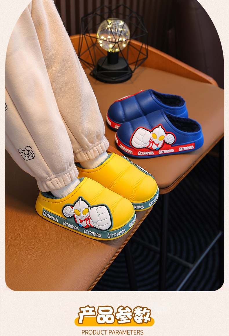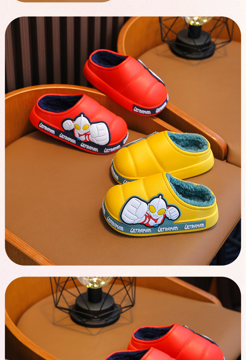 Ultraman invierno Zapatillas de algodón para niños y niñas antideslizante impermeable bolsa de terciopelo cálido talón Zapatillas de algodón para niños
