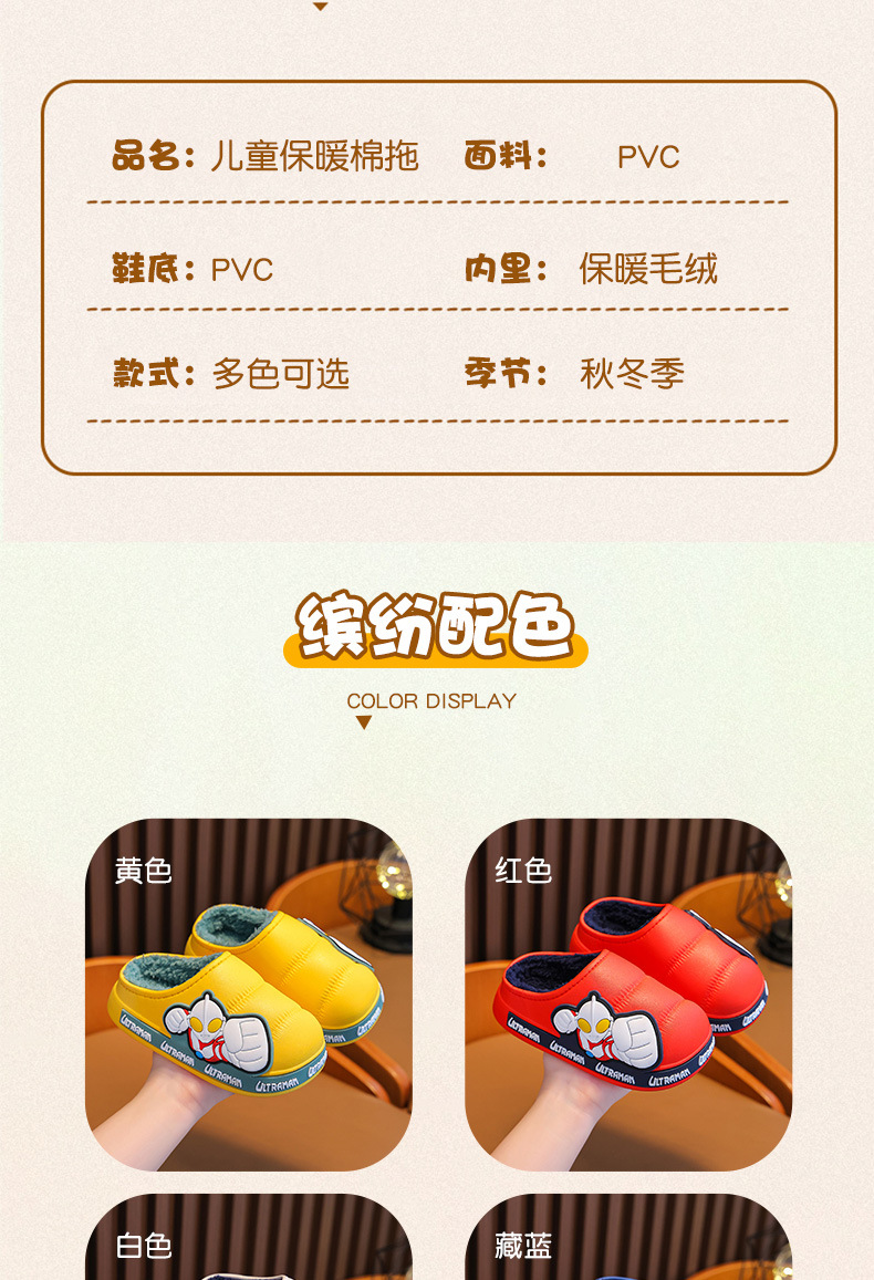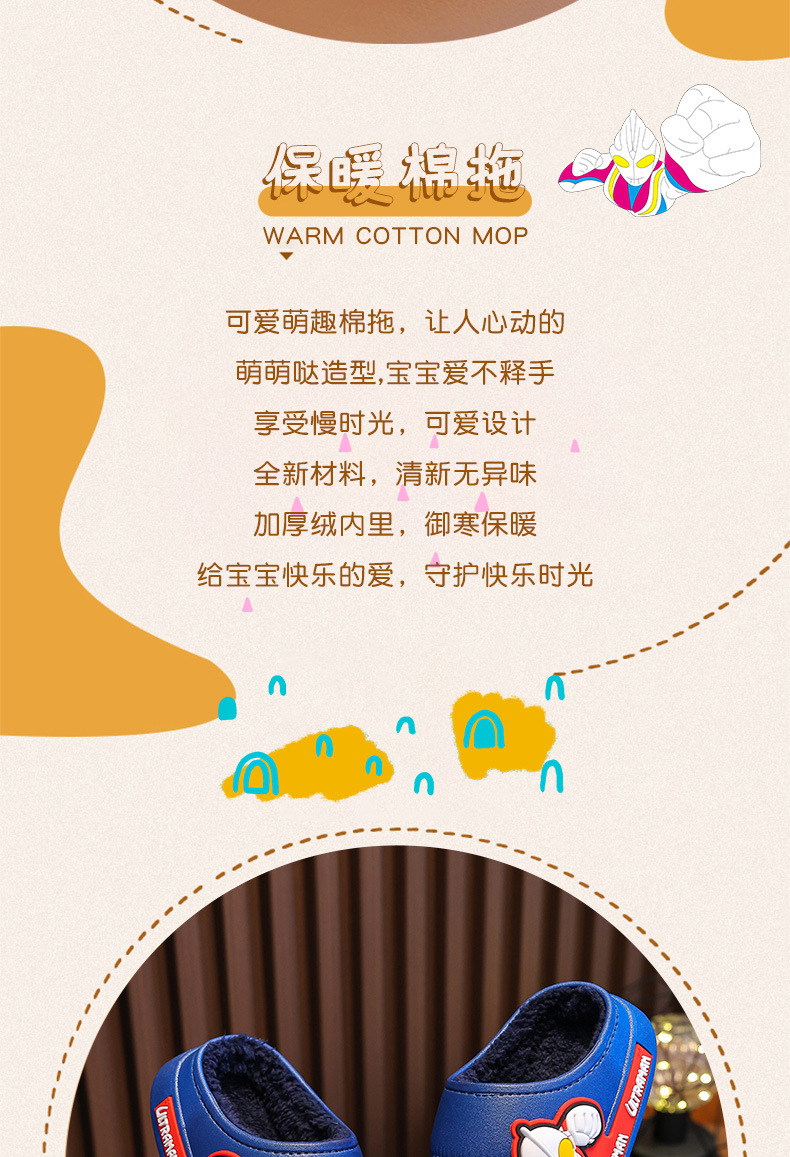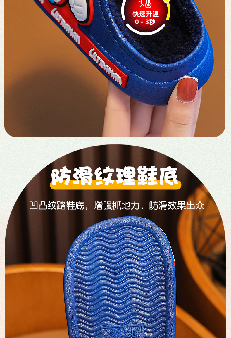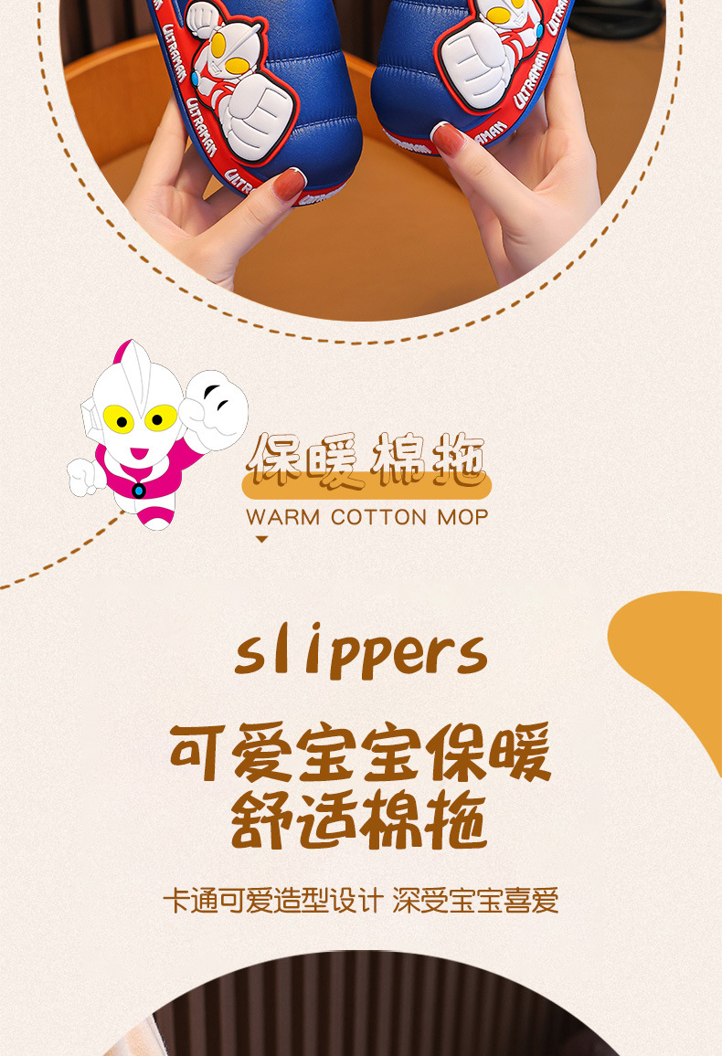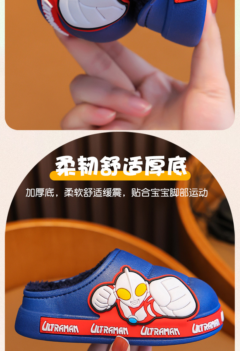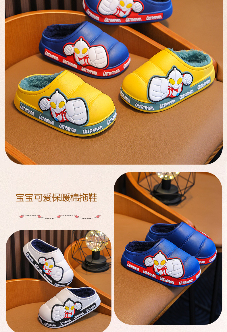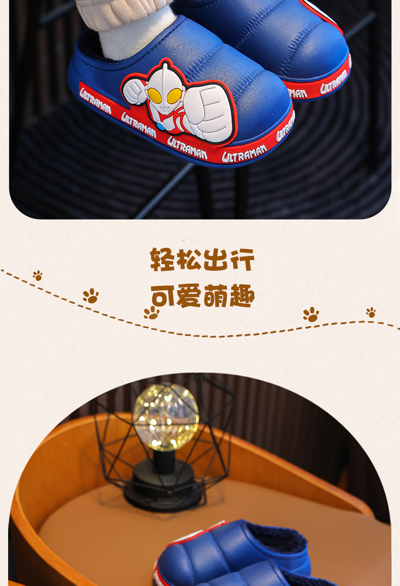 Ultraman invierno Zapatillas de algodón para niños y niñas antideslizante impermeable bolsa de terciopelo cálido talón Zapatillas de algodón para niños