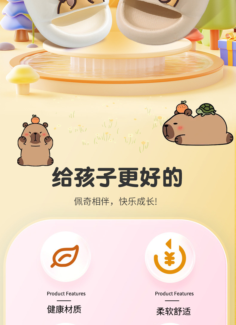 Kapibara niños zapatillas de verano 2025 nuevo baño interior antideslizante pisar la sensación de padres e hijos zapatillas para niños mayores