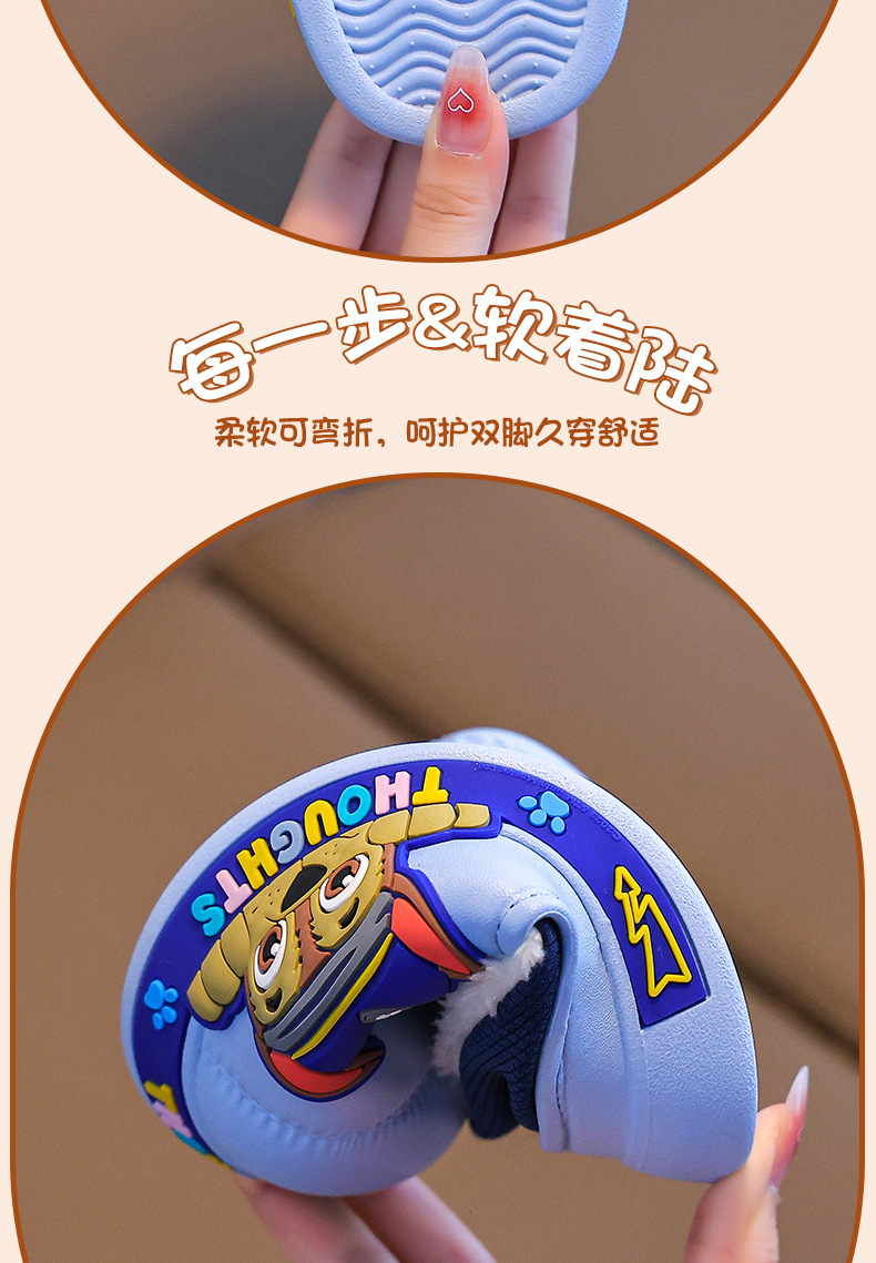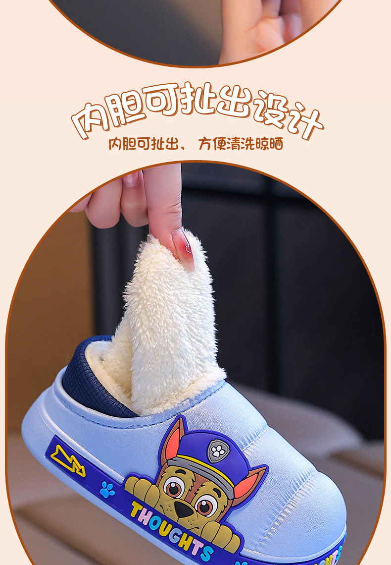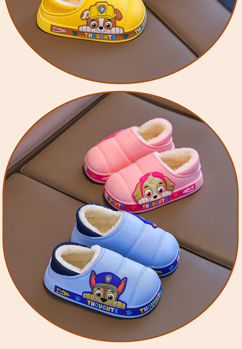 Zapatillas de algodón para niños del equipo Wang Wang, tacones de bolso para niños, zapatillas impermeables de interior para niños de invierno, zapatos de algodón para bebés para el hogar cálidos
