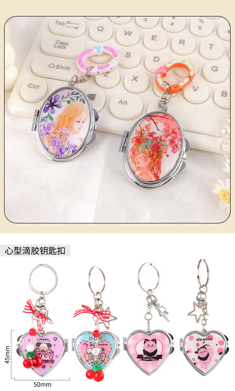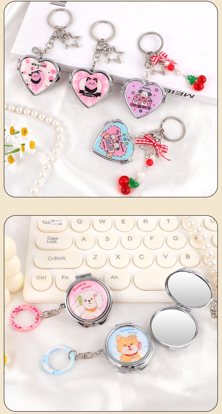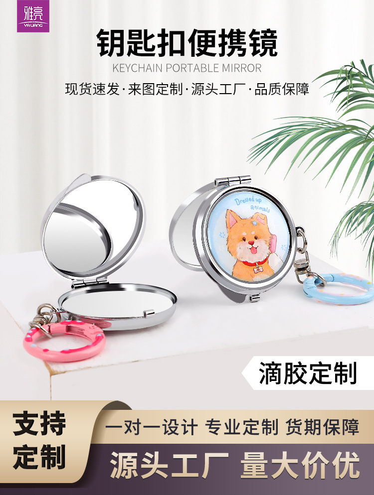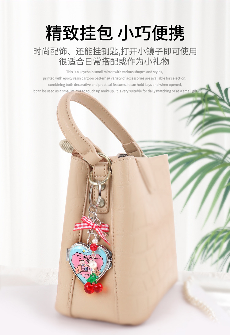 Mini bolso colgante de metal de dibujos animados, llavero, espejo pequeño, espejo epoxi, espejo portátil, imagen personalizada