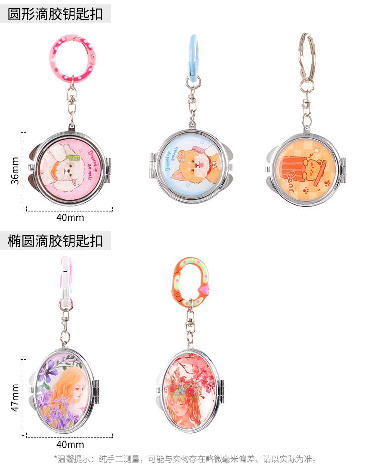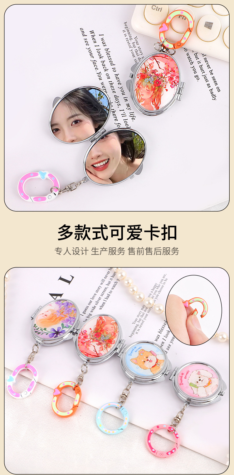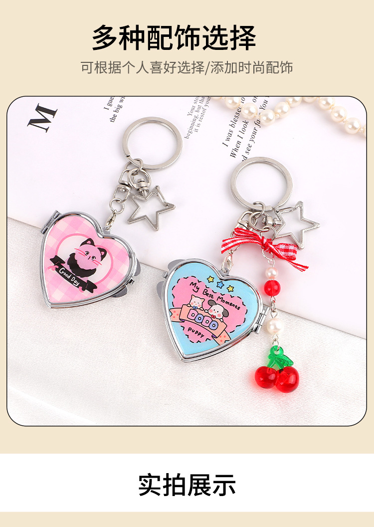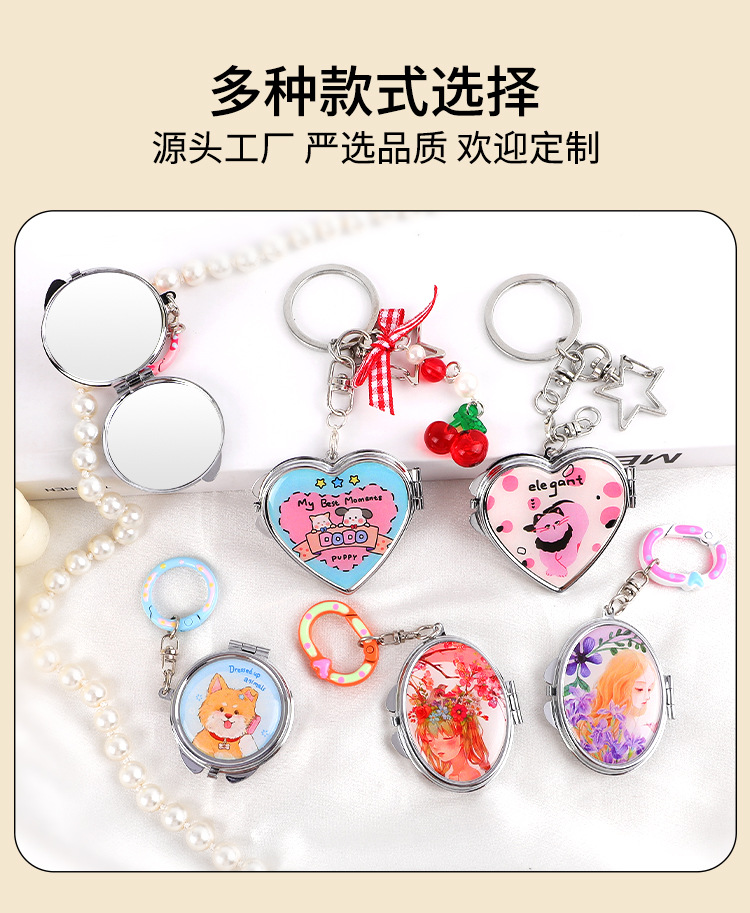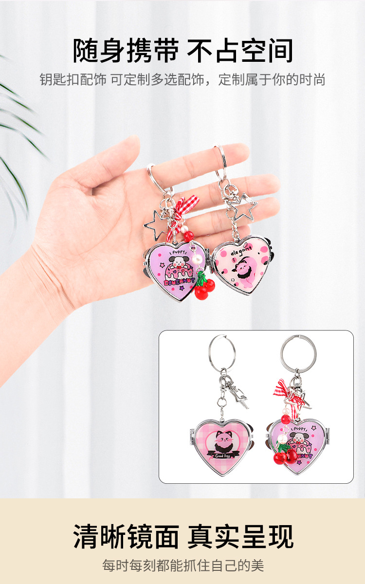 Mini bolso colgante de metal de dibujos animados, llavero, espejo pequeño, espejo epoxi, espejo portátil, imagen personalizada