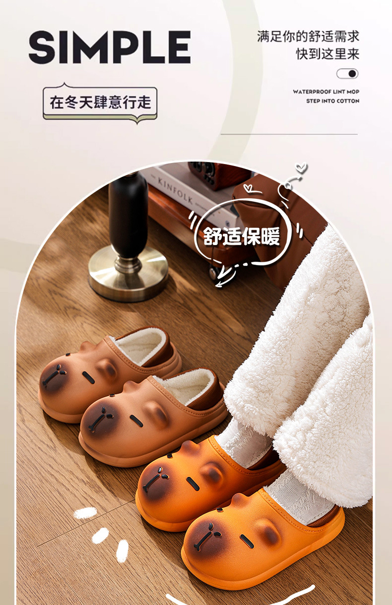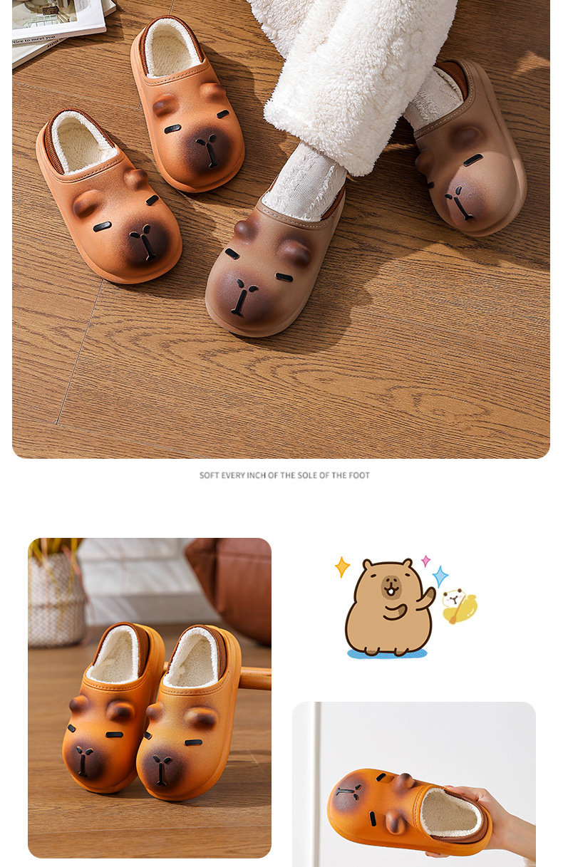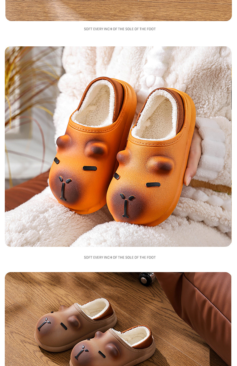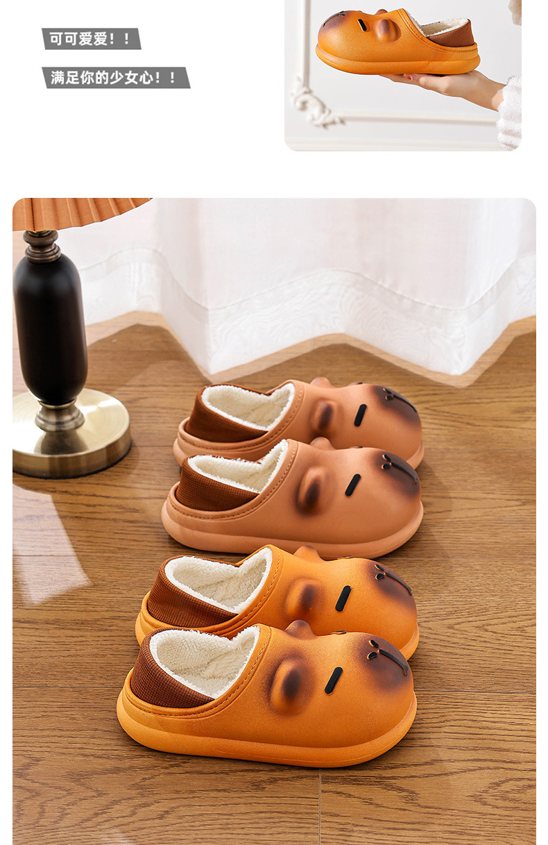 Otoño y invierno zapatillas de algodón tacones 2025 nuevo Capibara hogar impermeable interior calentamiento de lana lindos zapatos de algodón