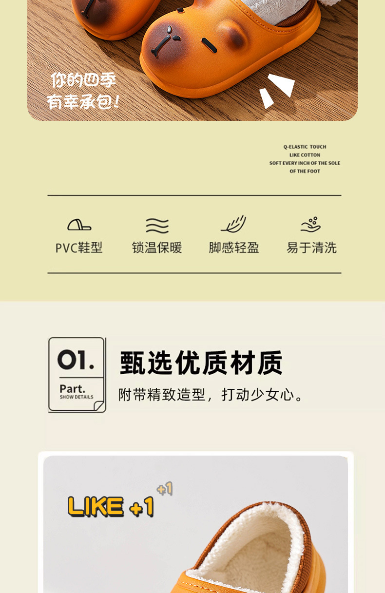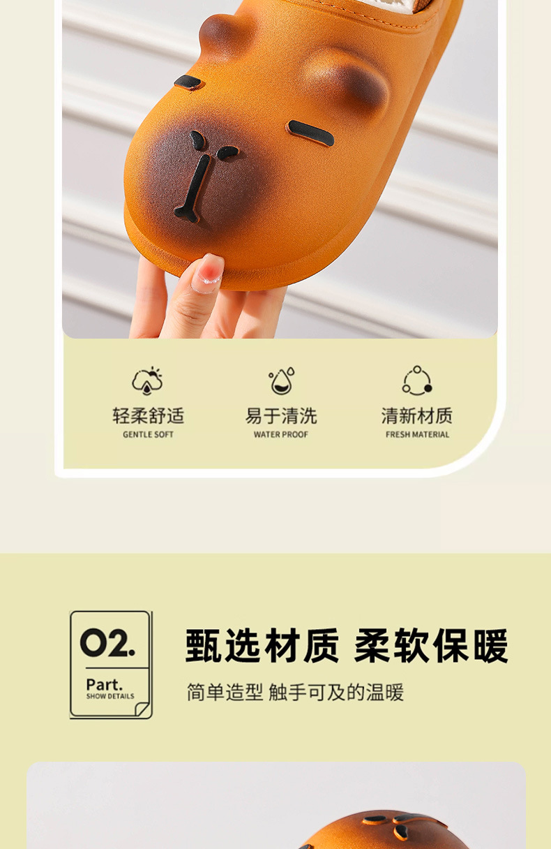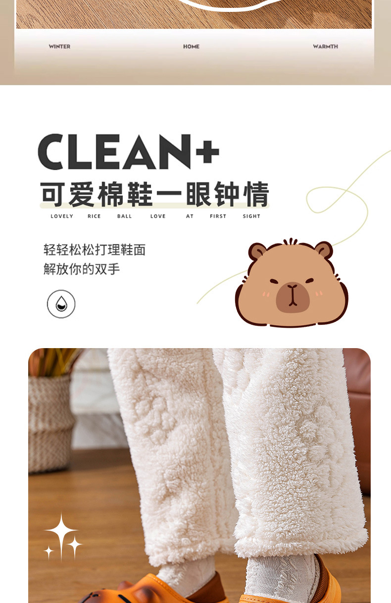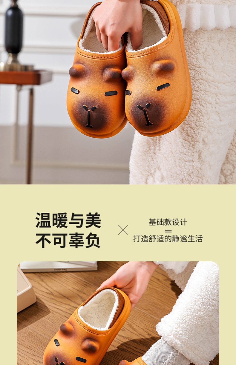 Otoño y invierno zapatillas de algodón tacones 2025 nuevo Capibara hogar impermeable interior calentamiento de lana lindos zapatos de algodón