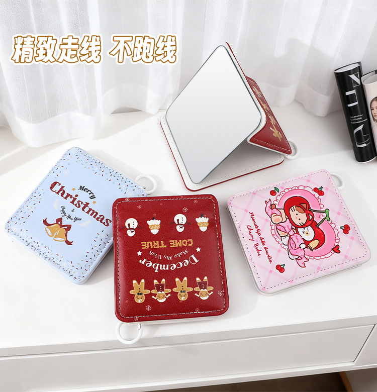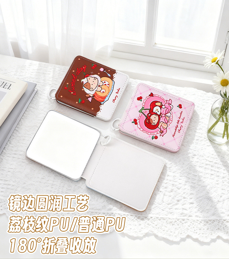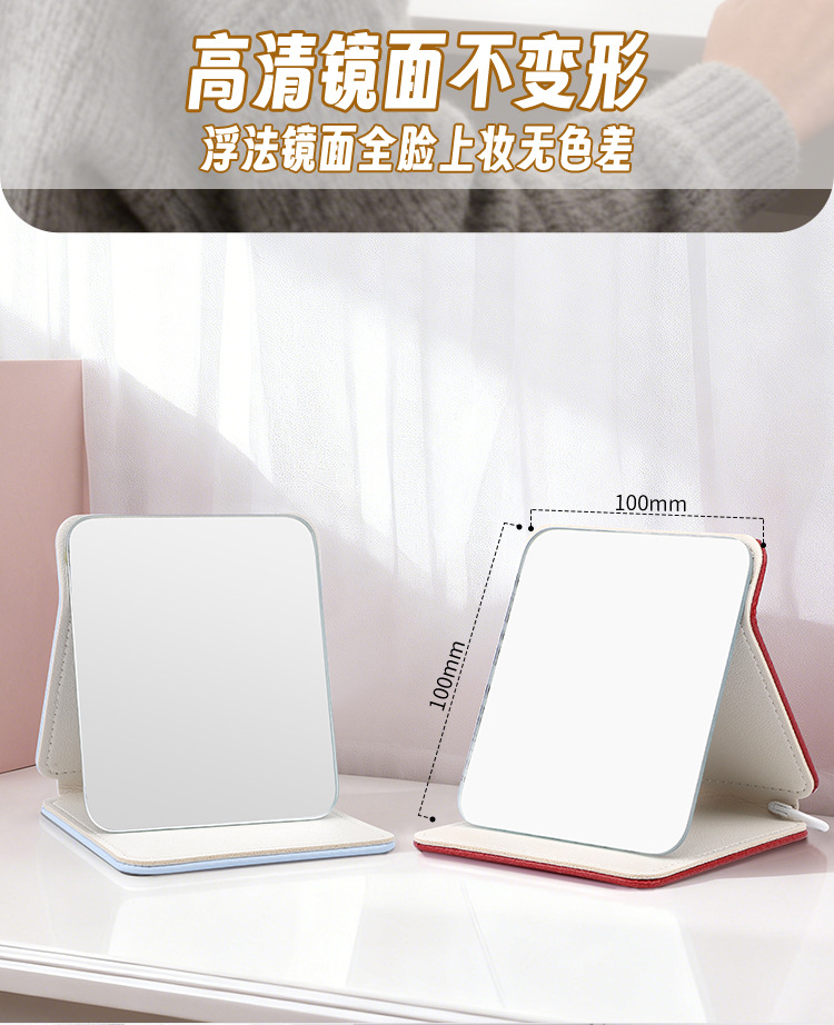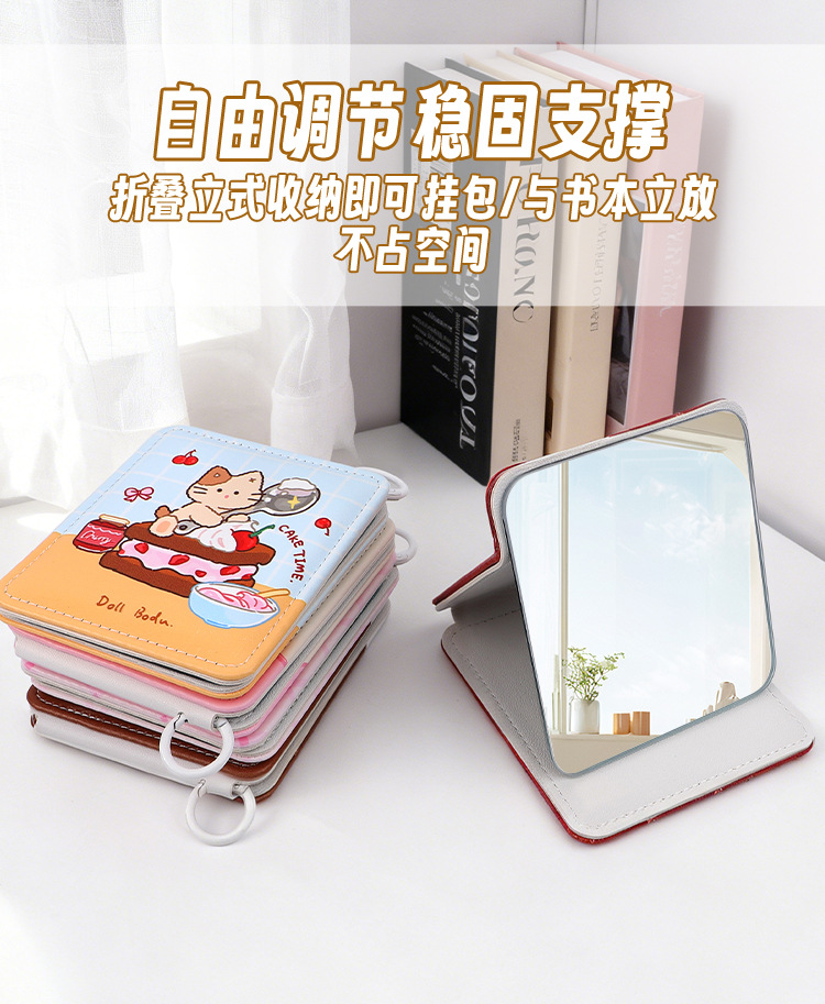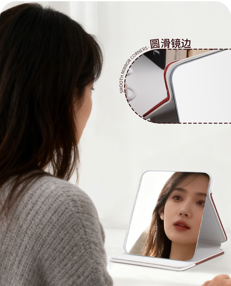 Espejo de cuero plegable cuadrado de moda, espejo de escritorio de hardware redondo, espejo portátil, espejo pequeño lleno de algodón