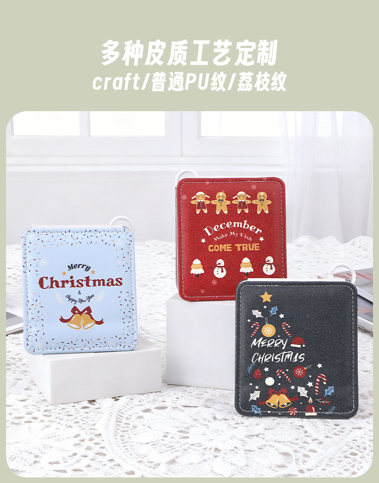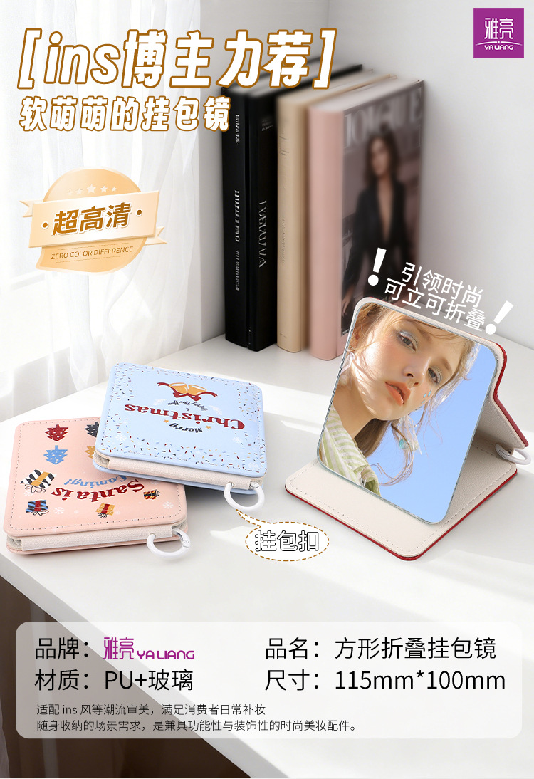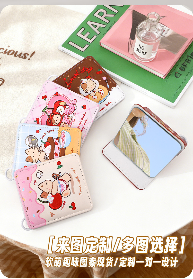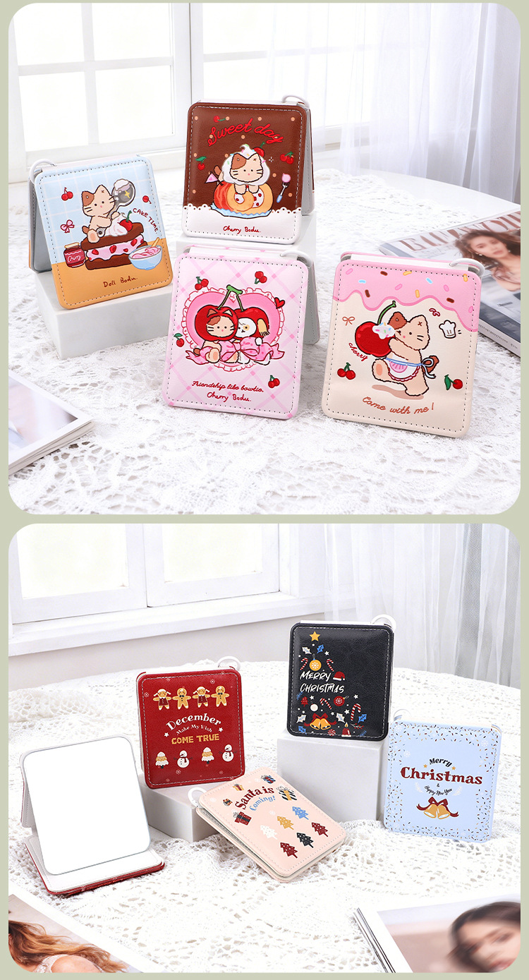 Espejo de cuero plegable cuadrado de moda, espejo de escritorio de hardware redondo, espejo portátil, espejo pequeño lleno de algodón