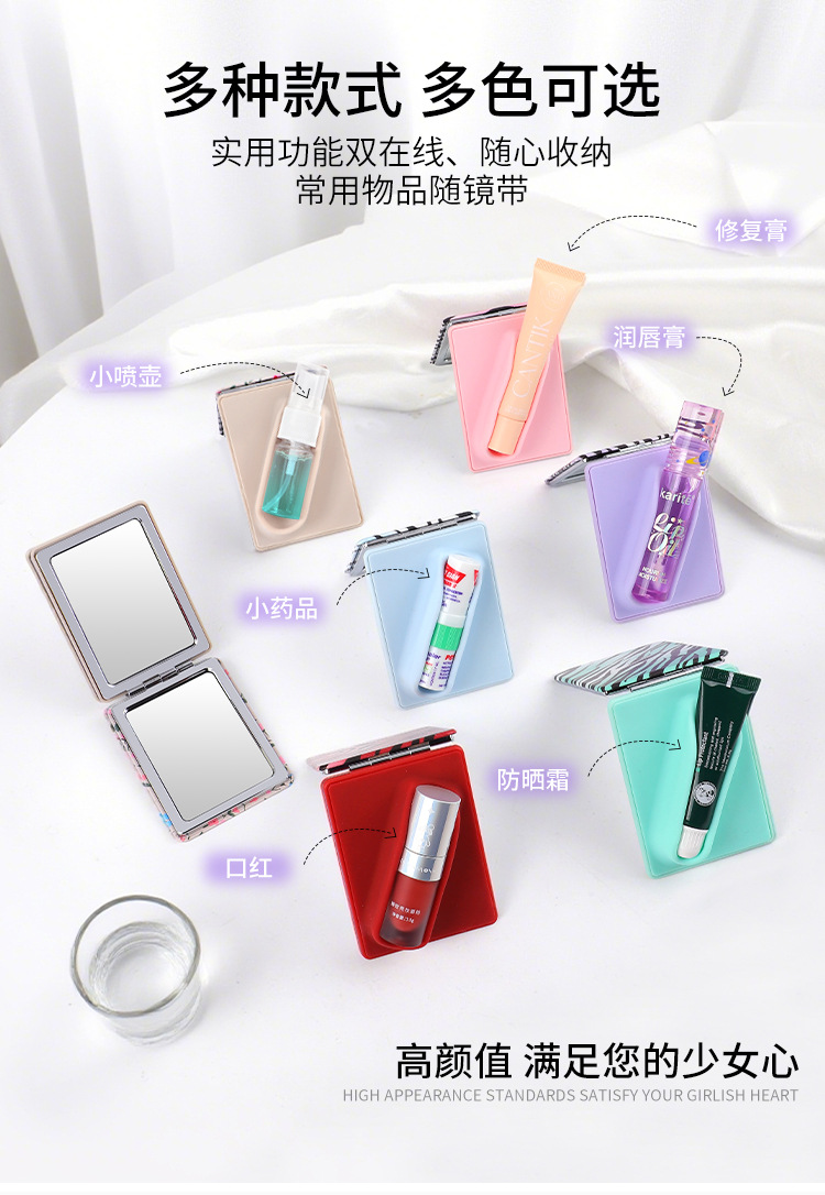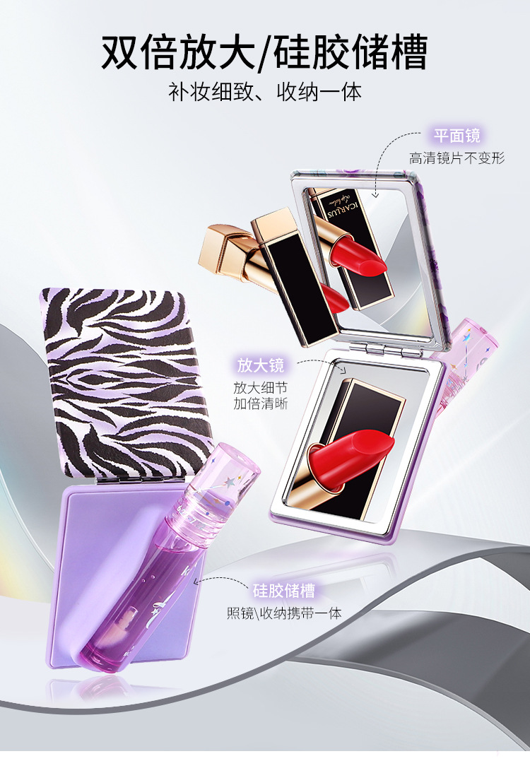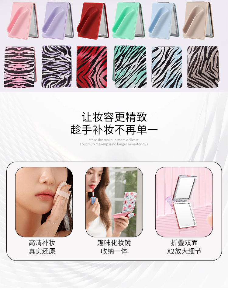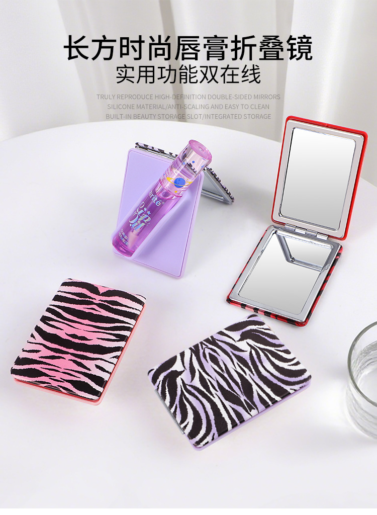 Apariencia patente de silicona lápiz labial soporte espejo de silicona ranura de almacenamiento espejo portátil dibujo personalizado espejo de piel zebra