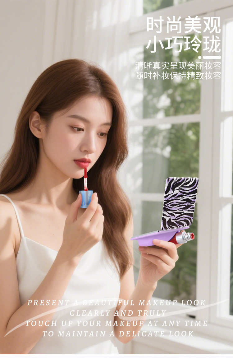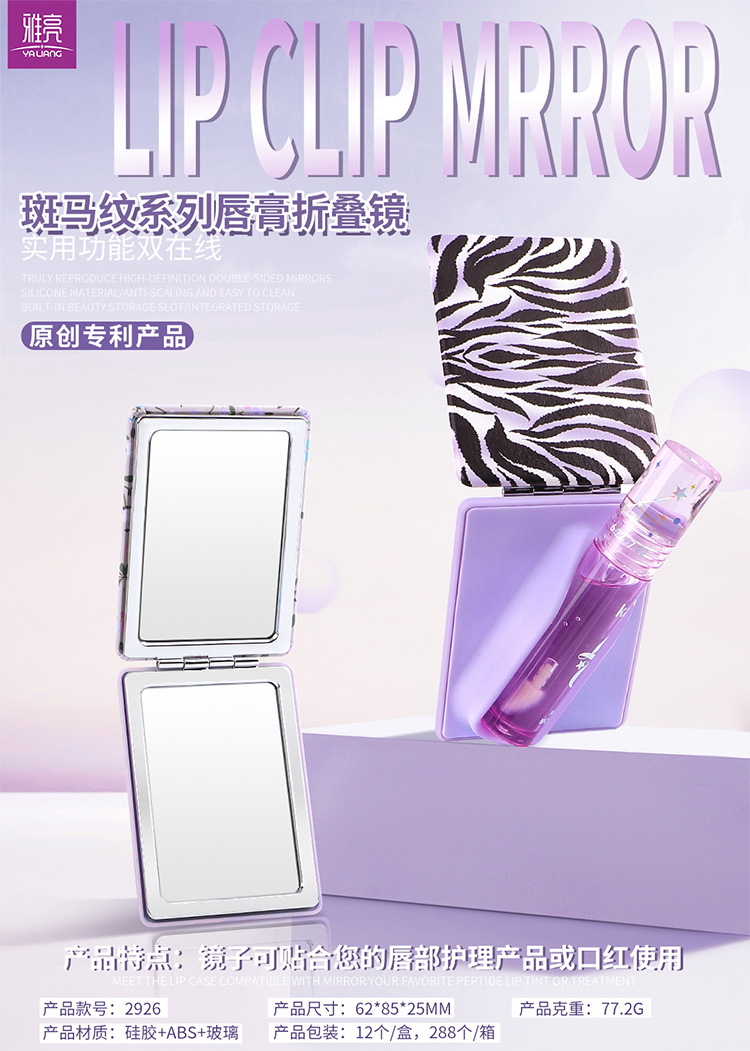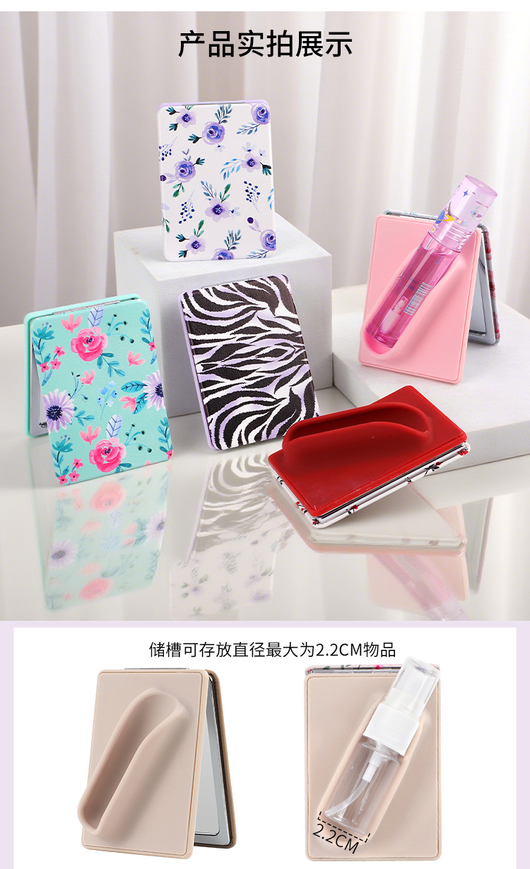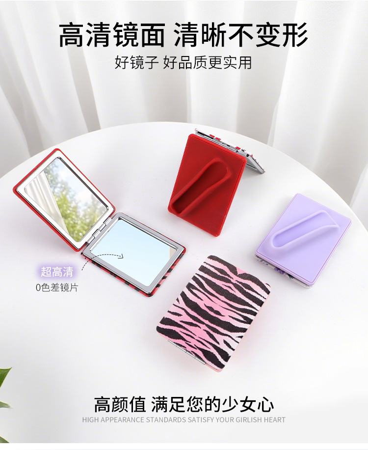 Apariencia patente de silicona lápiz labial soporte espejo de silicona ranura de almacenamiento espejo portátil dibujo personalizado espejo de piel zebra
