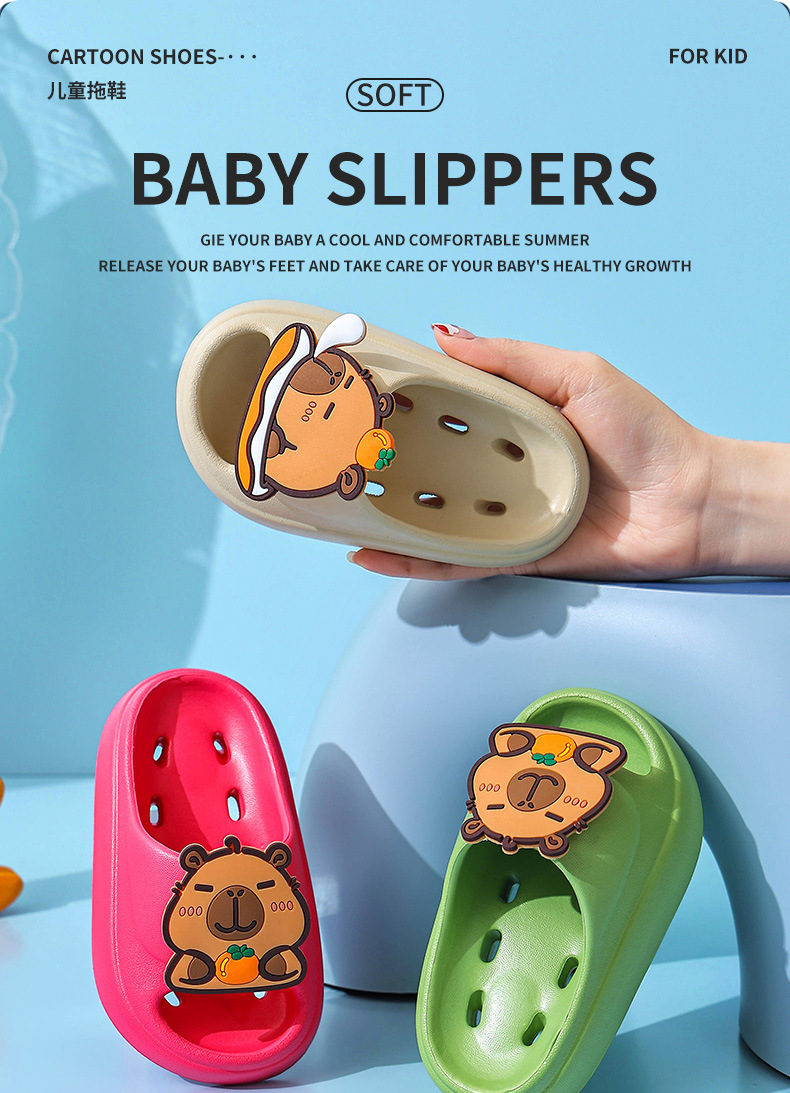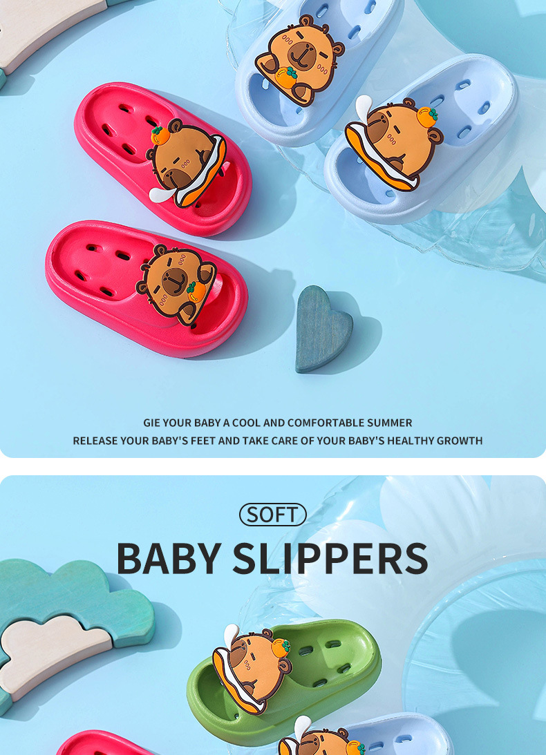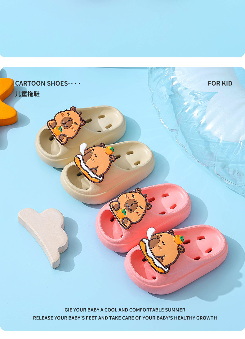 Capibara zapatillas de verano para niños, niños y niñas pisando la mierda, fugas antideslizantes para baño, padres e hijos, zapatillas de baño para niños