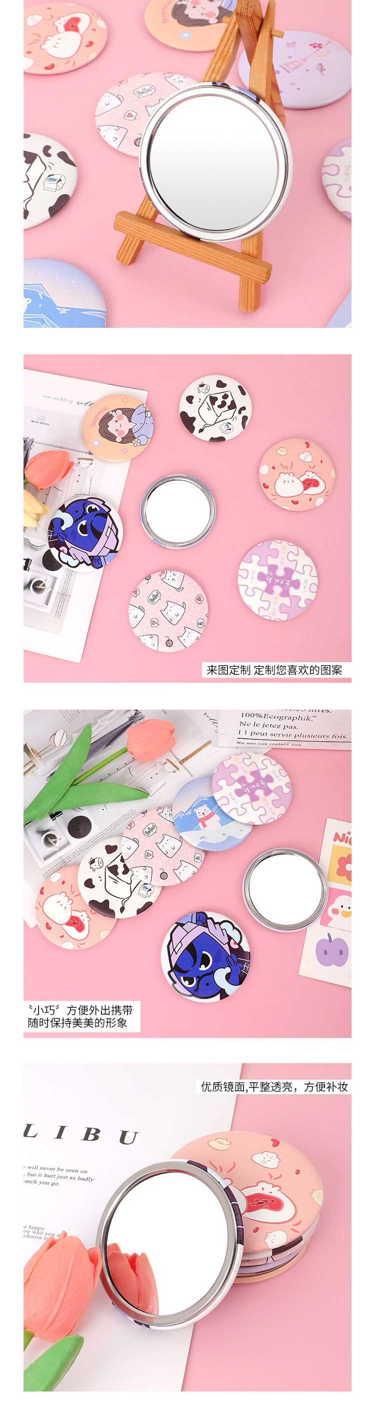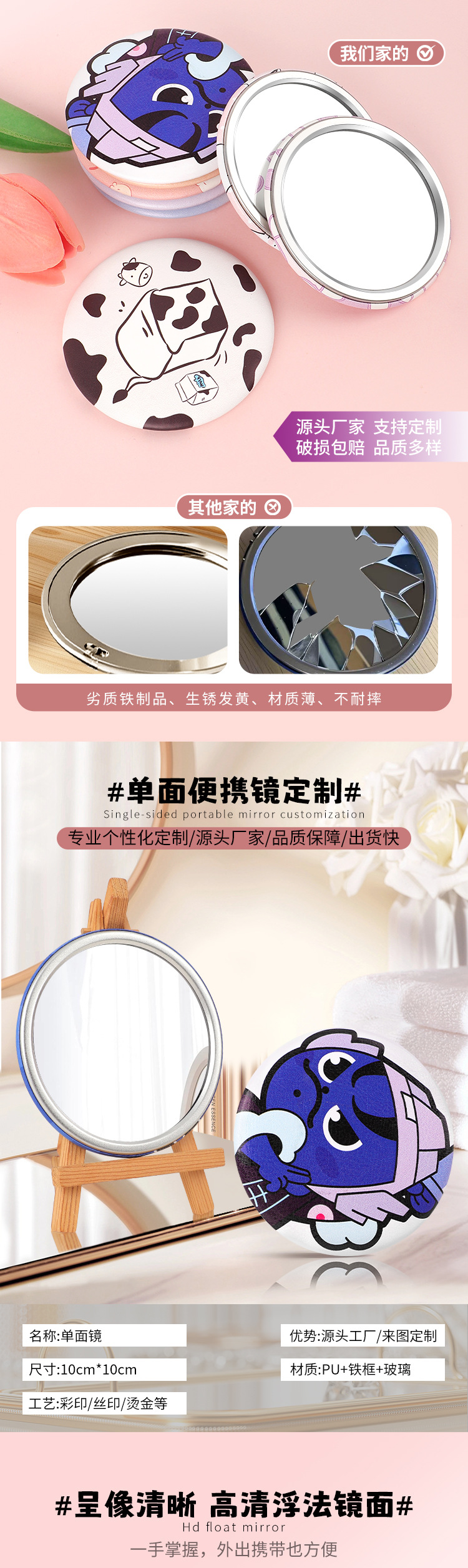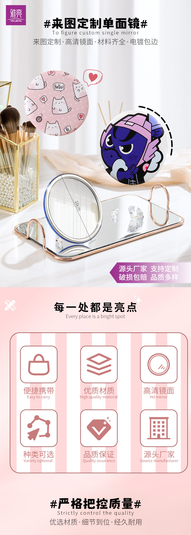 Precio de fábrica suministro transfronterizo 10cm gran espejo de una cara con imagen espejo de mano personalizado recuerdo espejo pequeño