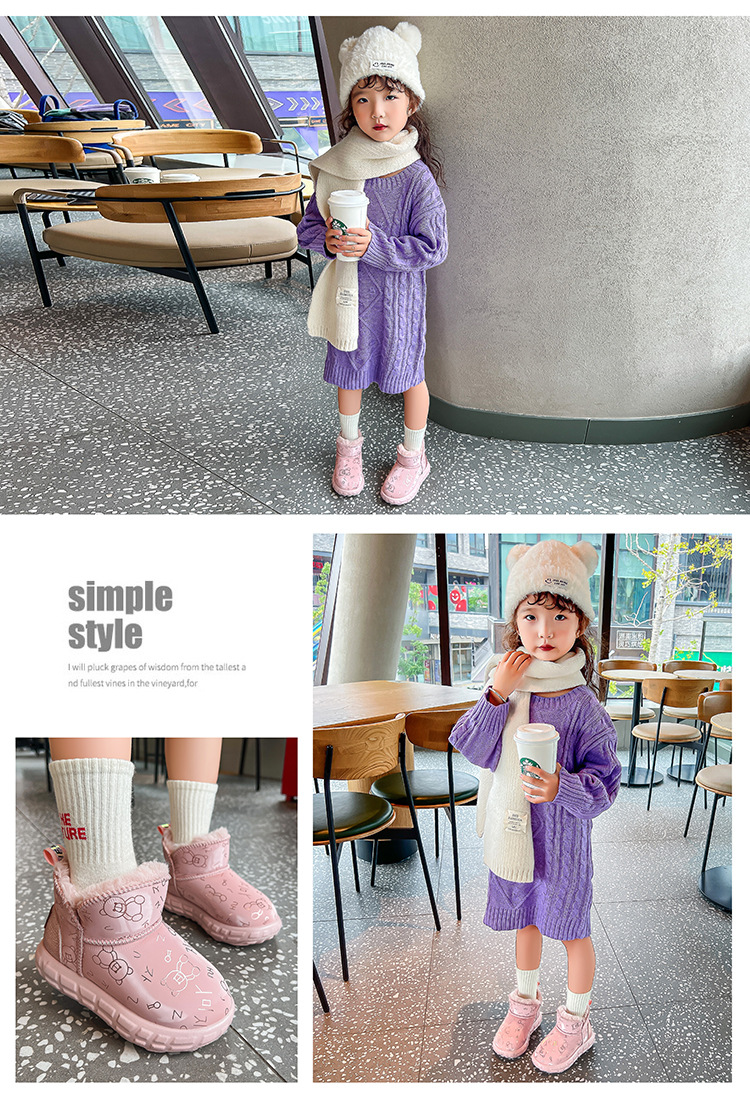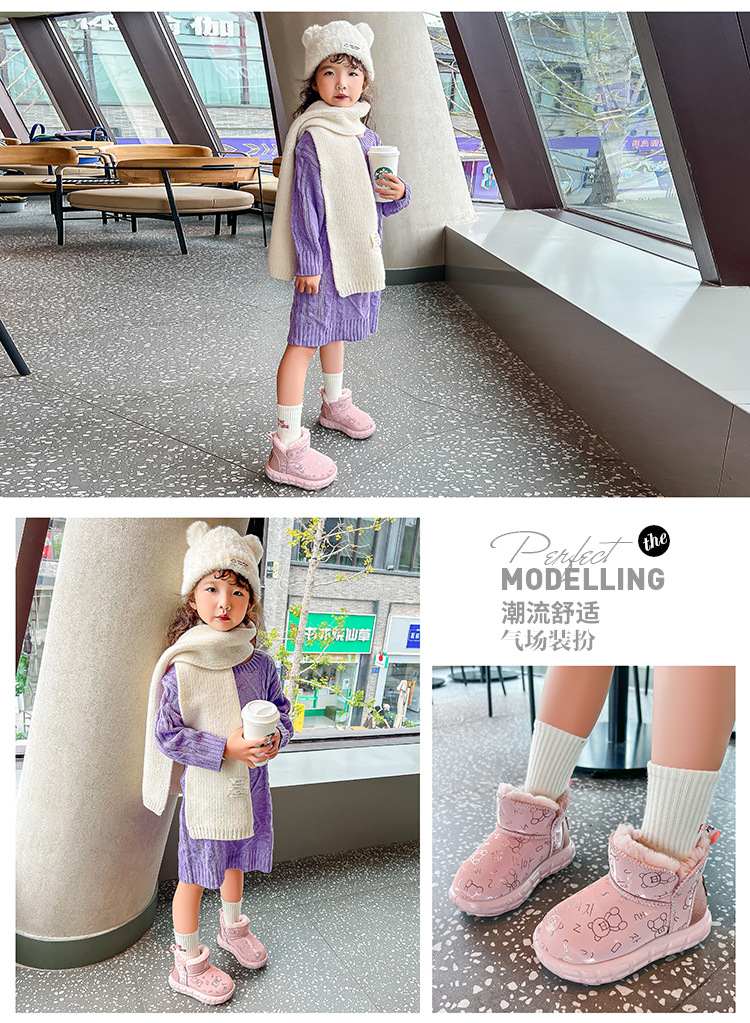 Botas de nieve de invierno de niñas más vello grueso 2024 nuevos zapatos de algodón calientes para niños botas de algodón impermeables