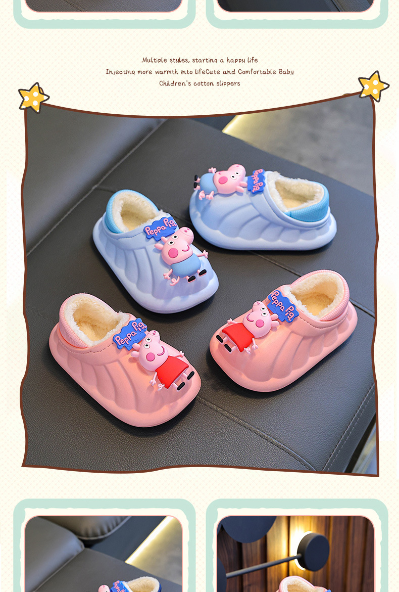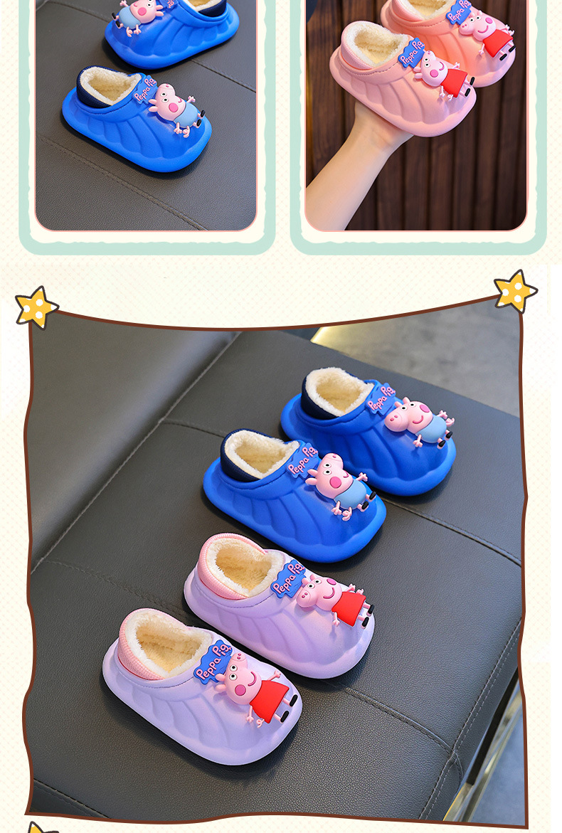 Piggy Page bolsas de tacones de zapatos de algodón para niños, niñas y niñas, cálidos y terciopelo EVA impermeable para bebés de 1 - 3 años de edad, zapatillas de algodón 2